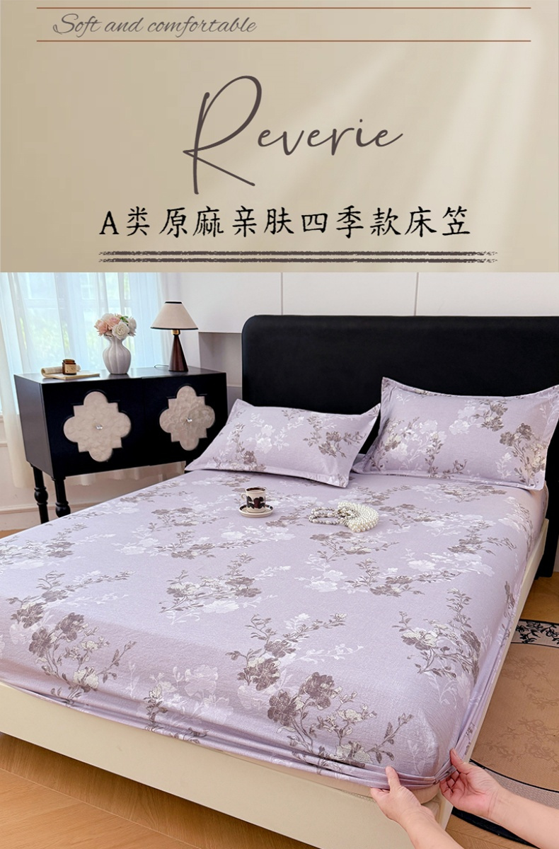 • 91家纺网 家纺一手货源 找家纺 梦舒羽 2025新款原麻床笠机洗家用防滑透气四季款床罩床垫床单保护套 春风序