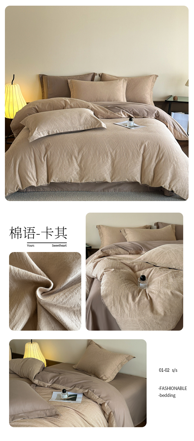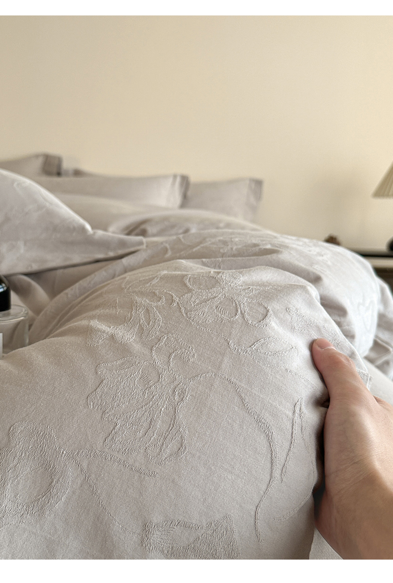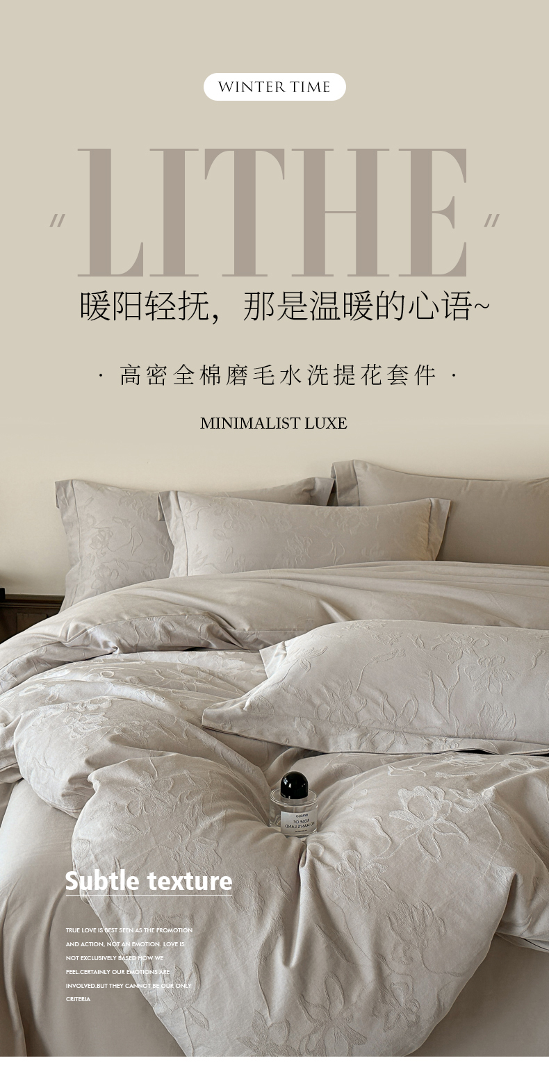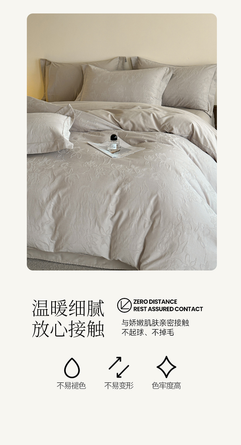 商品名称:慕晨 2025新款全棉提花磨毛四件套高级简奢款中高端4件套直播热款 雾芷-灰
