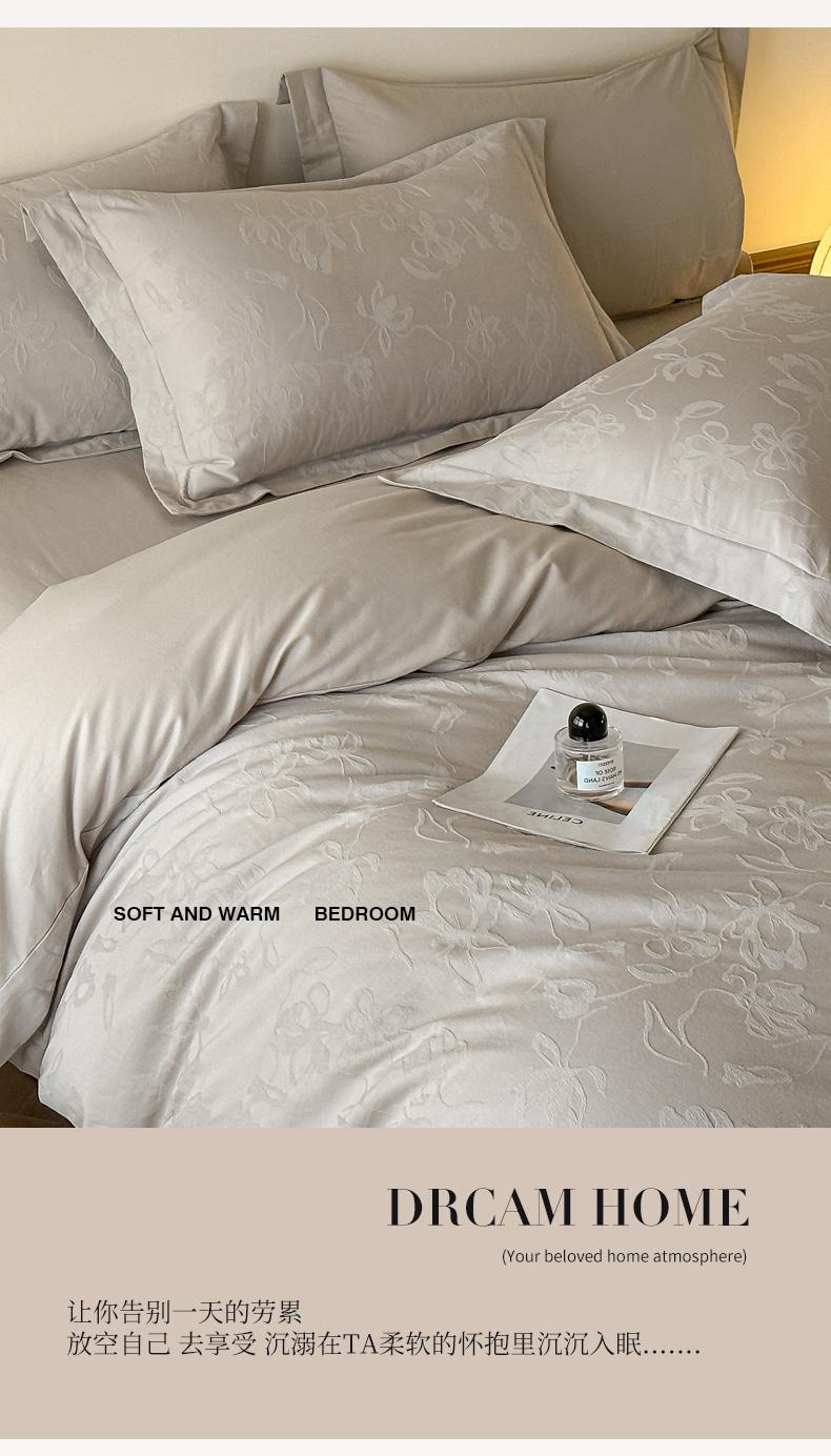 慕晨 2025新款全棉提花磨毛四件套高级简奢款中高端4件套直播热款 雾芷-灰