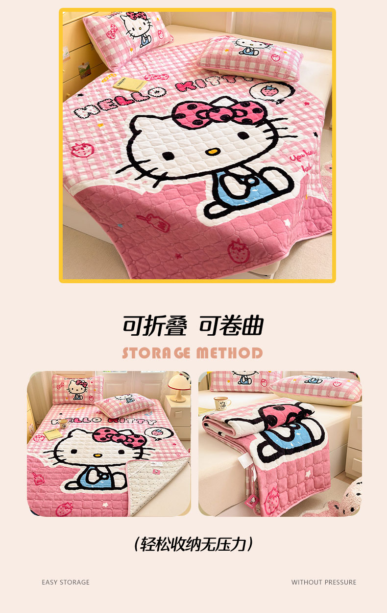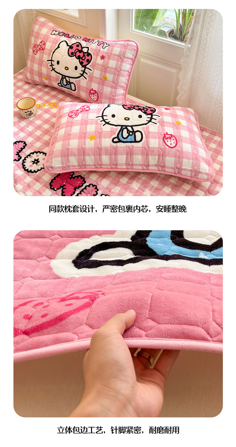 希诺家居 2025新款正版授权三丽鸥大版牛奶绒床垫三件套床褥学生宿舍床垫 粉格kt