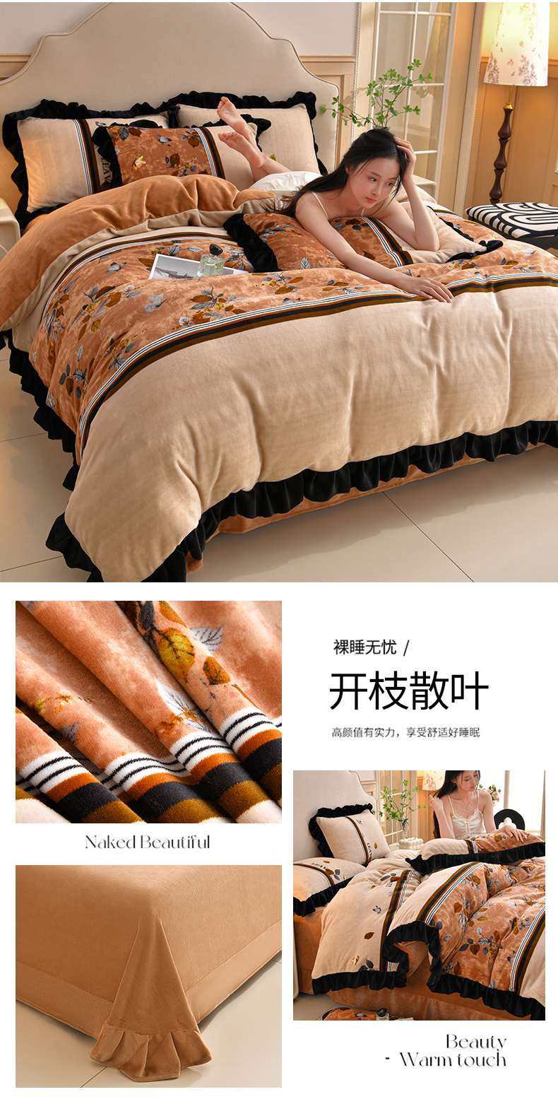 曼尼 2025新款韩版花边牛奶绒四件套 韩版-开枝散叶