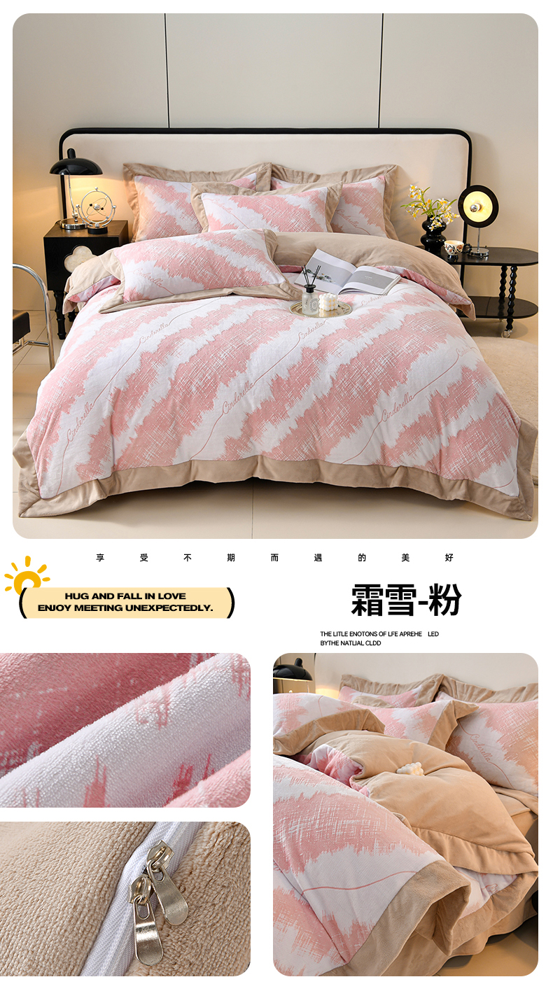 湘雪家居 2025新款高克重雕花牛奶绒四件套 霜雪款-胭脂粉