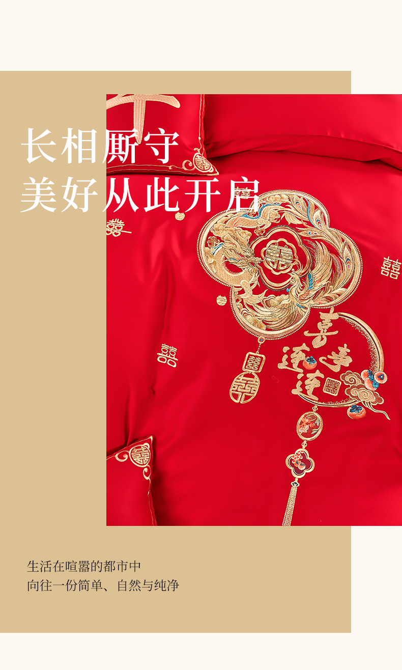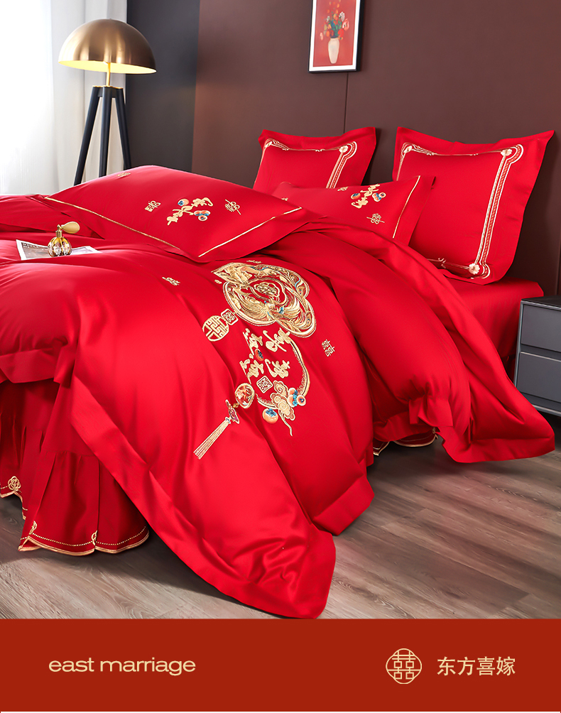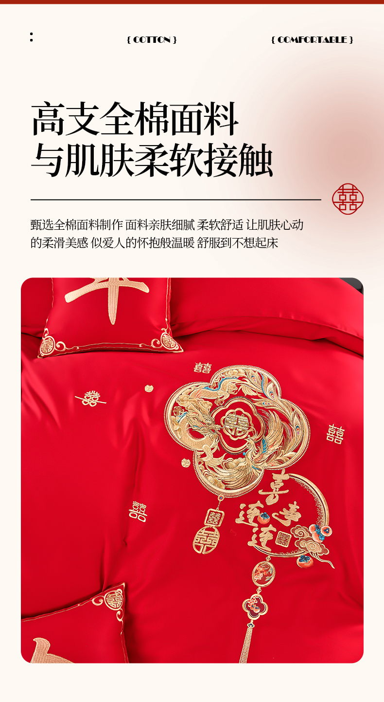商品名称:皇潮婚庆馆 2025新款A类布款全棉刺绣婚庆四件套系列 喜事连连