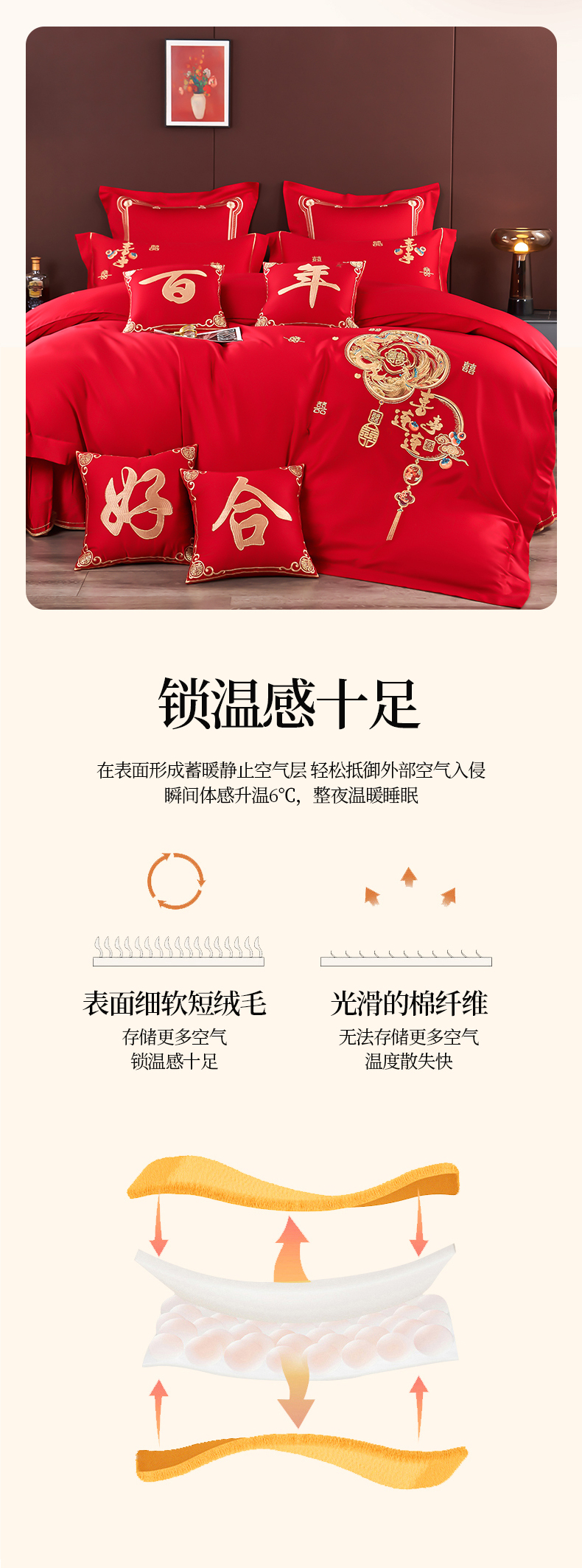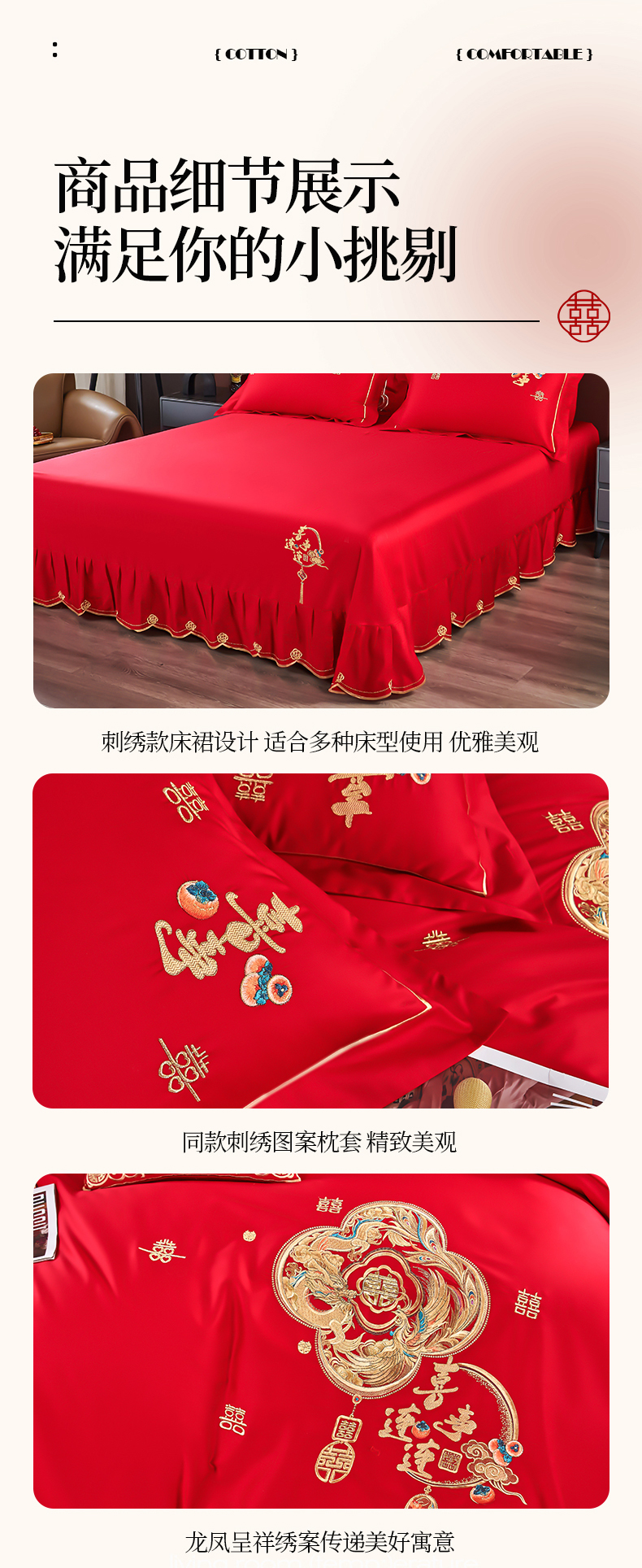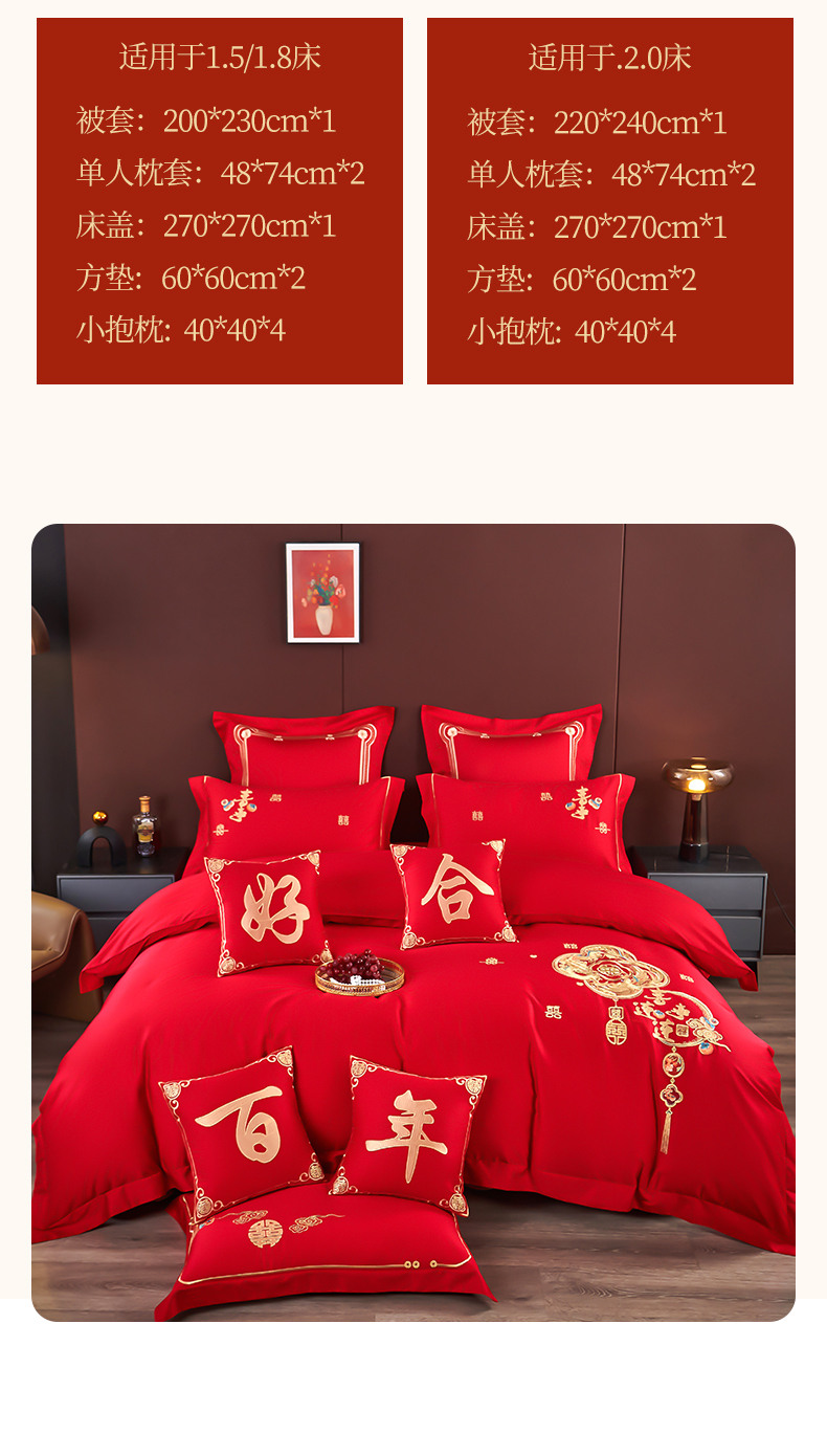 商品名称:皇潮婚庆馆 2025新款A类布款全棉刺绣婚庆四件套系列 喜事连连
