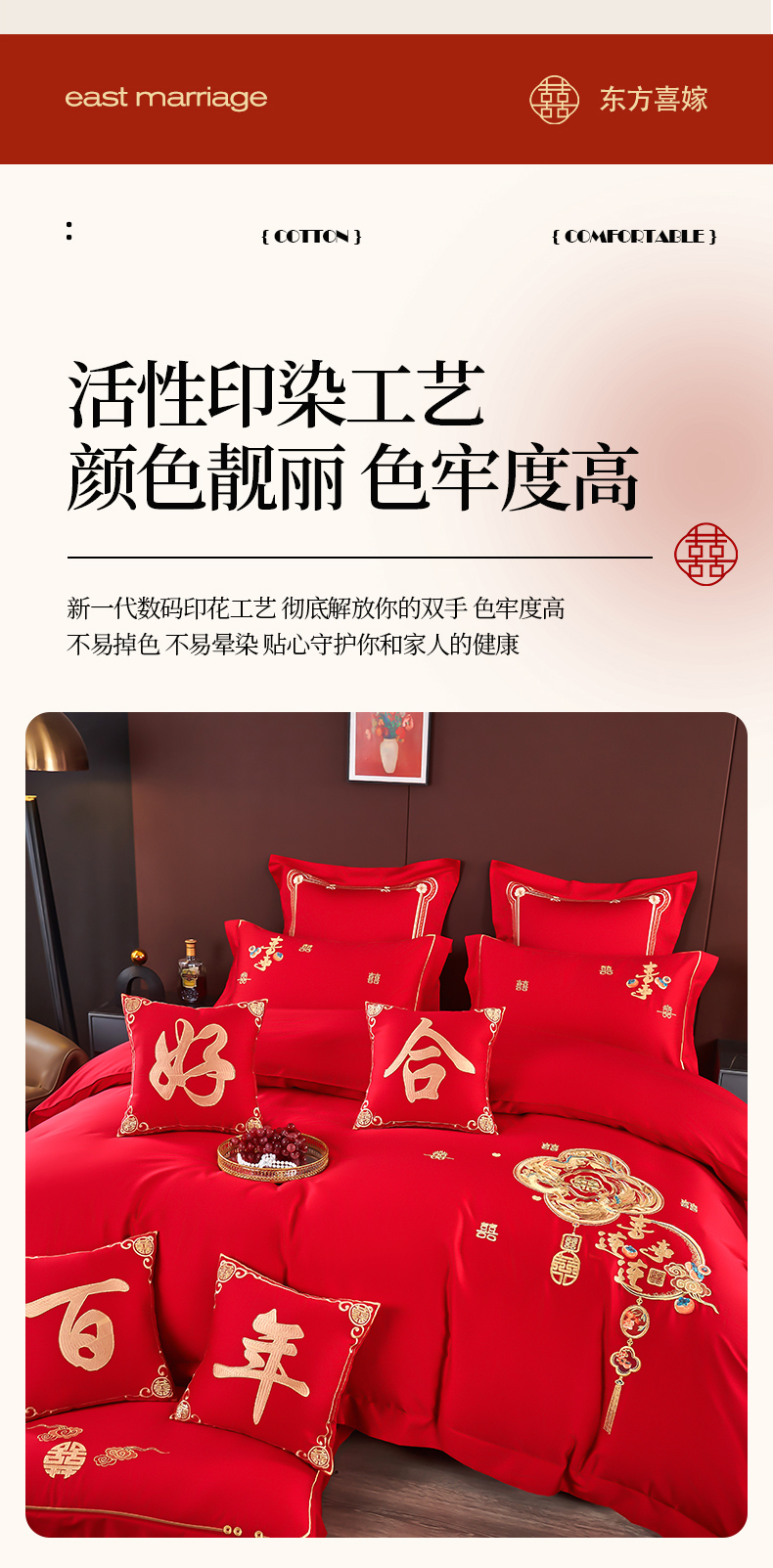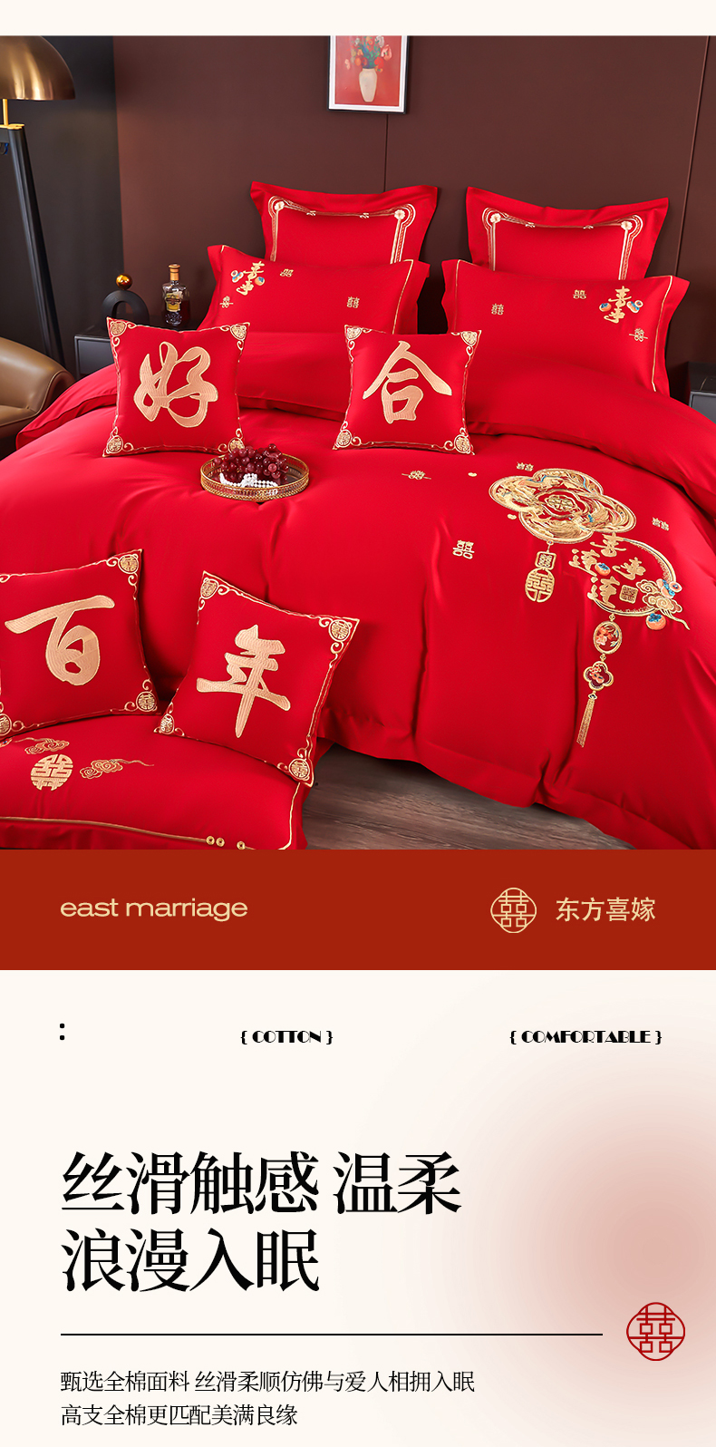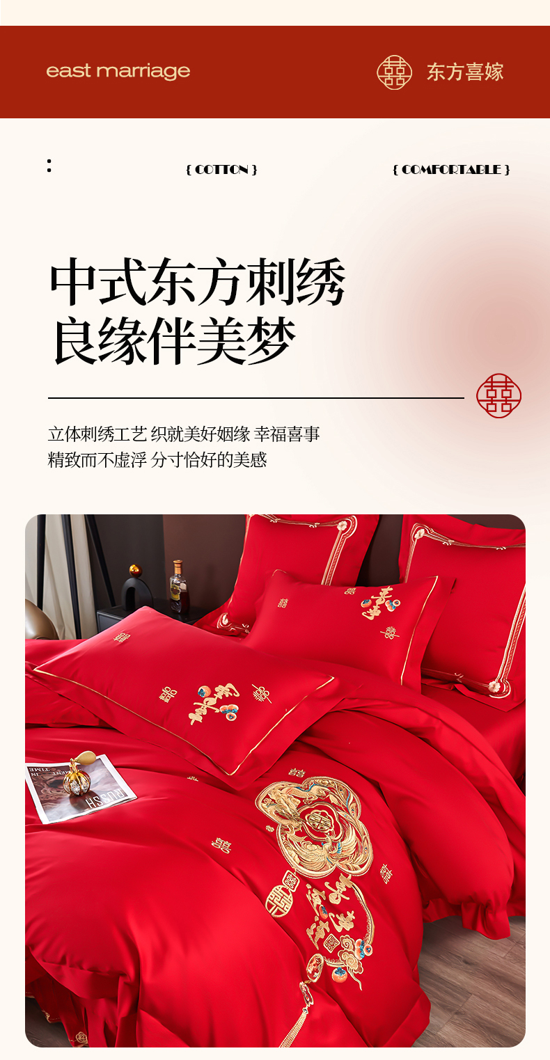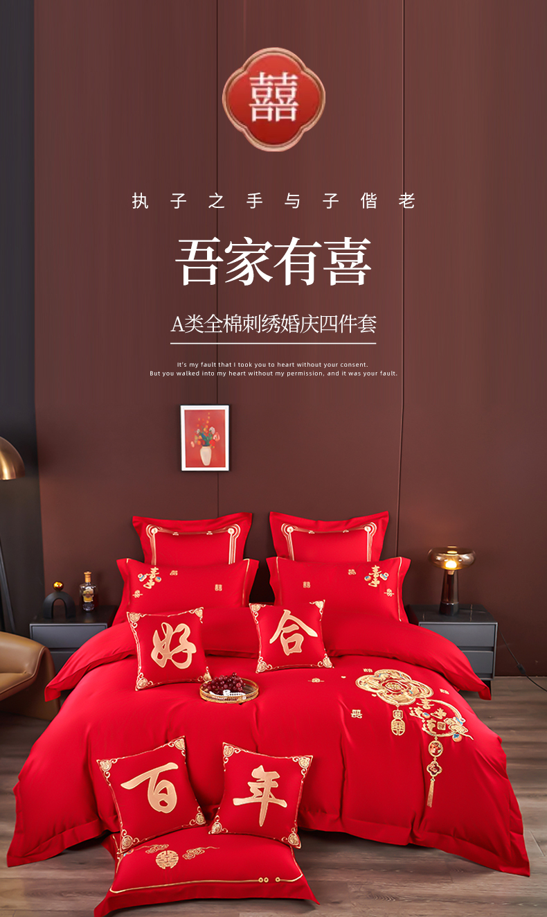 皇潮婚庆馆 2025新款A类布款全棉刺绣婚庆四件套系列 喜事连连