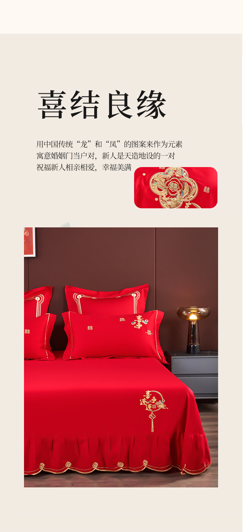 (总)皇潮婚庆馆 2025新款婚庆牛奶绒刺绣床裙四件套系列,吉祥如意,龙华凤贵,喜嫁,喜事连连,心心相印,新婚快乐