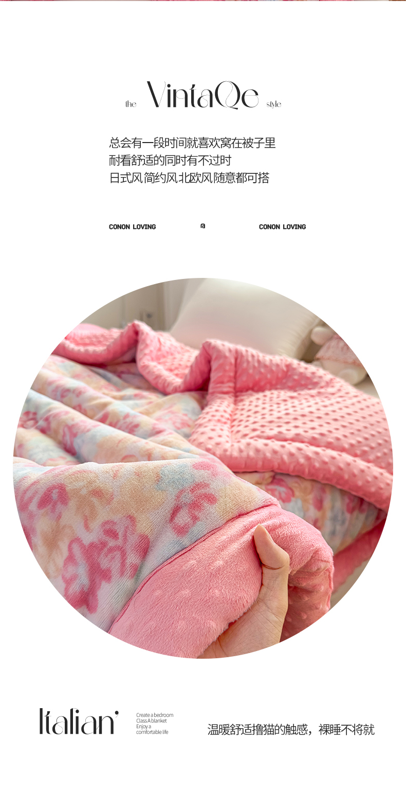 • 91家纺网 家纺一手货源 找家纺 默忆 2025新款牛奶绒豆豆被被子被芯 浪漫满屋