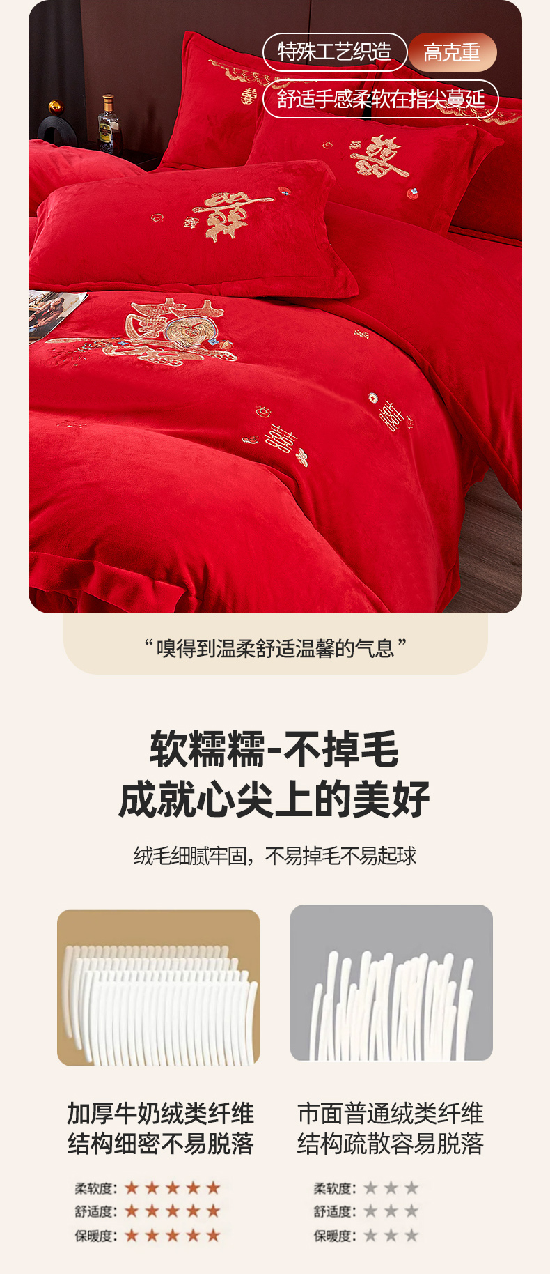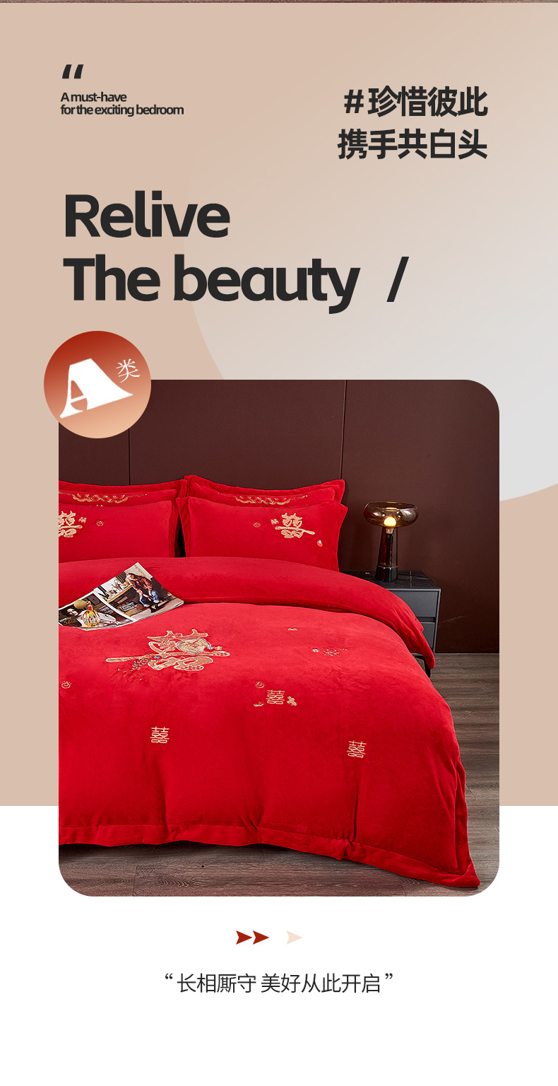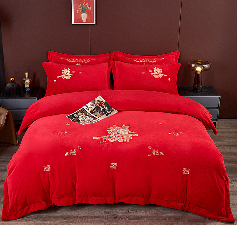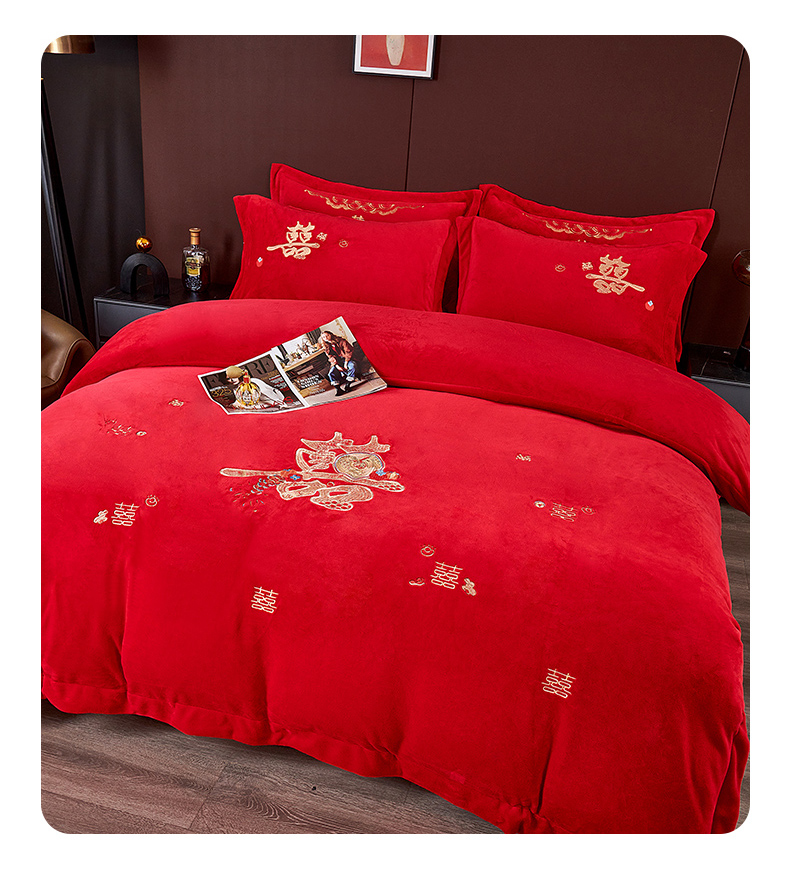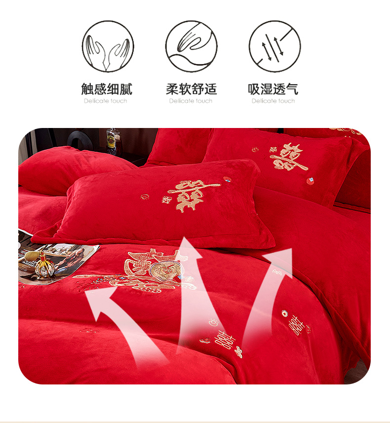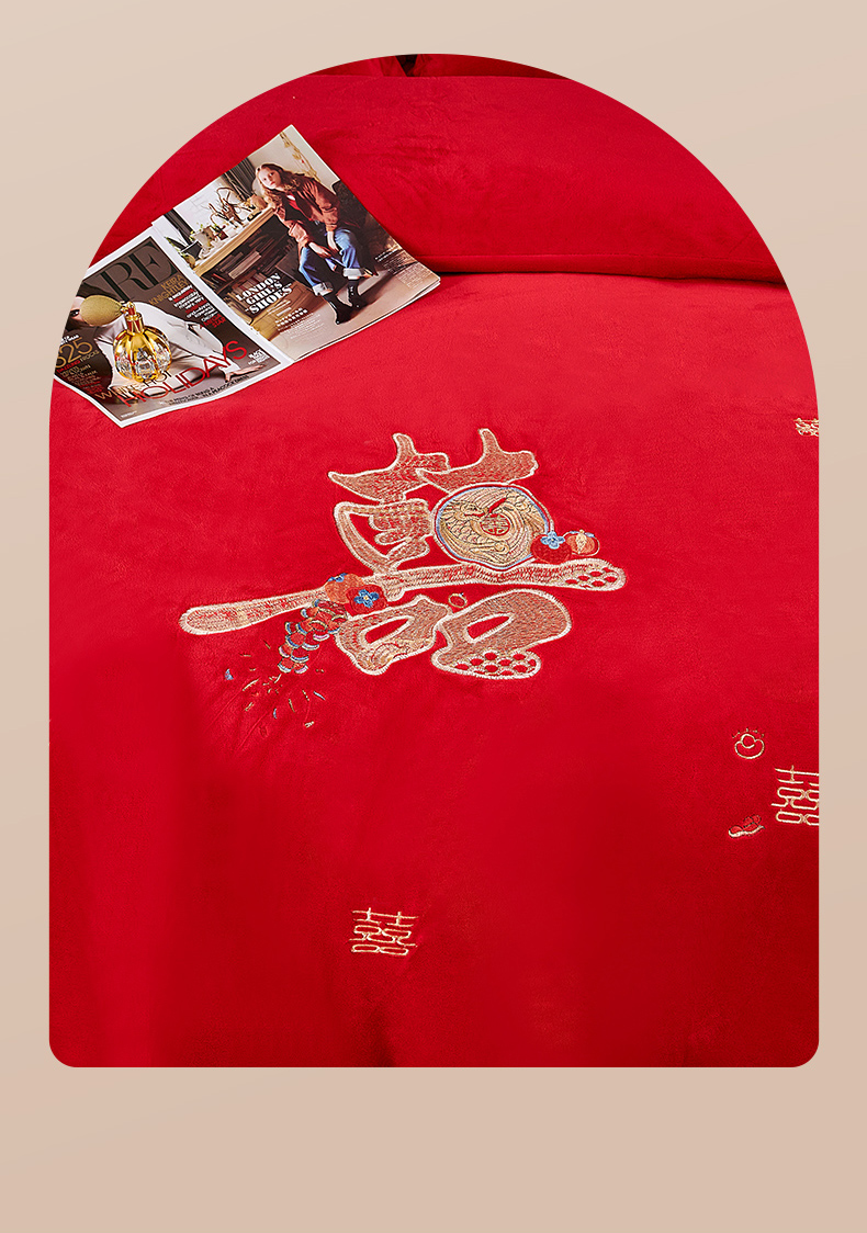 皇潮婚庆馆 2025新款婚庆牛奶绒刺绣床裙四件套系列 喜事连连