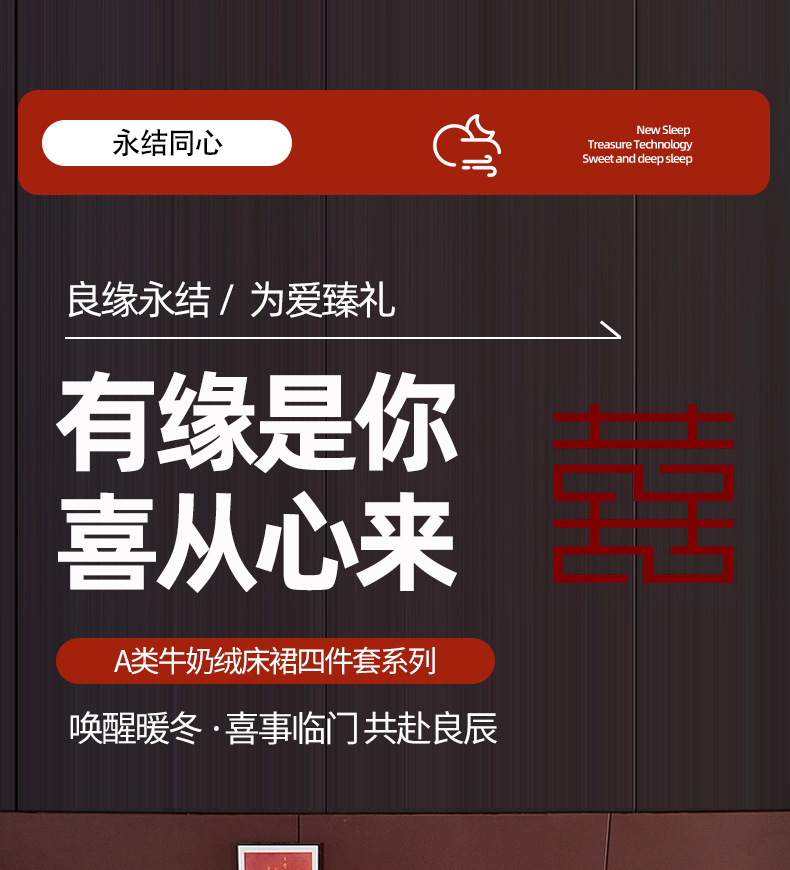 (总)皇潮婚庆馆 2025新款婚庆牛奶绒刺绣床裙四件套系列,吉祥如意,龙华凤贵,喜嫁,喜事连连,心心相印,新婚快乐