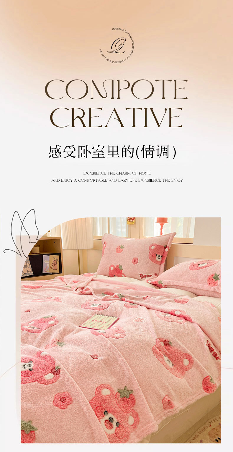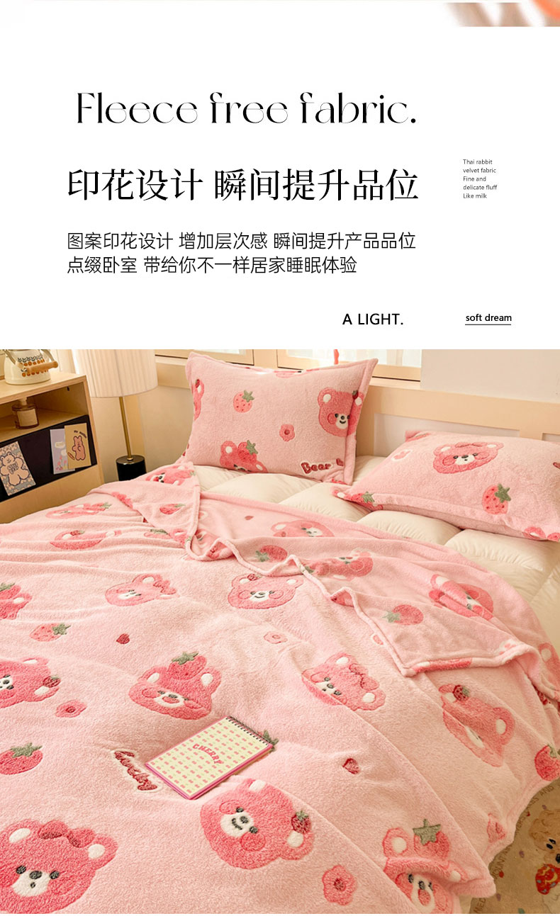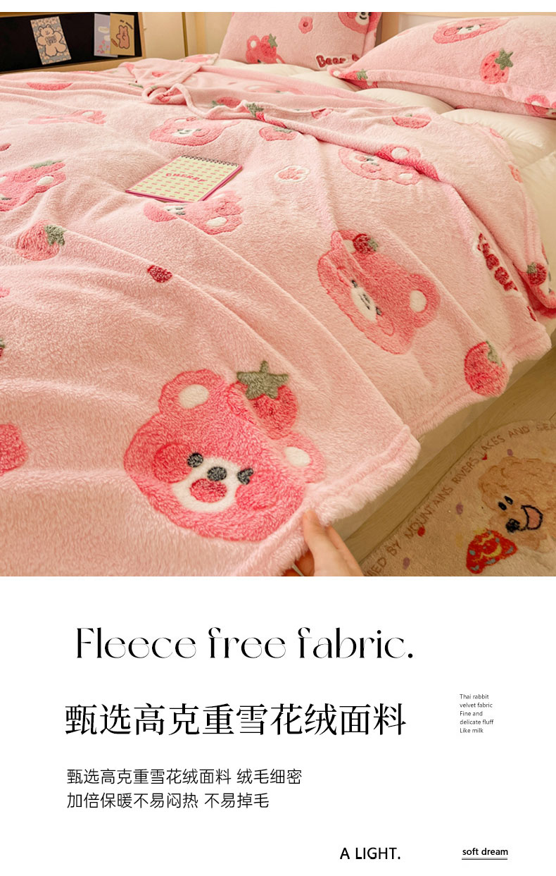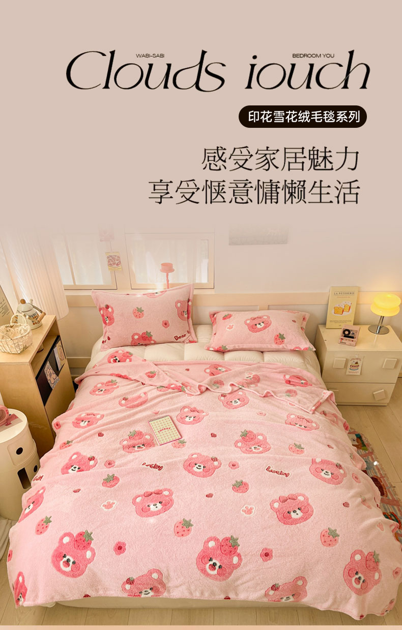 当前位置: 91家纺网 > 商品网购 > 毛毯休闲毯绒毯 > 毛毯 > 川悦生活 2025新款高克重双面雪花绒印花毛毯三件套 毛毯甜系粉熊