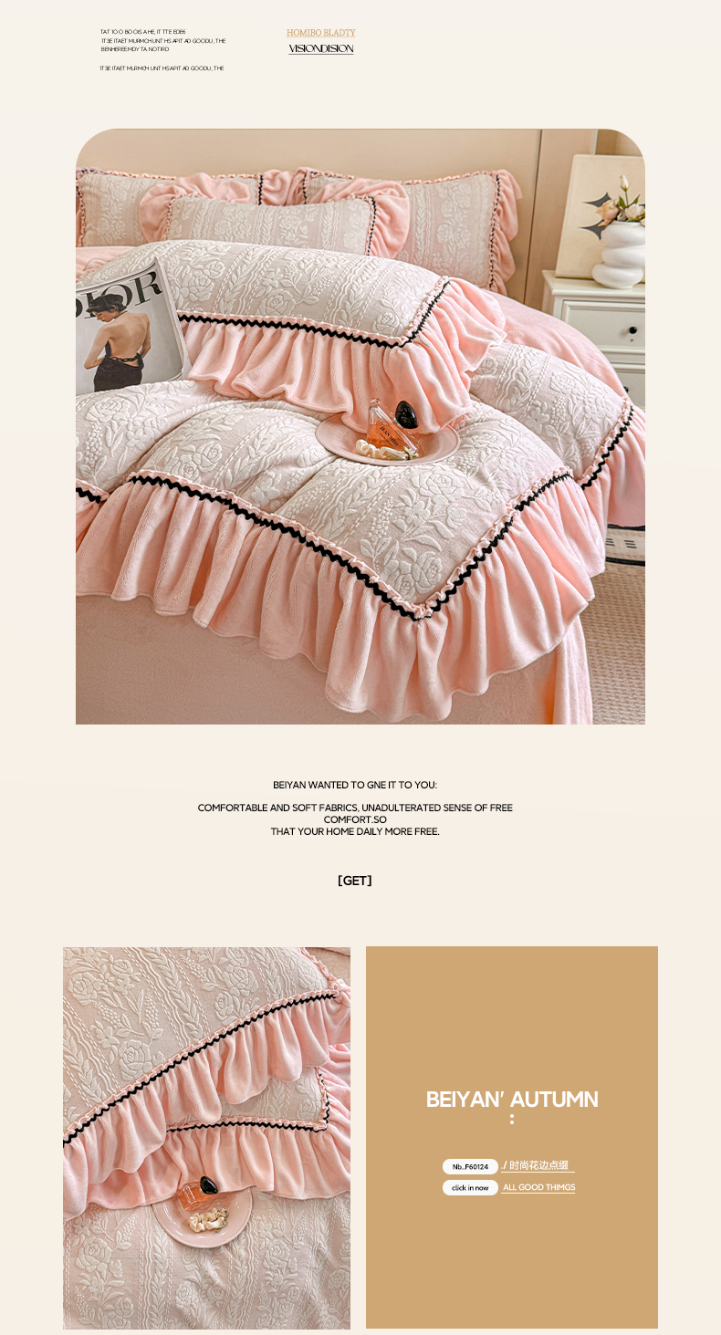 商品名称:畅畅家纺 2025新款轻奢高档烂花牛奶绒花边款四件套 臻爱花园 -浅粉