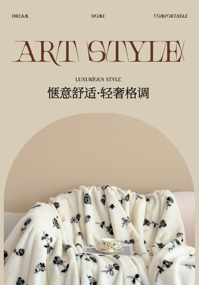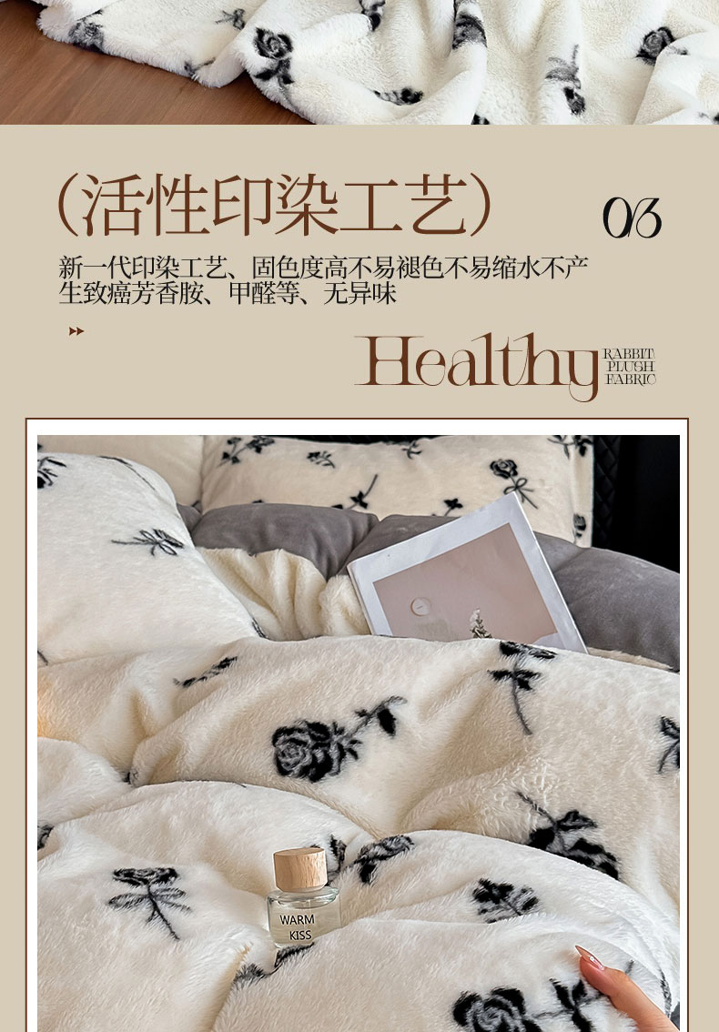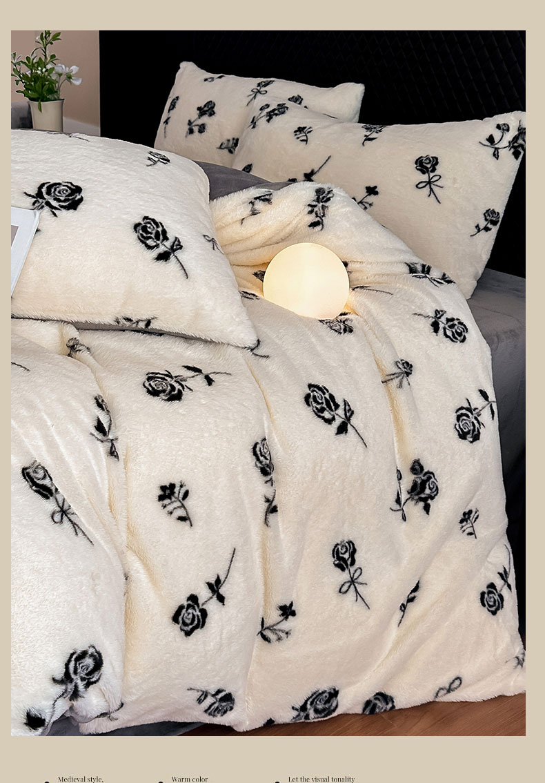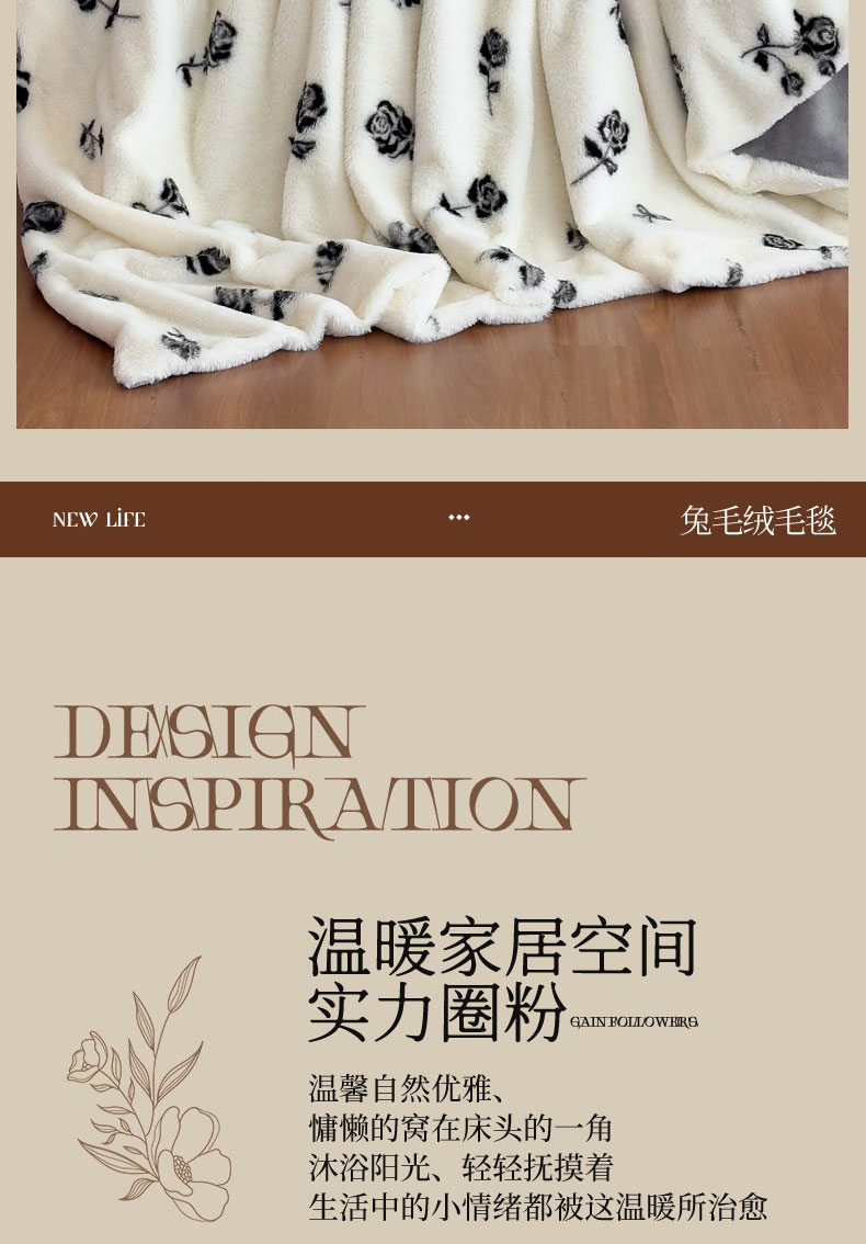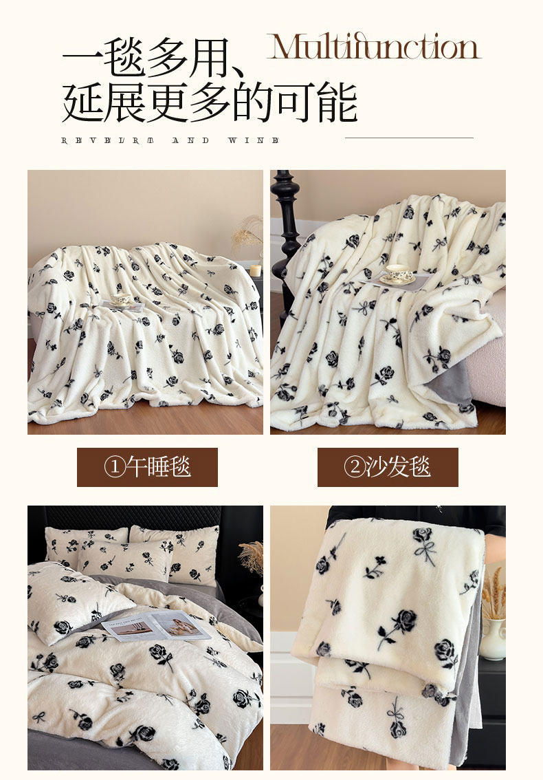 商品名称:璐维斯 2025新款A类兔毛绒双层多功能被套毯带拉链 卡通花卉牛奶绒毛毯秋冬保暖毯子盖毯 玫瑰白