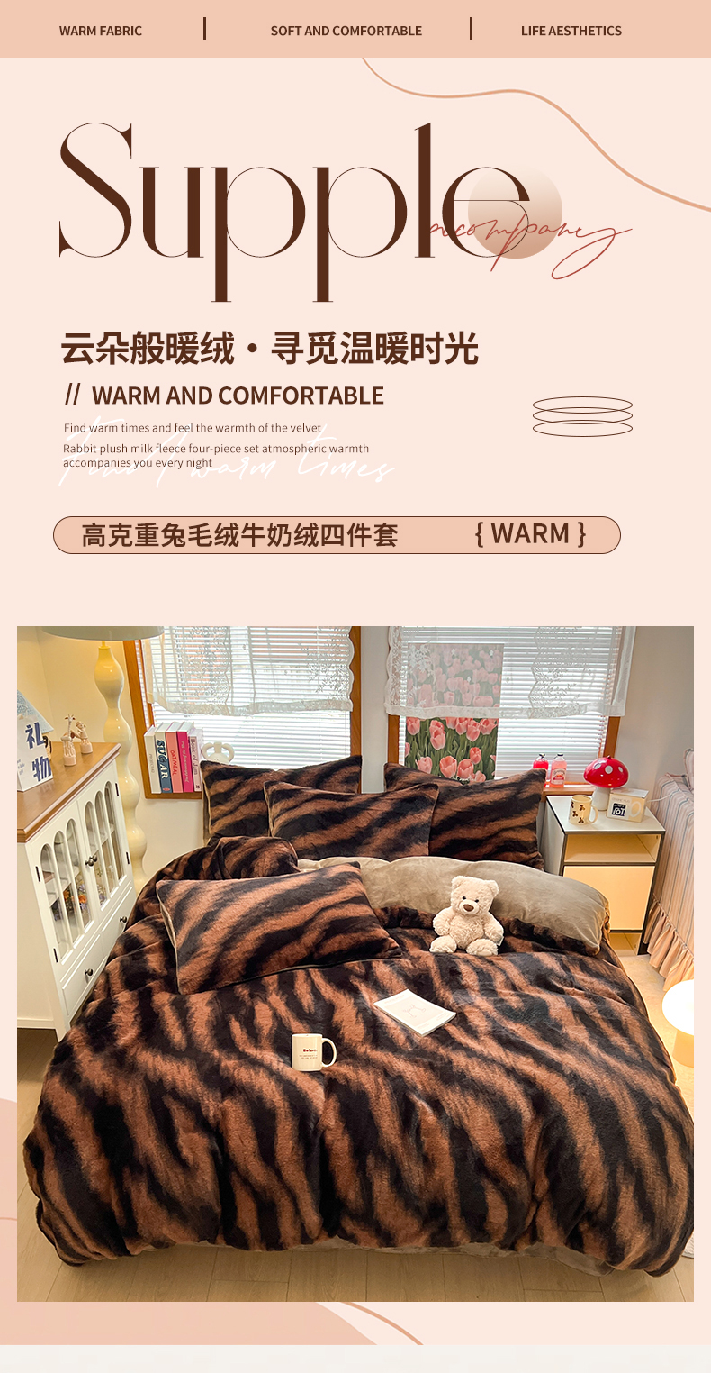当前位置: 91家纺网 > 商品网购 > 床品套件 > 四件套 > 其它四件套 > 妖妖家纺 2025新款加厚印花兔毛绒保暖四件套 斑斓可可
