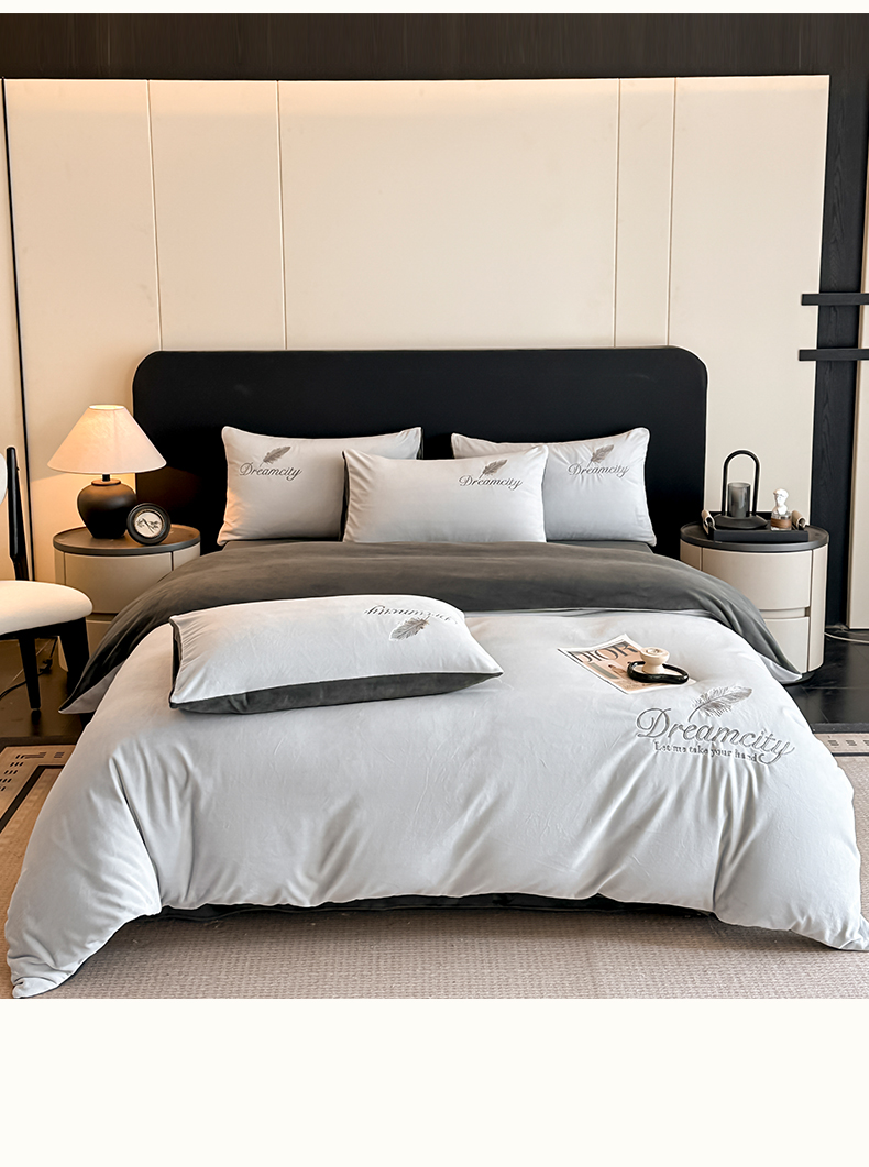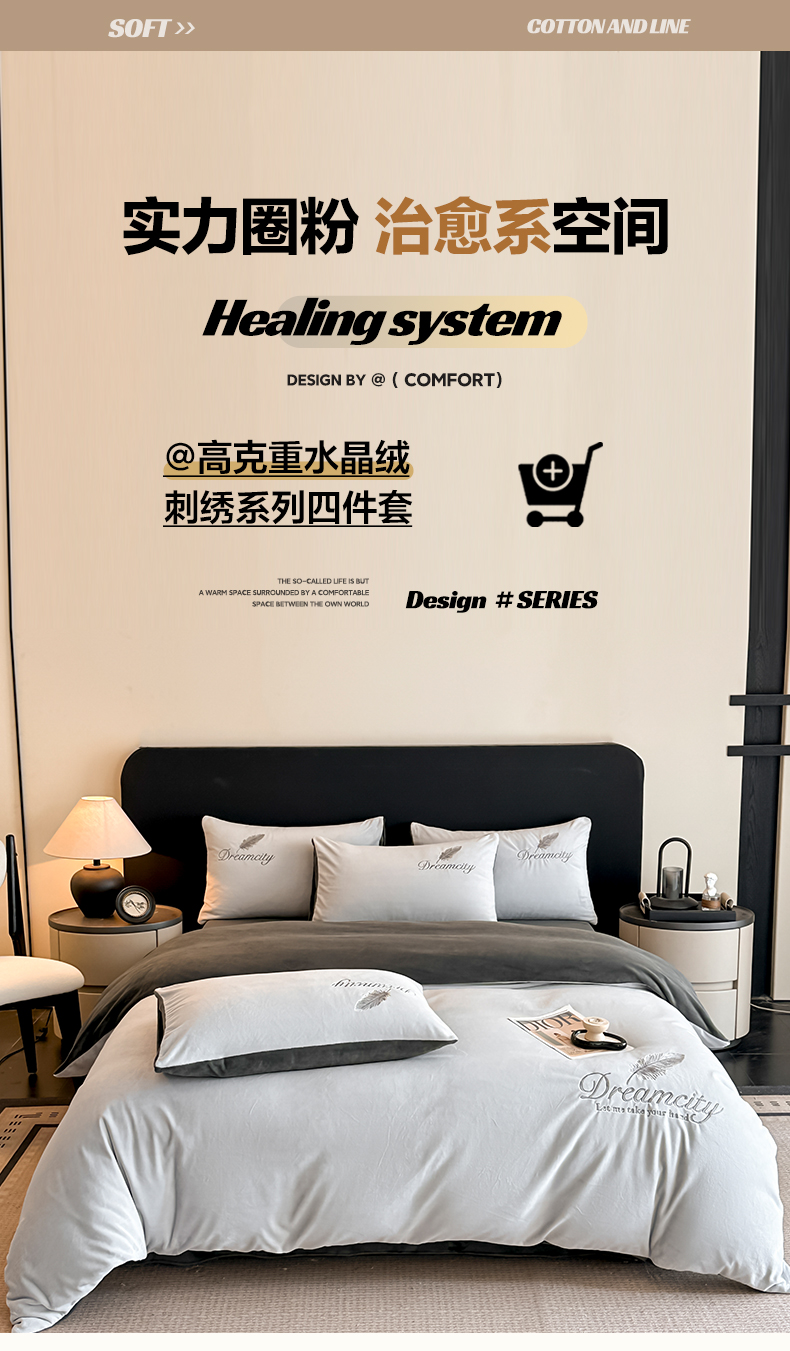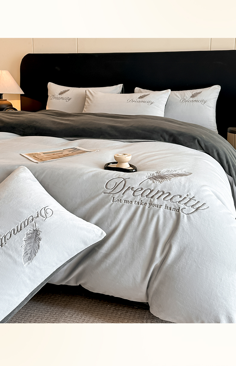 (总)如一 2025新款水晶绒双拼刺绣四件套轻羽系列