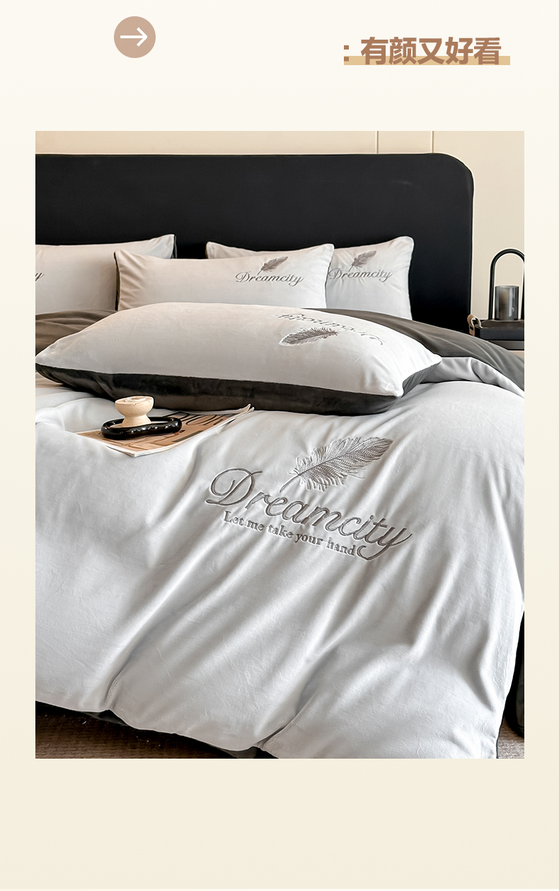 商品名称:(总)如一 2025新款水晶绒双拼刺绣四件套轻羽系列
