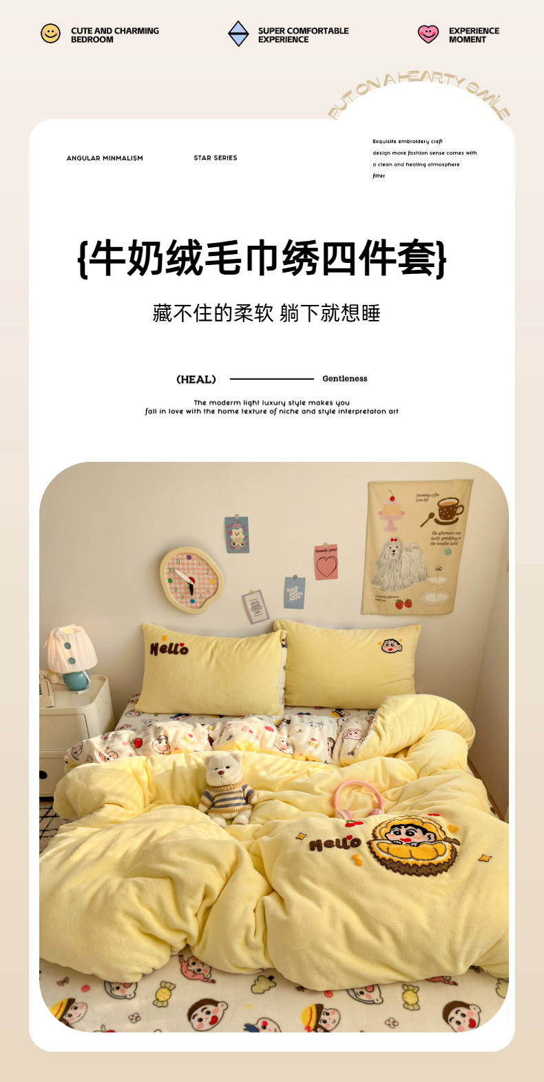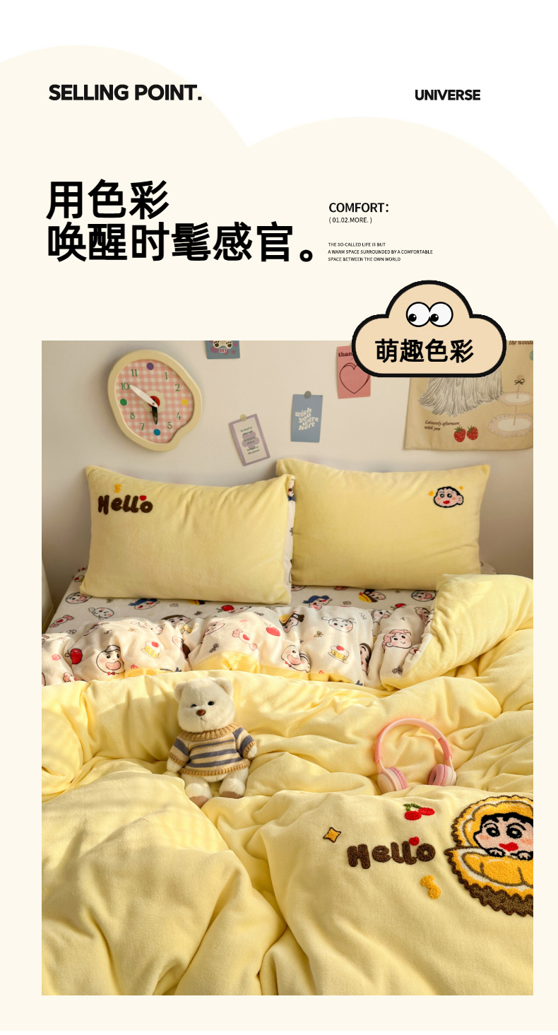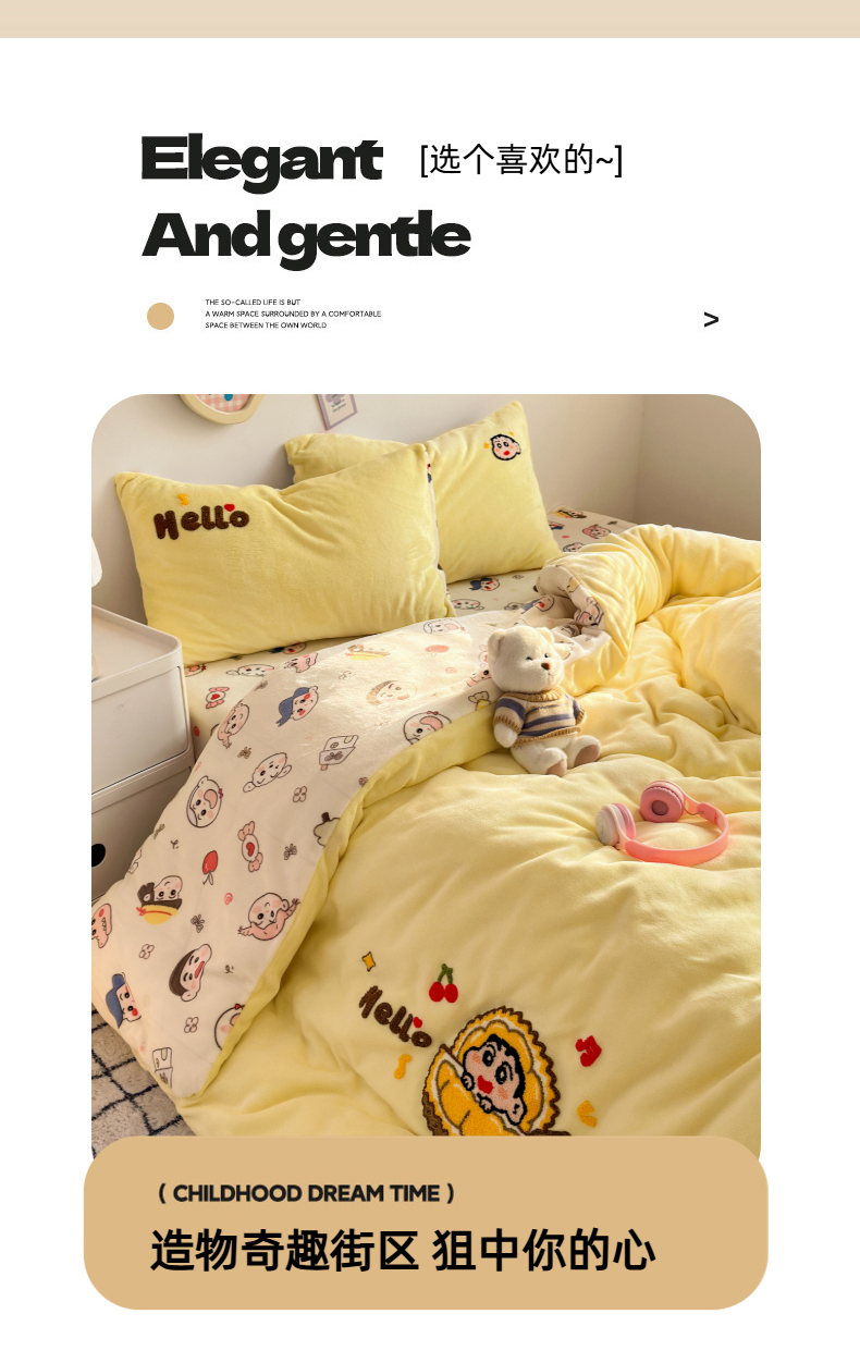 当前位置: 91家纺网 > 商品网购 > 床品套件 > 四件套 > 牛奶绒四件套 > 三元色 2025新款牛奶绒绣花毛巾绣四件套 牛奶绒榴莲小新
