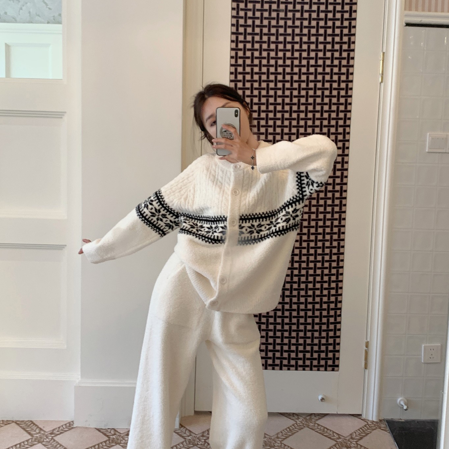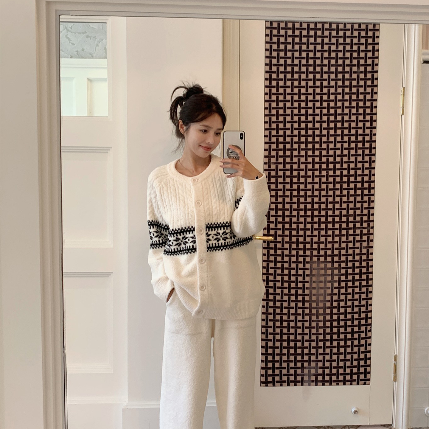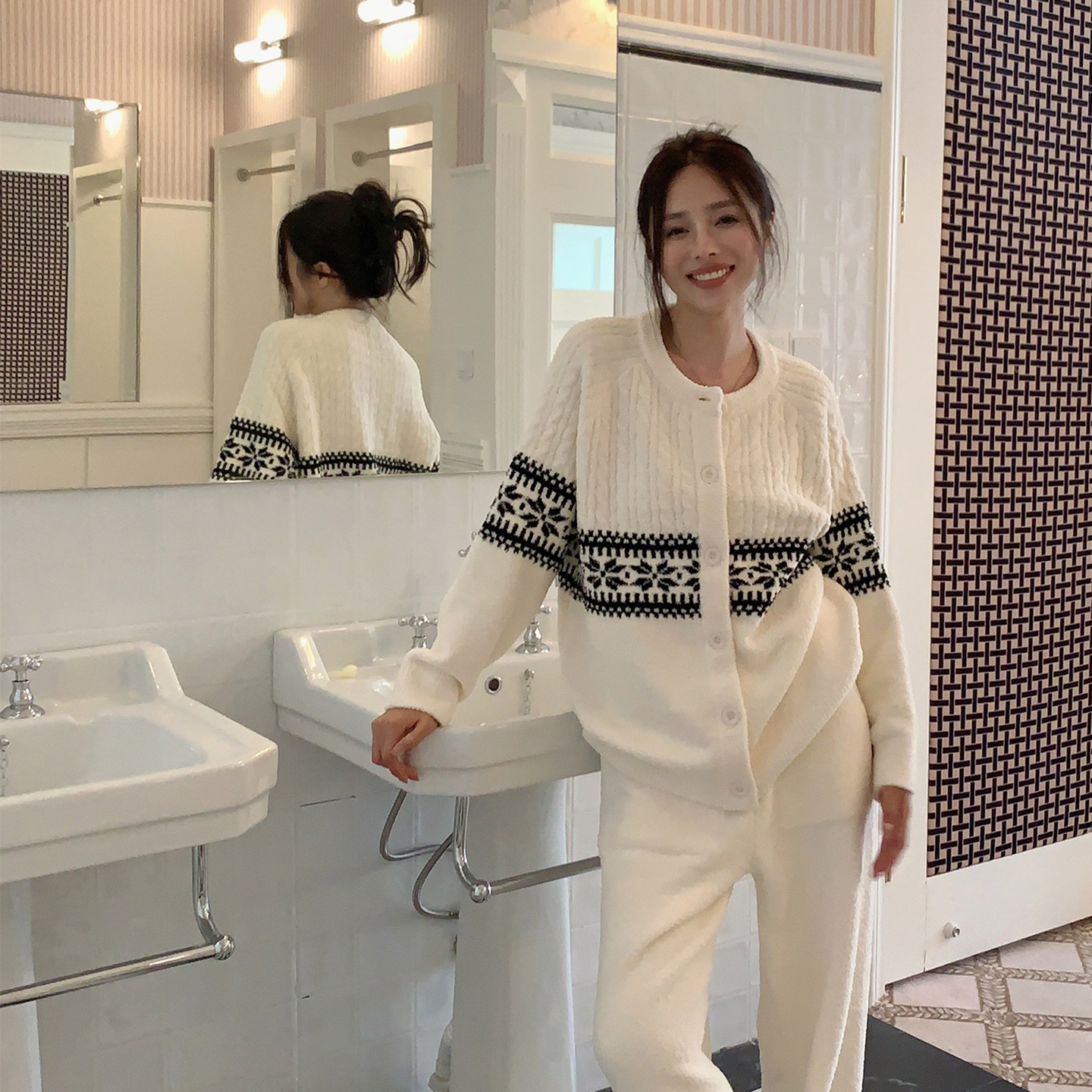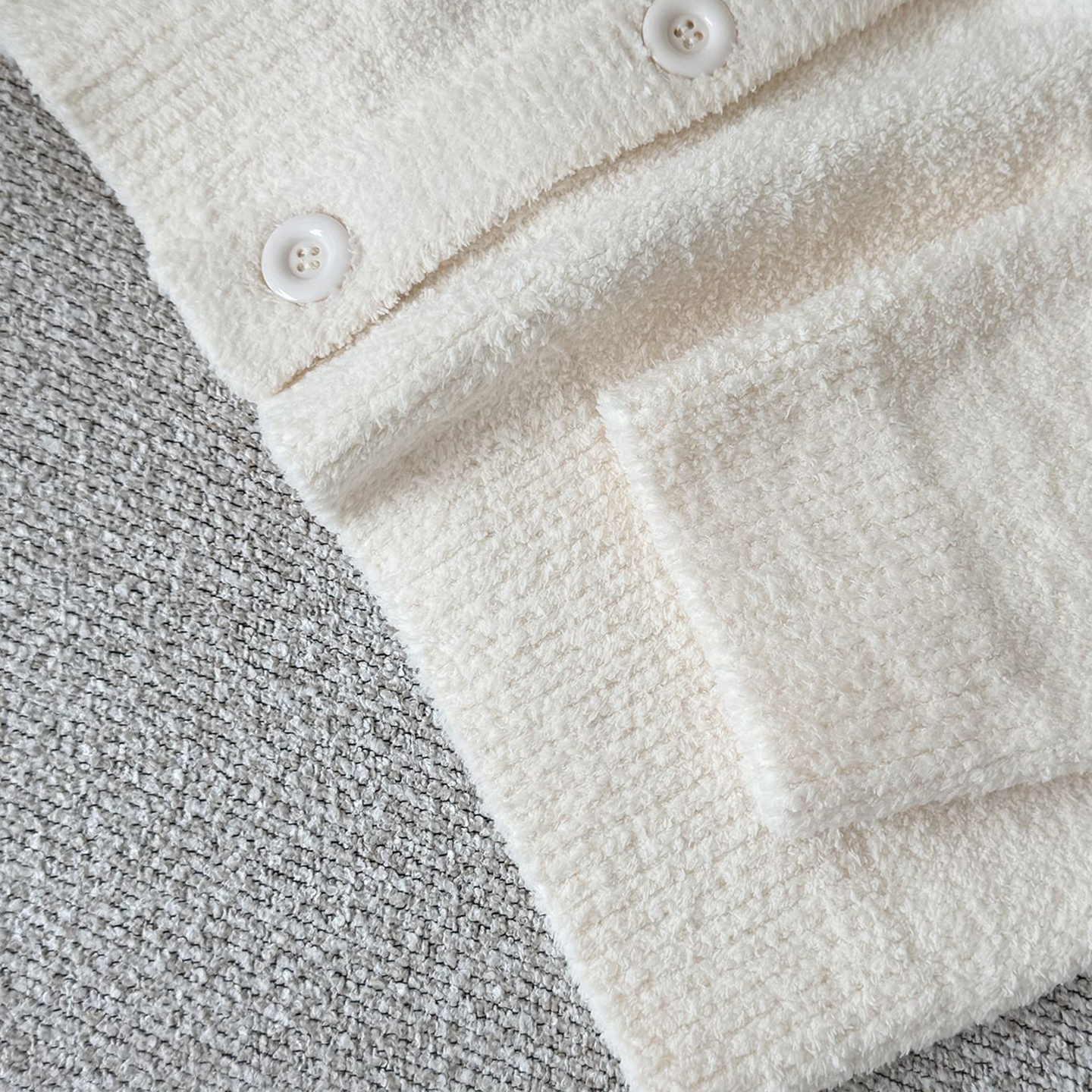 (总)妍景家居生活馆 2025新款韩系双面舒棉绒圆领蝴蝶结套装,白色