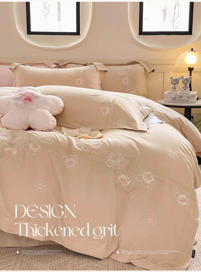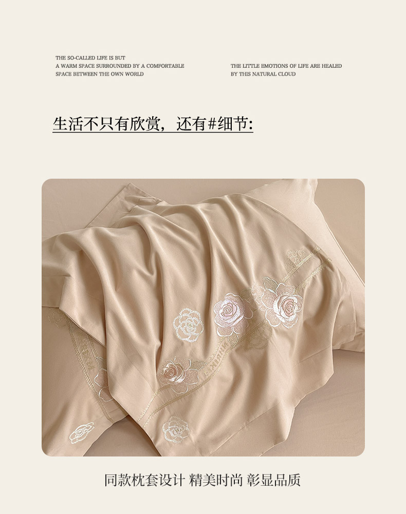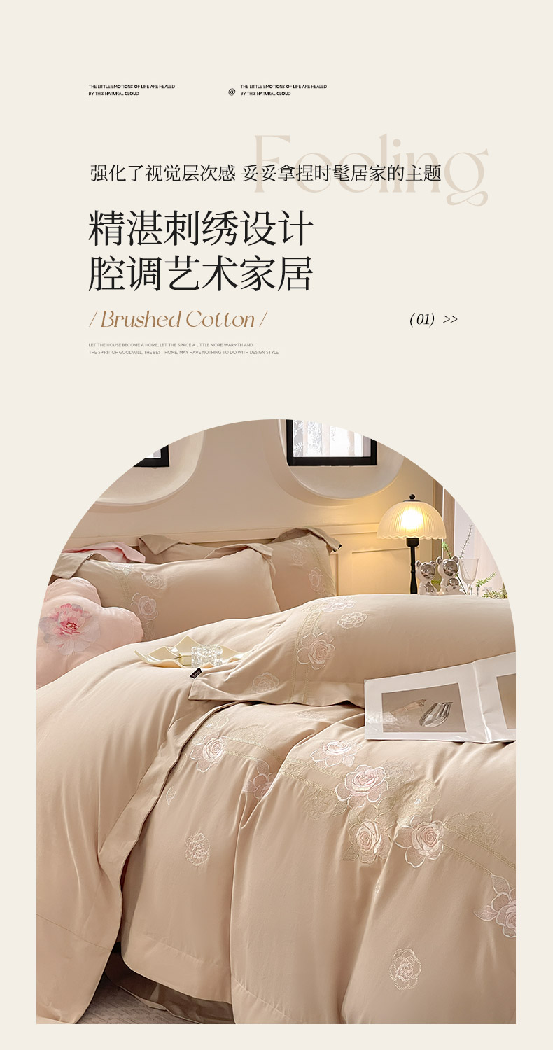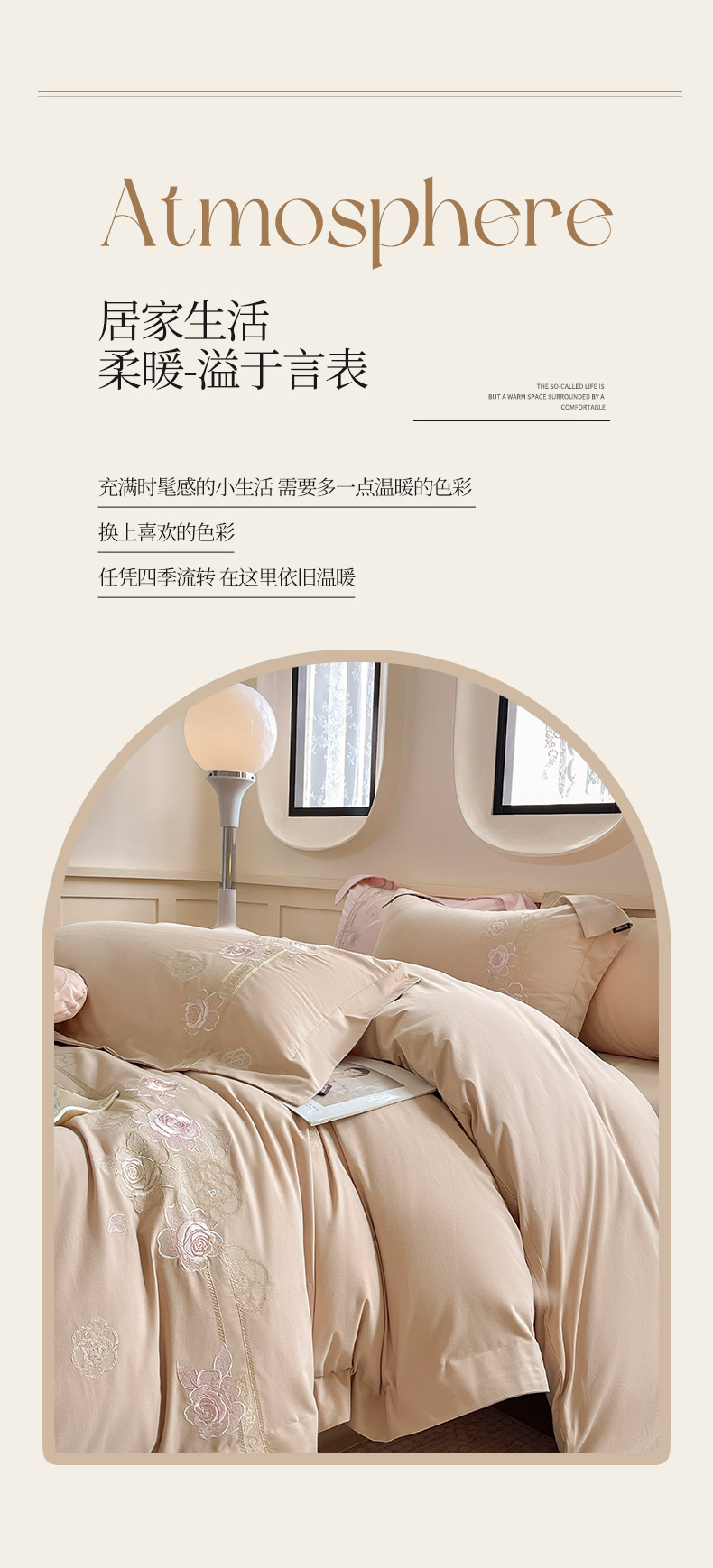 商品名称: 秋冬季爆款A类加厚保暖全棉磨毛四件套纯棉被套重工刺绣床笠款轻奢高端床上用品 温莎-拿铁