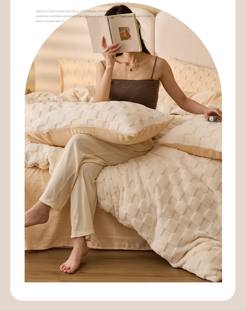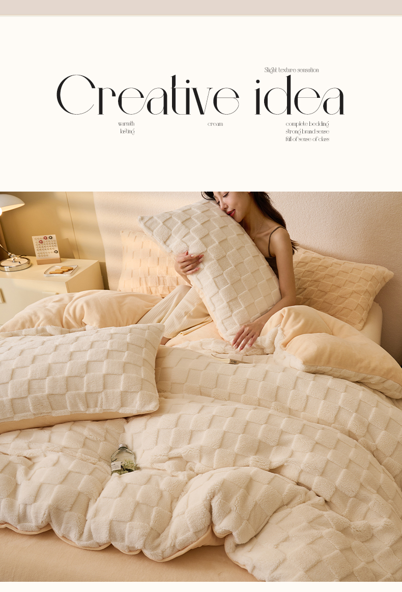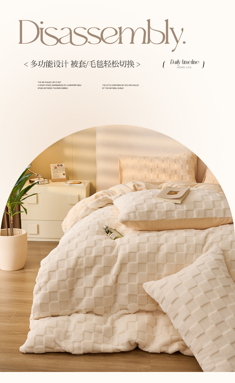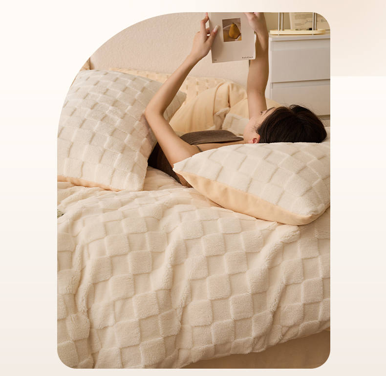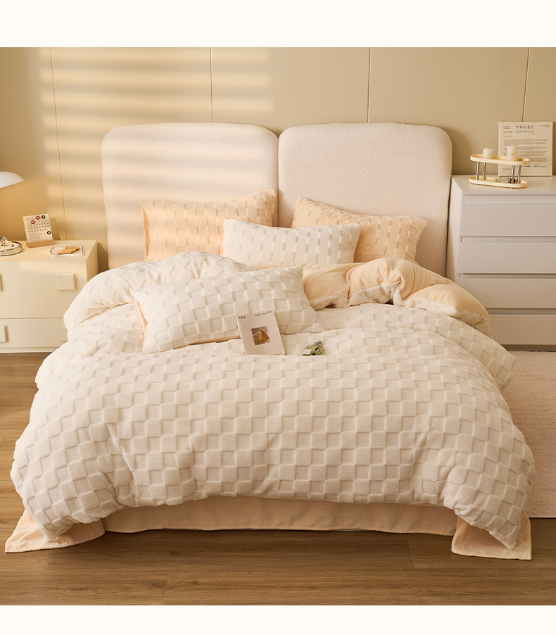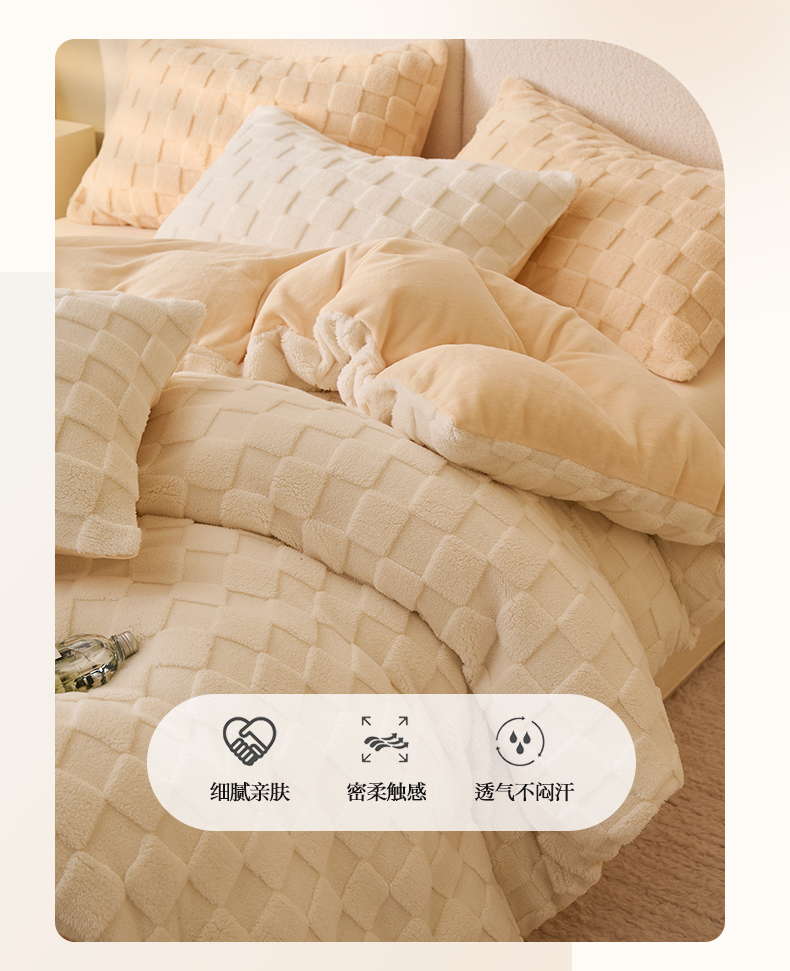 • 91家纺网 家纺一手货源 找家纺 晨曦家纺 2025新款加厚高克重230克塔芙绒牛奶绒单被套-初暖系列 初暖-白拼奶黄