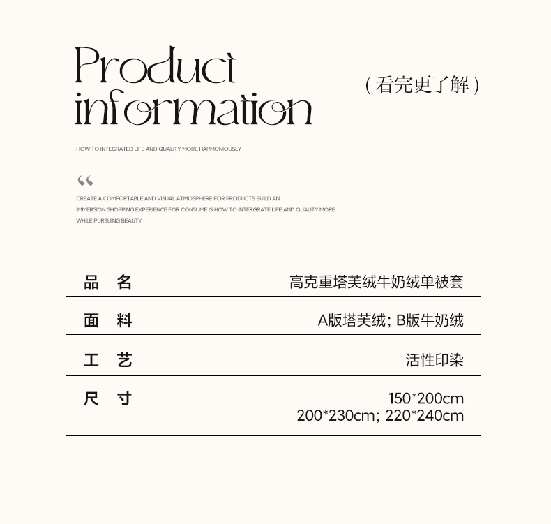 当前位置: 91家纺网 > 商品网购 > 床上用品 > 被套 > 晨曦家纺 2025新款加厚高克重230克塔芙绒牛奶绒单被套-初暖系列 初暖-白拼奶黄