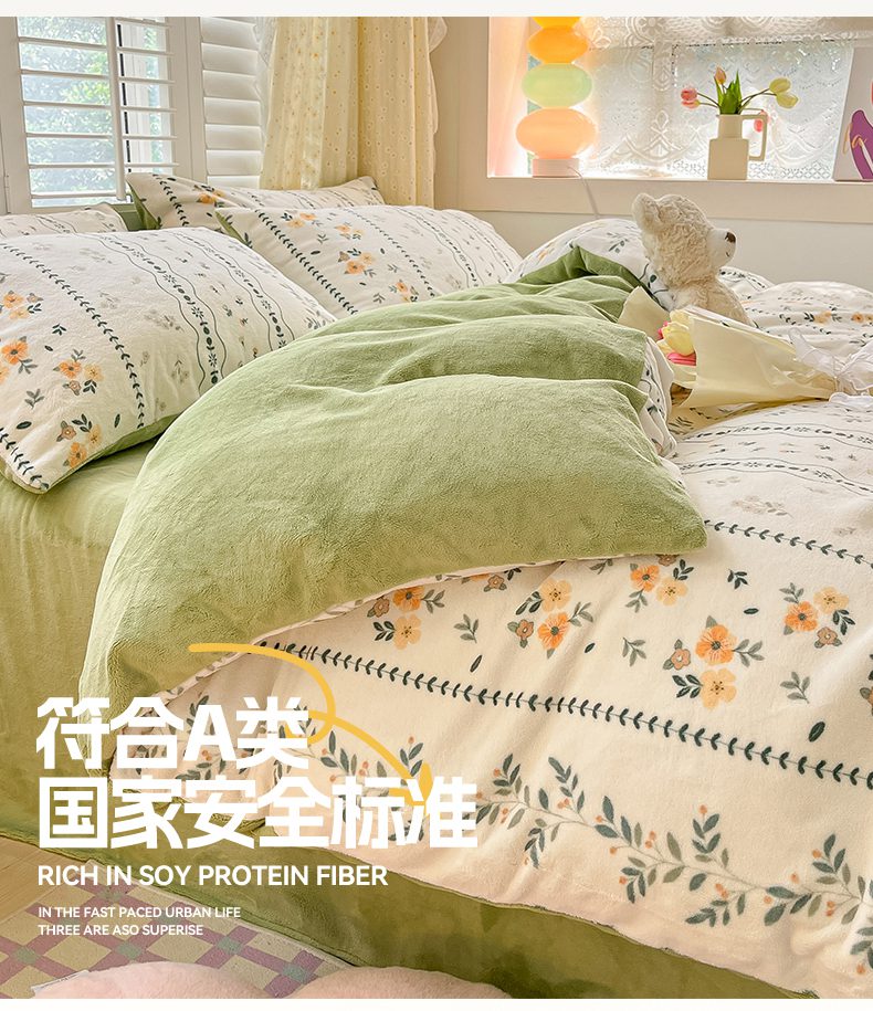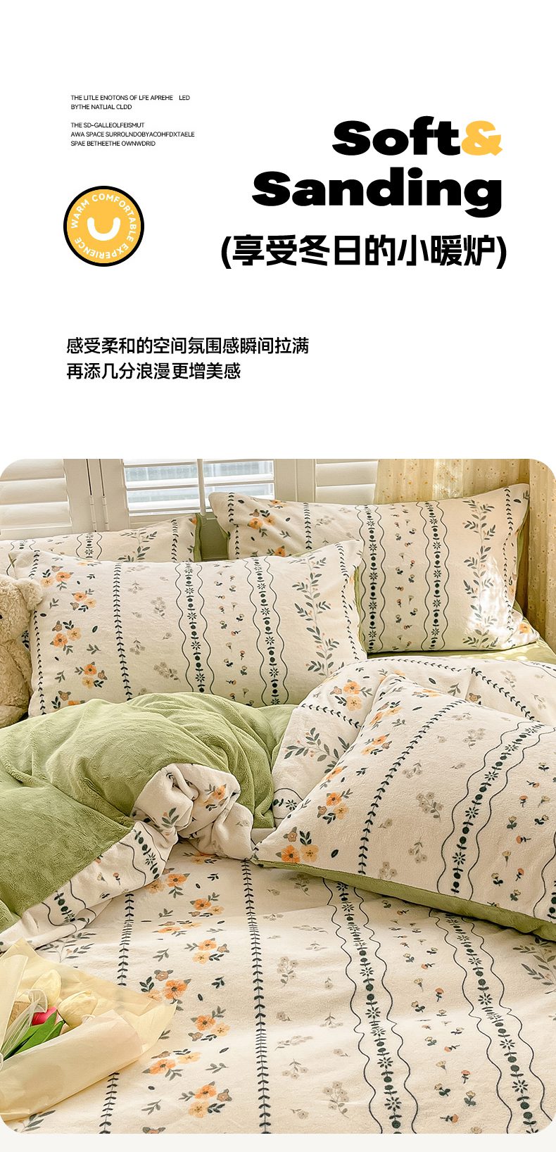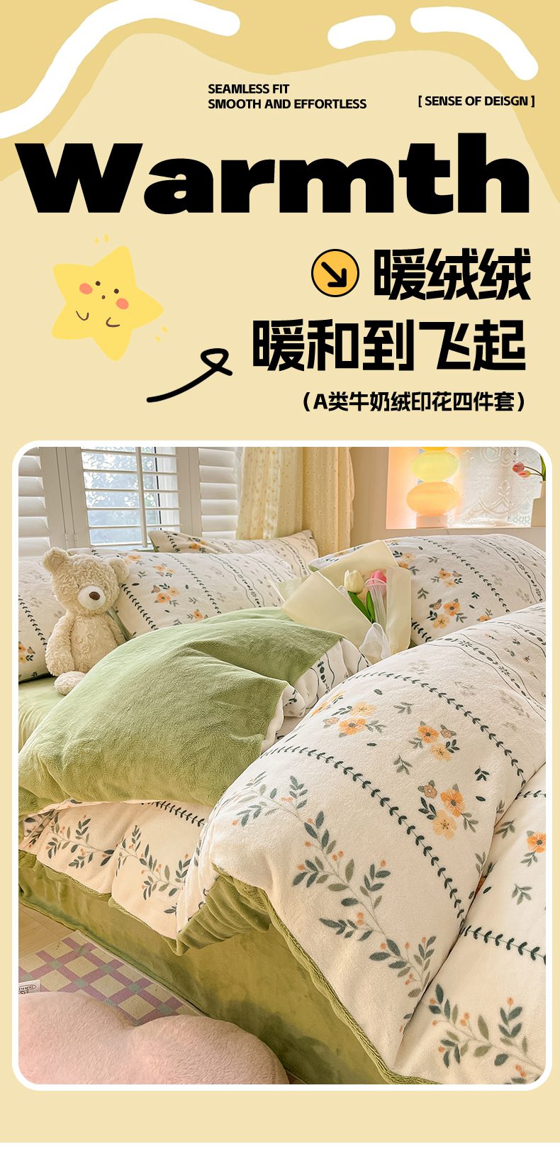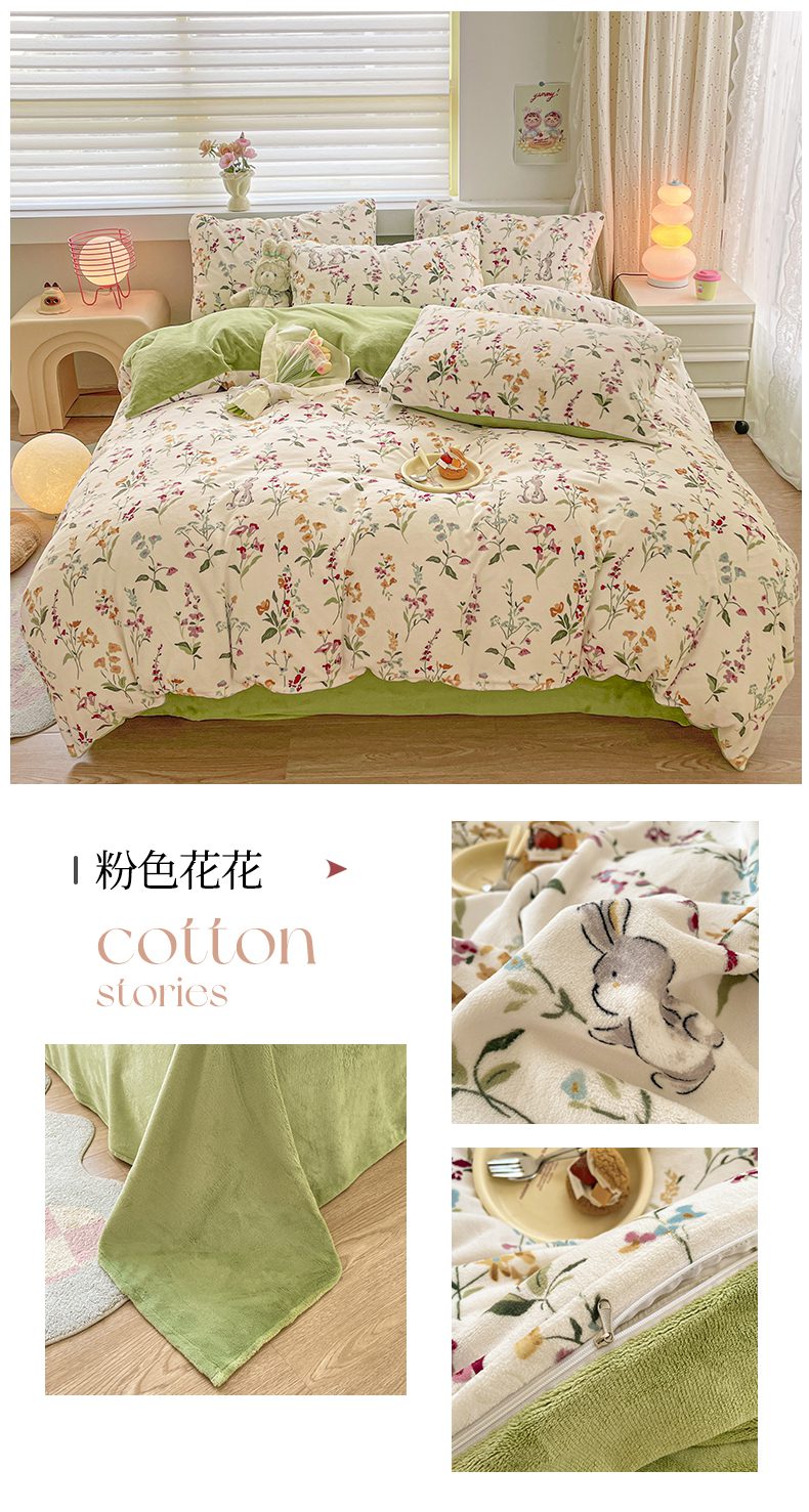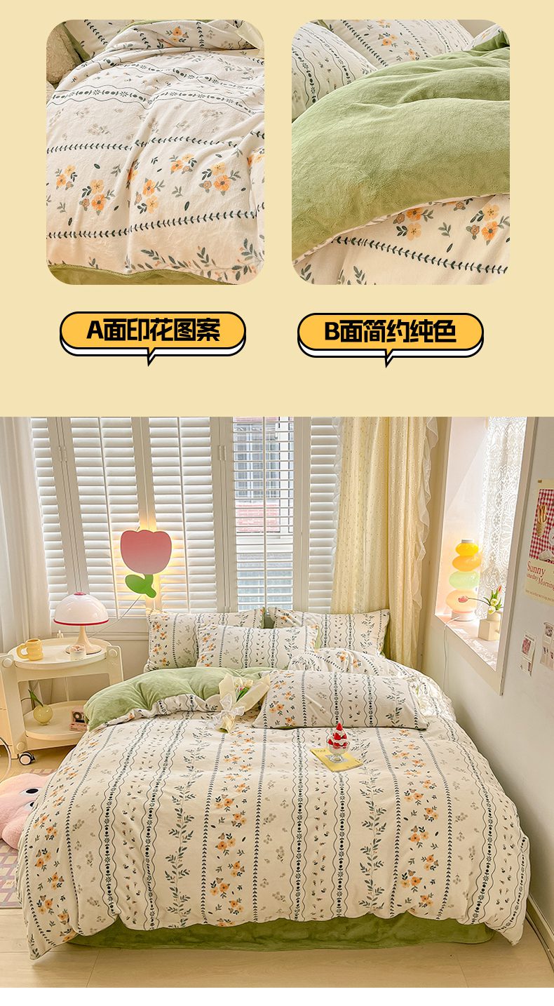 如约 2025新款印花牛奶绒四件套 碧城春泥-绒