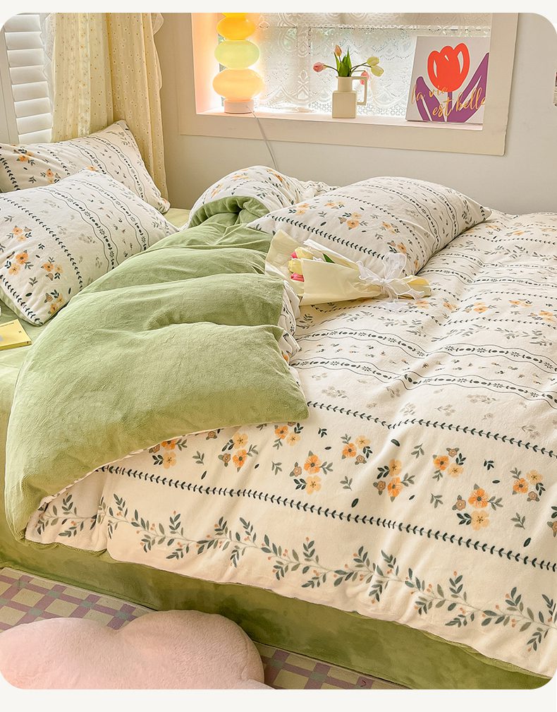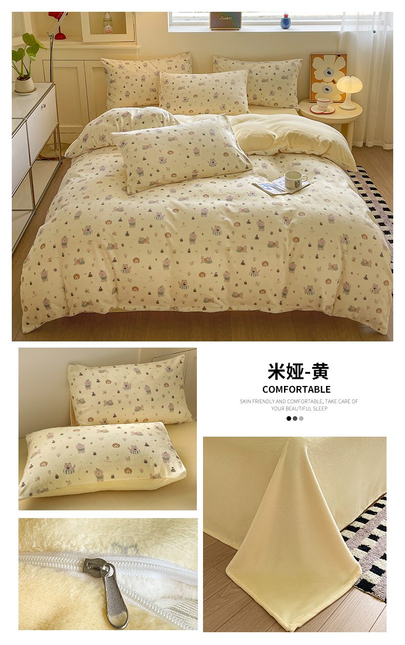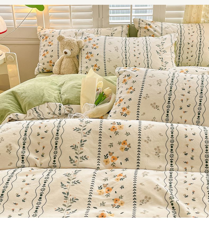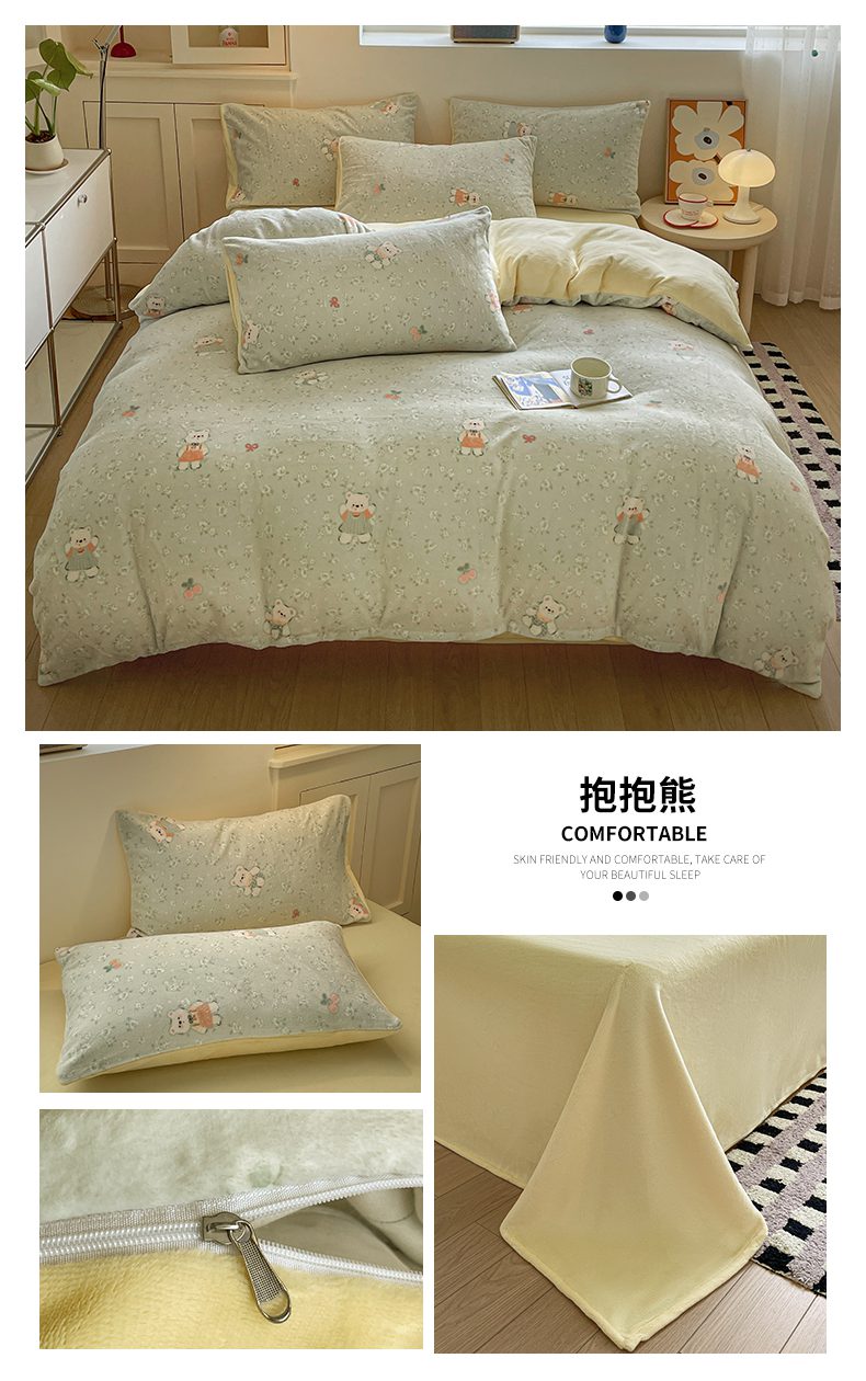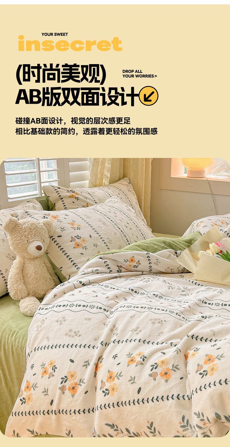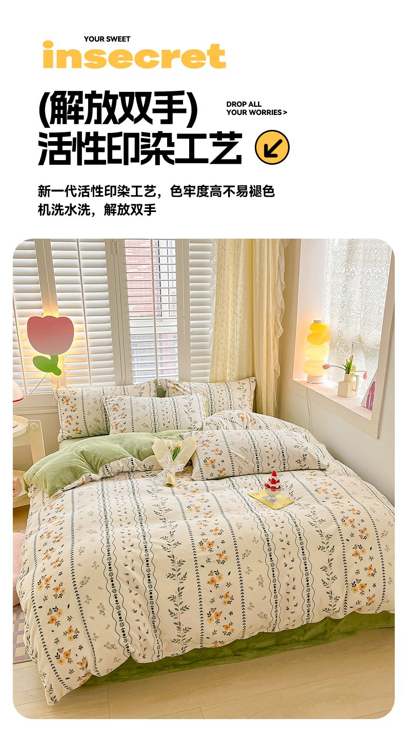 如约 2025新款印花牛奶绒四件套 碧城春泥-绒