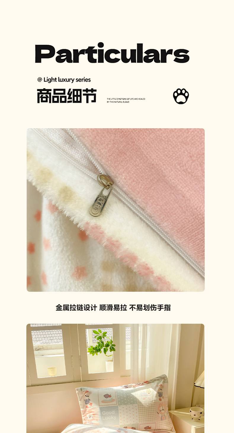 商品名称:红日子纺织品 2025新款高克重牛奶绒印花四件套 动物派对