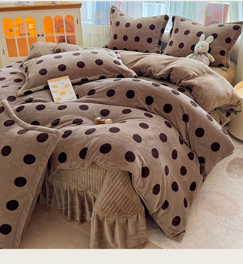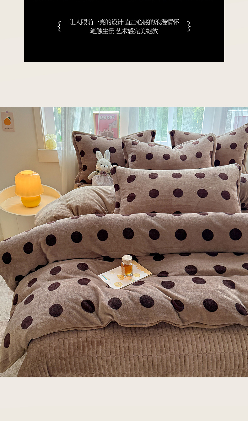 当前位置: 91家纺网 > 商品网购 > 床品套件 > 四件套 > 牛奶绒四件套 > 鸿羽樱家纺《原伊菲晓》 2025新款花仙子系列印花牛奶绒床盖炕垫炕盖四件套-云裳 云裳-咖色圈圈