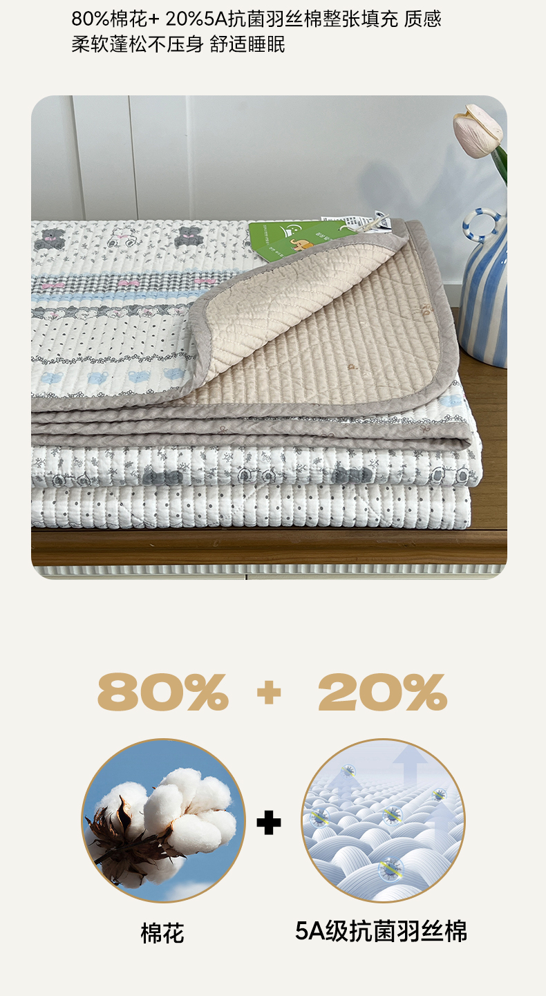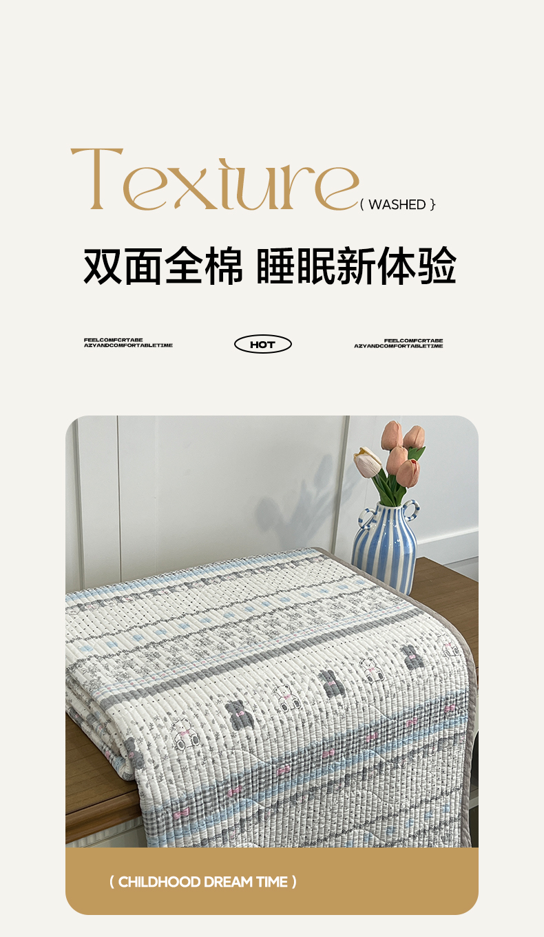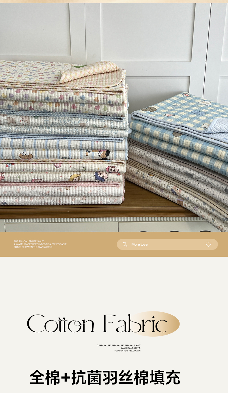 (总)沐纯家居 2025新款跑量款双面纯棉 棉花填充水洗床盖,动漫小人,布依格-灰,星星柯基,丛草集,绿格熊猫,豹纹猫,爱之语,冰格维尼,布依格-米,彩虹喵喵,花丛小熊,吉吉猫,蓝白格纹,浪漫绿格,绿格熊宝,排队柯基,拼格小熊,清新兔语,碎花兔熊,条纹萌犬,小萌人,星愿旺旺,组合图仅供展示