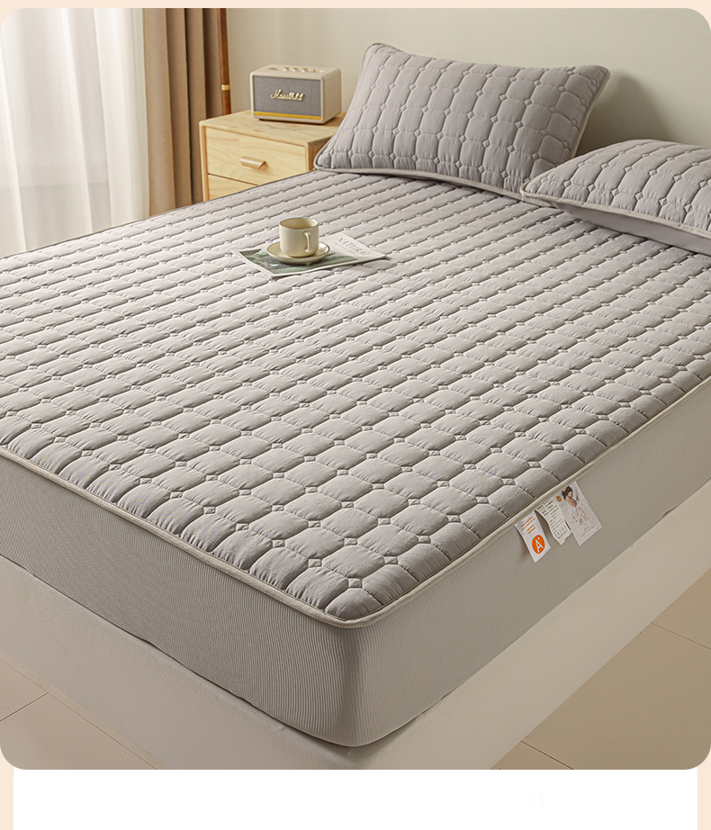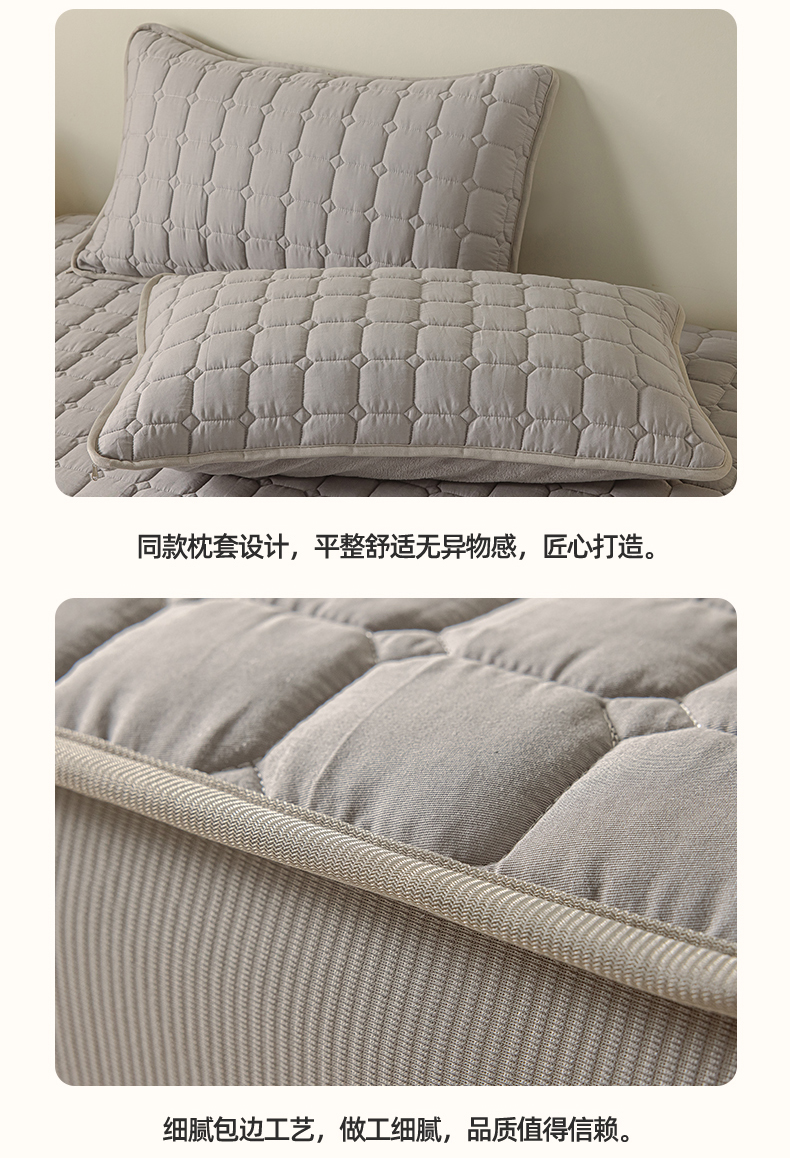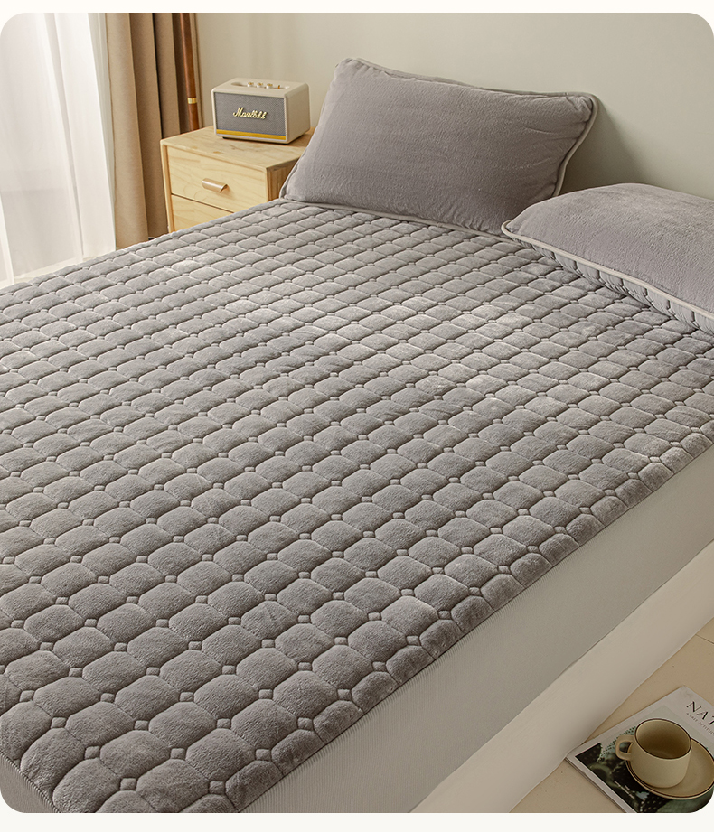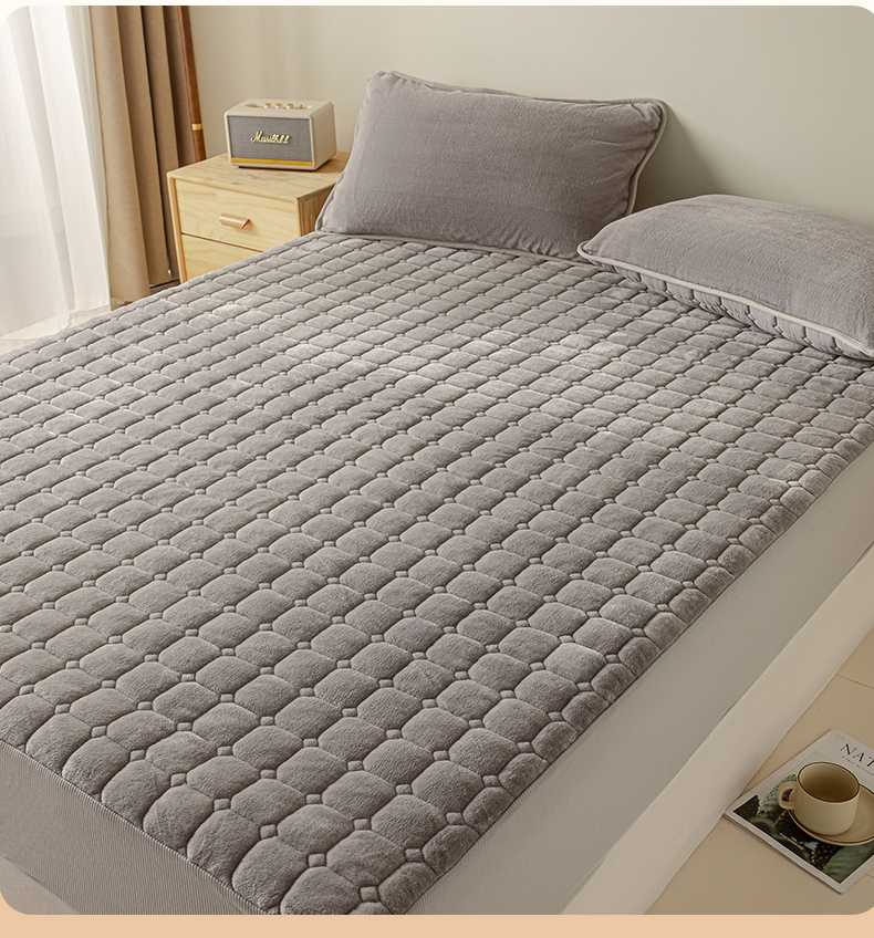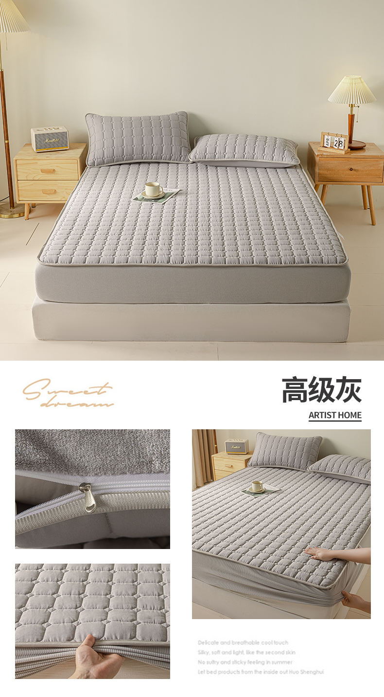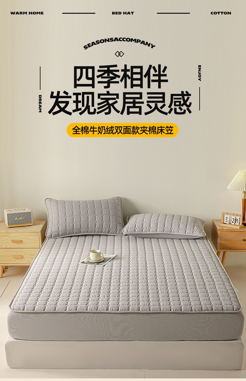 • 91家纺网 家纺一手货源 找家纺 2025新款全棉牛奶绒双面款夹棉床笠 高级灰