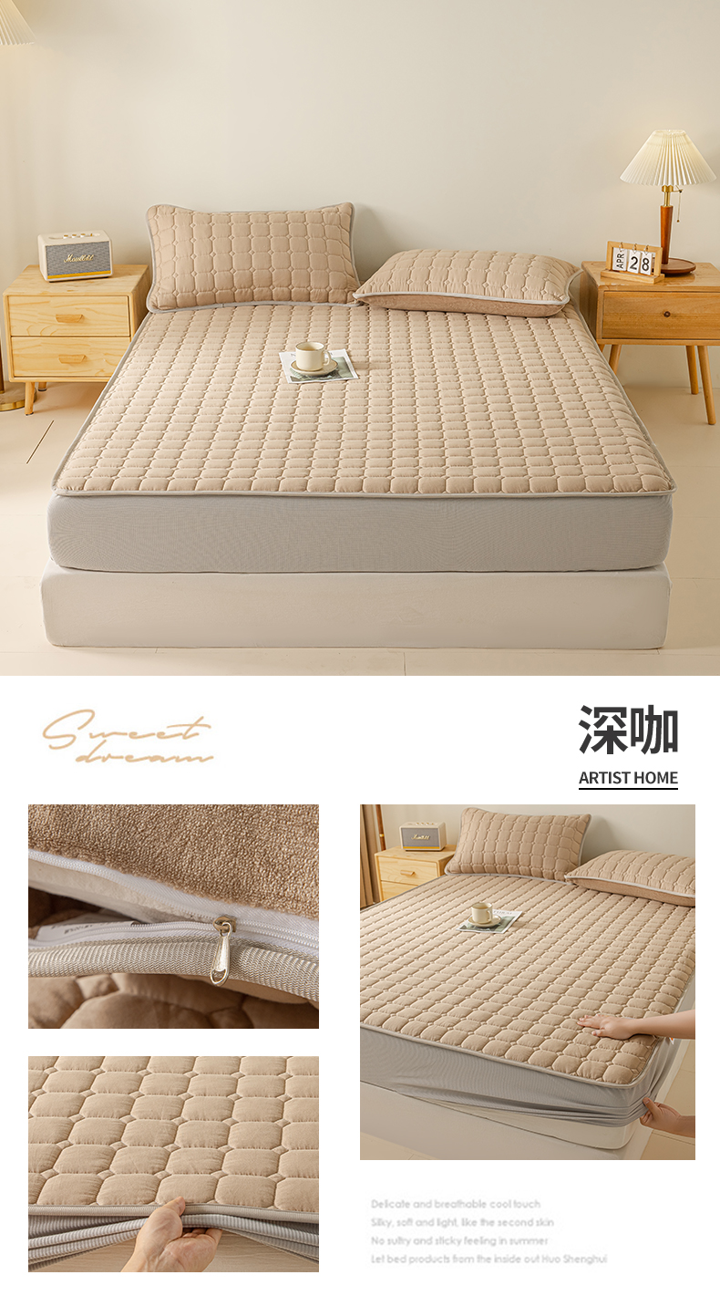 (总)2025新款全棉牛奶绒双面款夹棉床笠,高级灰,奶茶咖,奶油白,牛油果绿,少女粉,深咖,雾霾蓝