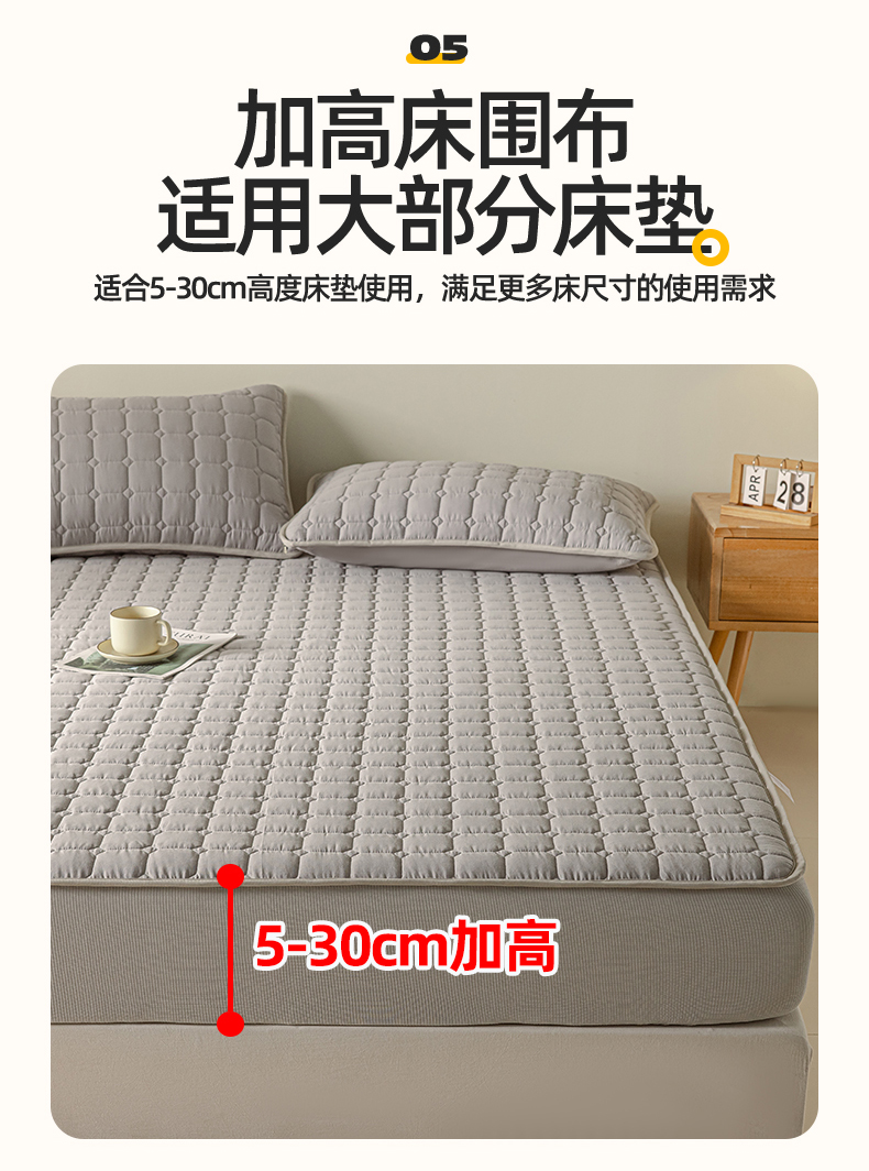 2025新款全棉牛奶绒双面款夹棉床笠 高级灰