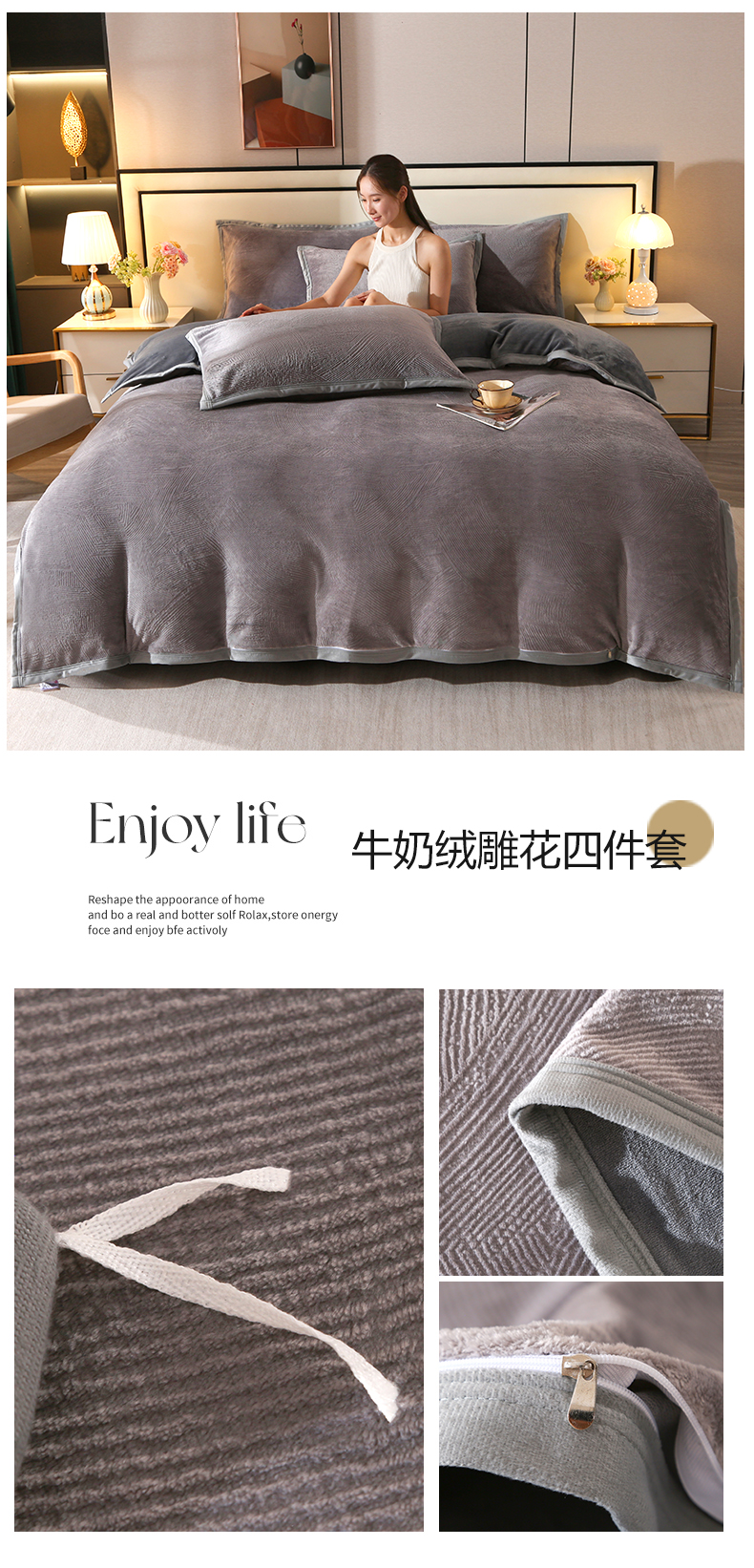 当前位置: 91家纺网 > 商品网购 > 床品套件 > 四件套 > 牛奶绒四件套 > 小叮当家纺仓储工厂店 2025新款A类母婴级高克重8.5斤牛奶绒四件套烂花绒雕花绒四件套 玫瑰-粉玉