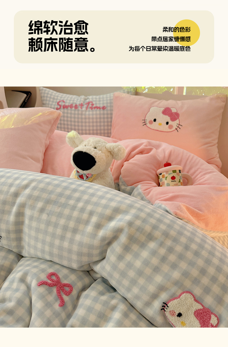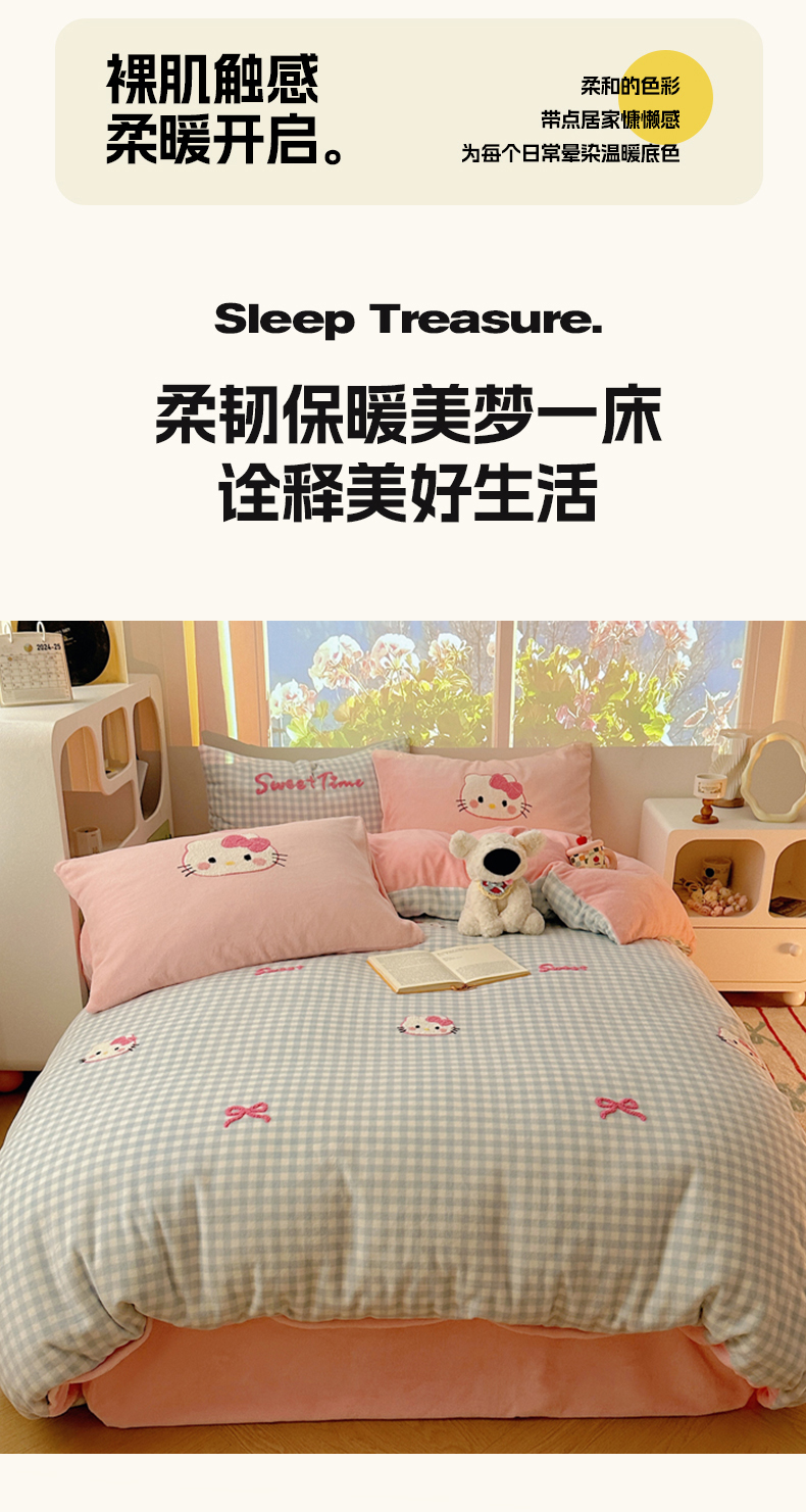 商品名称:(总)小叮当家纺仓储工厂店 买家秀 爆款花型2025新款秋冬保暖牛奶绒卡通小清新毛巾绣系列四件套
