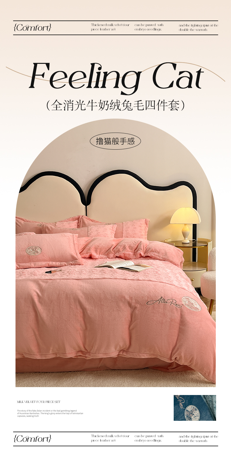 梓之赫 2025新款全消光牛奶绒四件套-浪漫玫瑰 浪漫玫瑰-粉玉