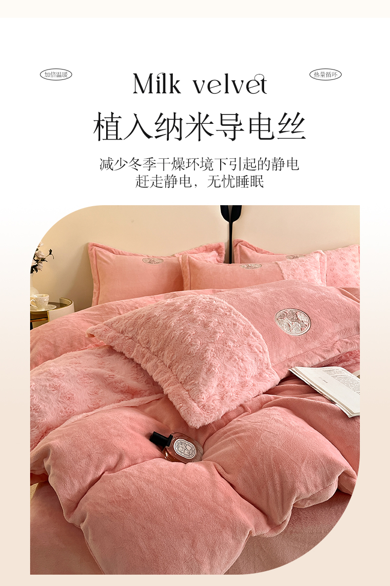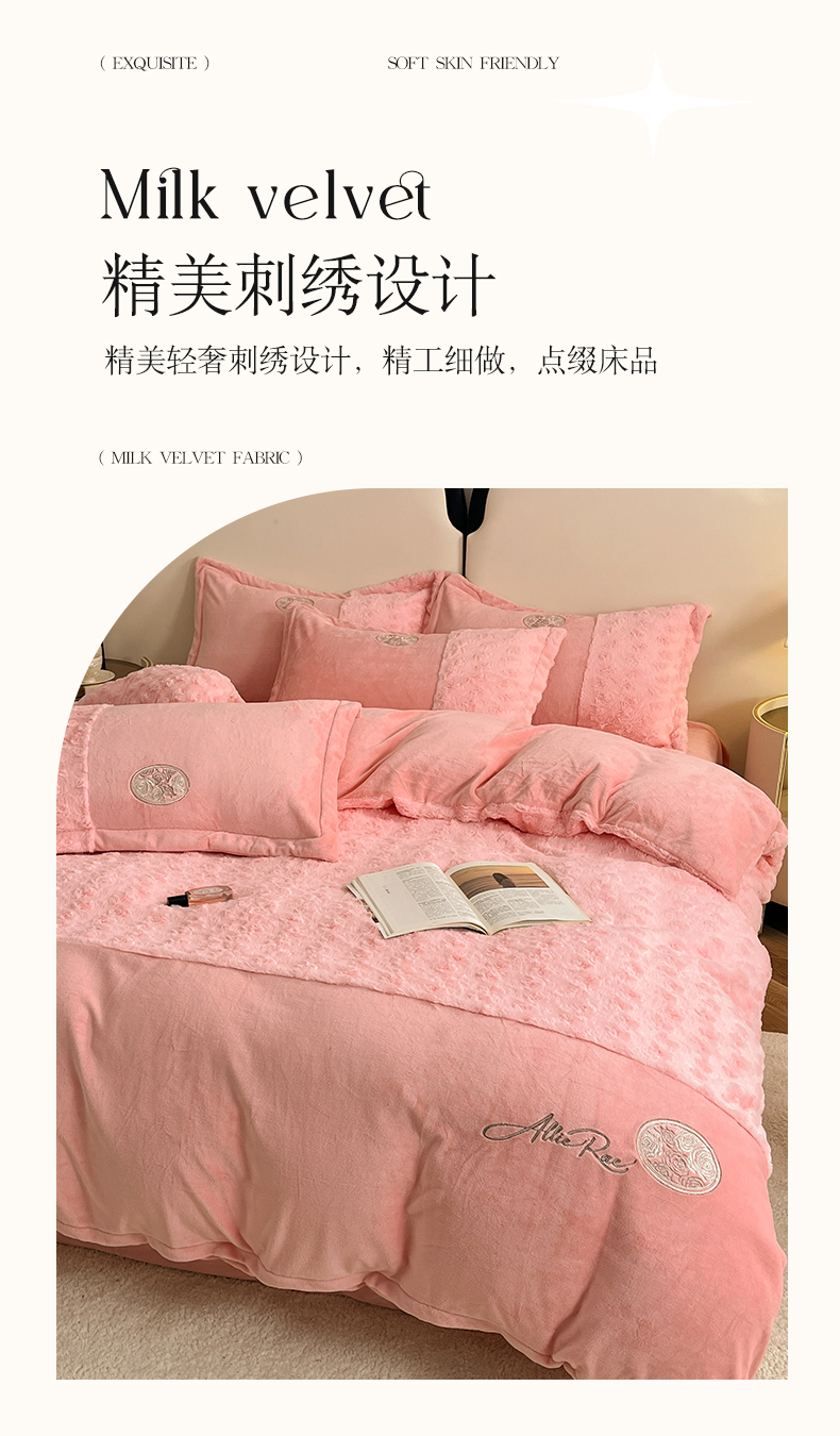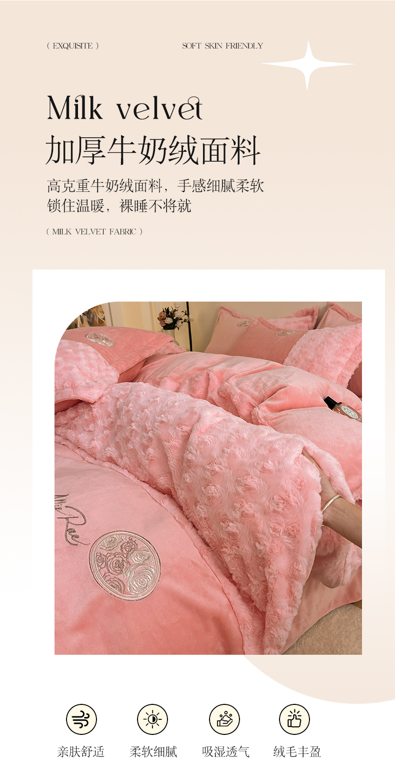 商品名称:梓之赫 2025新款全消光牛奶绒四件套-浪漫玫瑰 浪漫玫瑰-粉玉