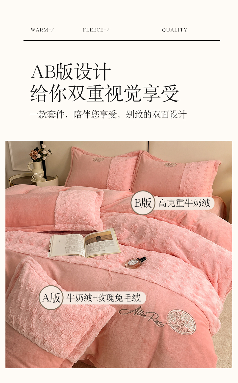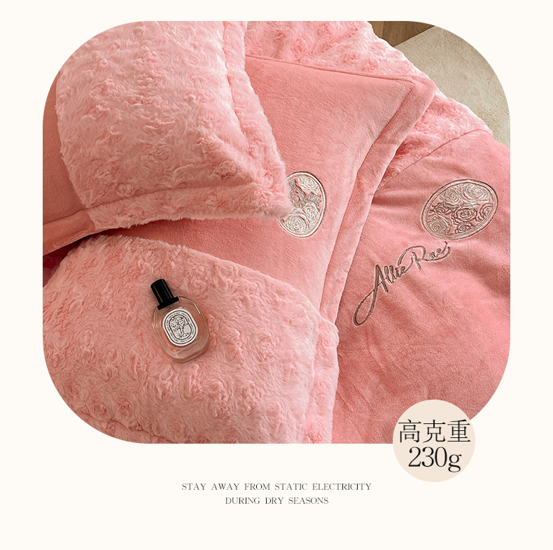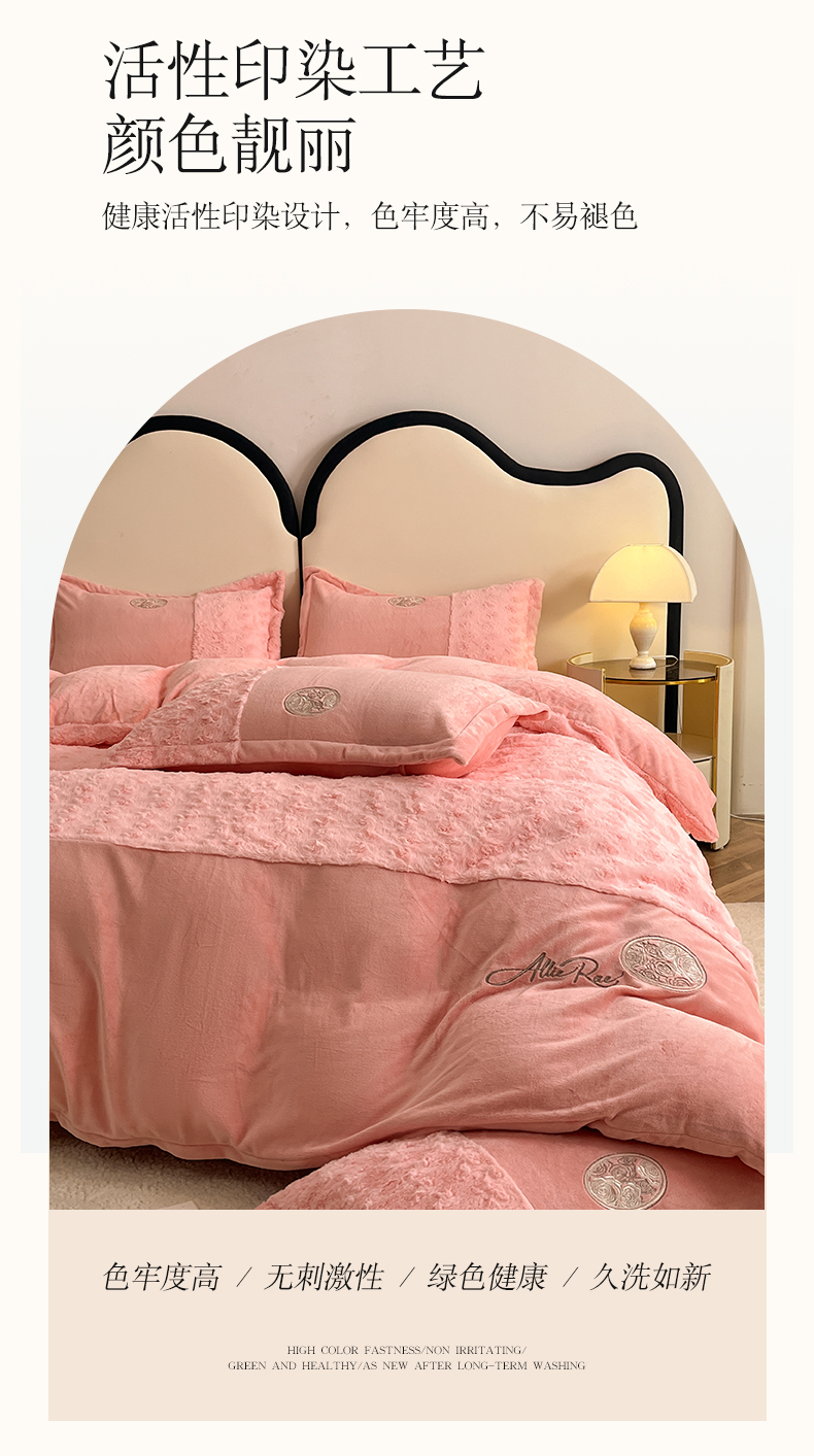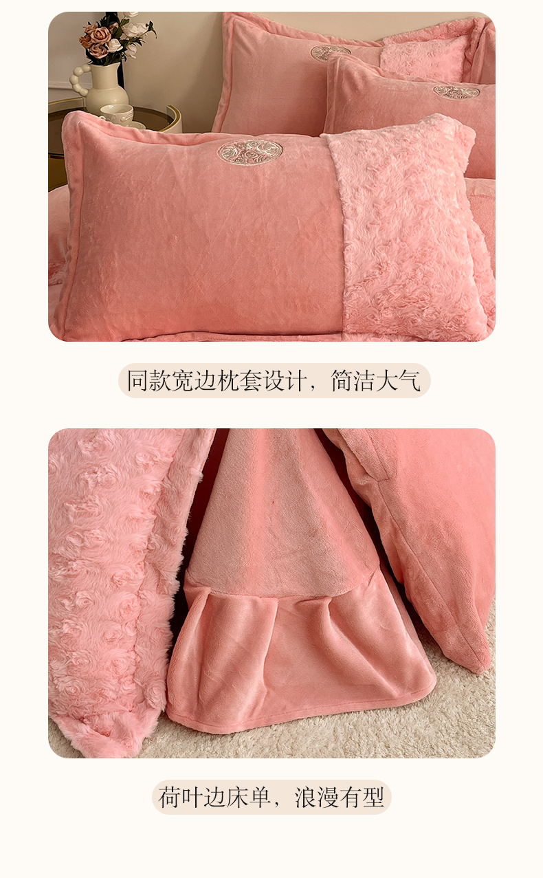 商品名称:梓之赫 2025新款全消光牛奶绒四件套-浪漫玫瑰 浪漫玫瑰-粉玉