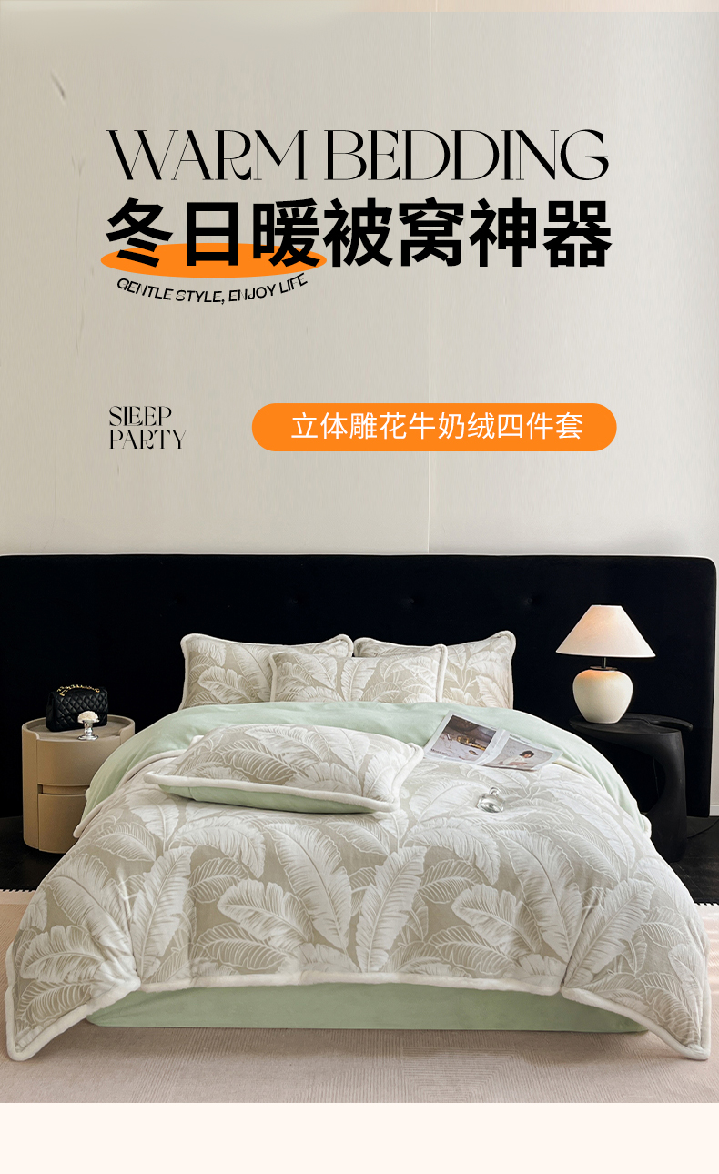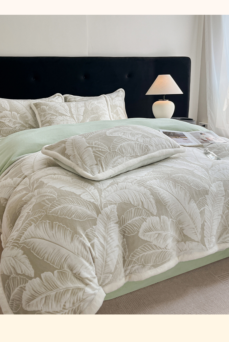 极简 2025新款立体雕花牛奶绒四件套系列 佐伊-绿