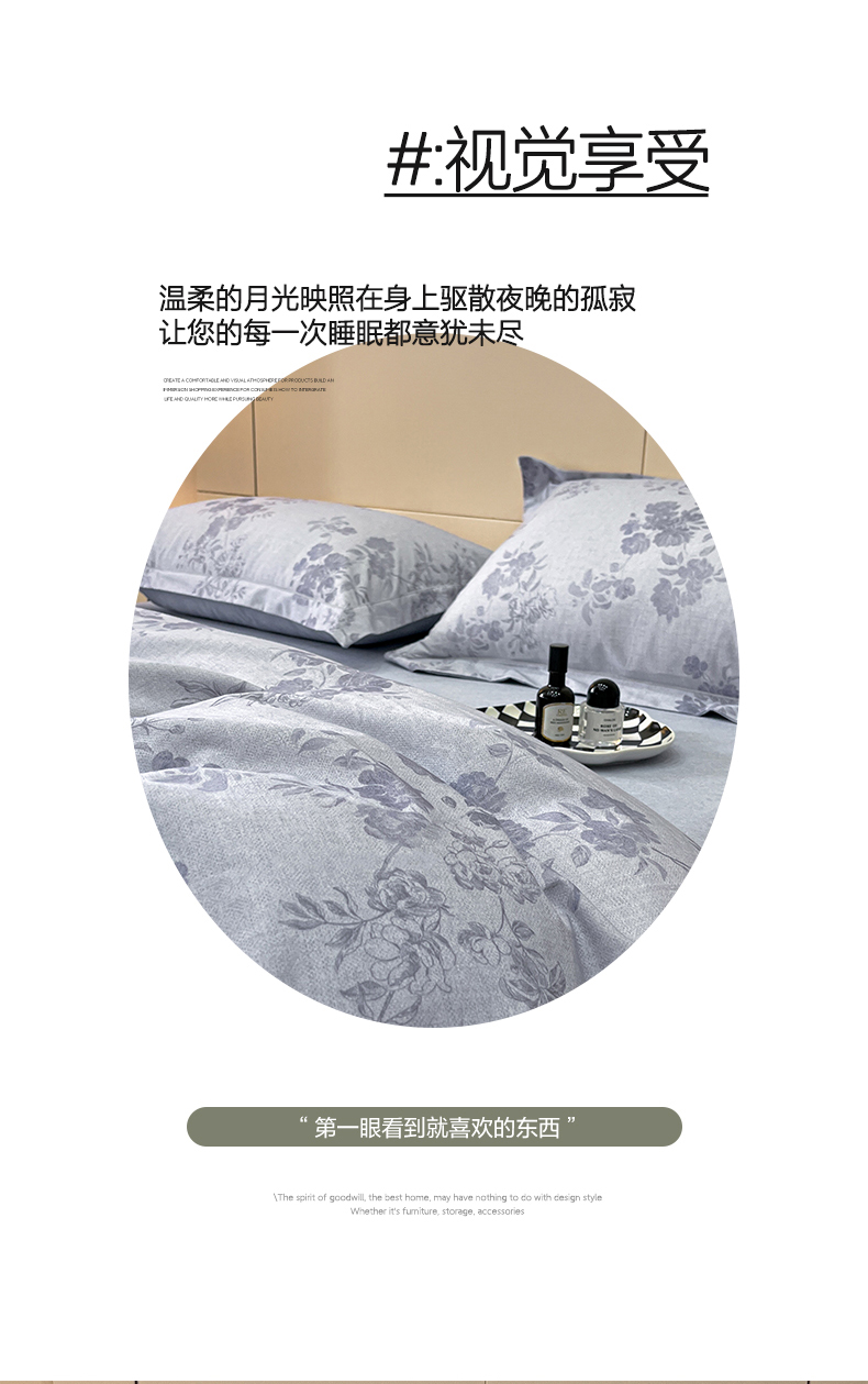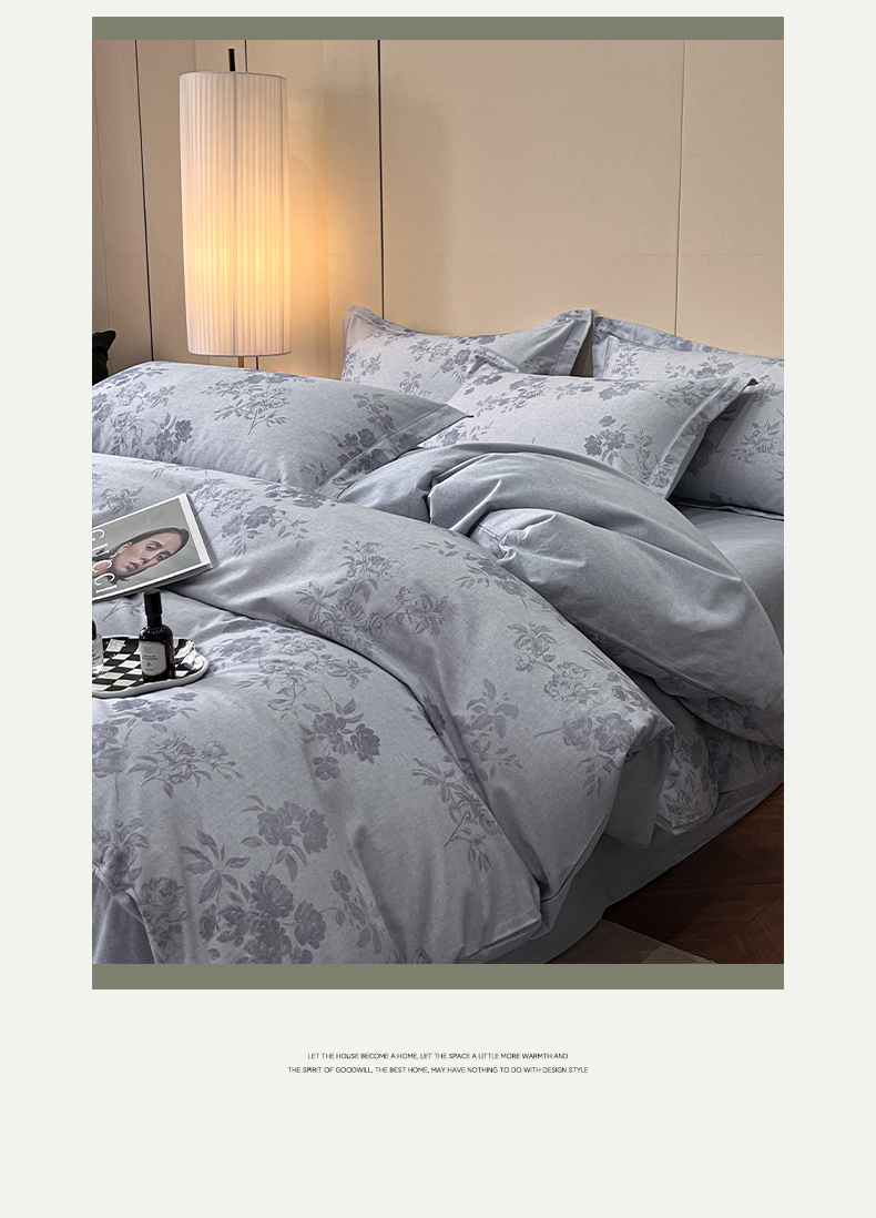 商品名称:简如 2025新款100%全棉纯棉磨毛四件套(有买家秀) 花庭悦舞-灰
