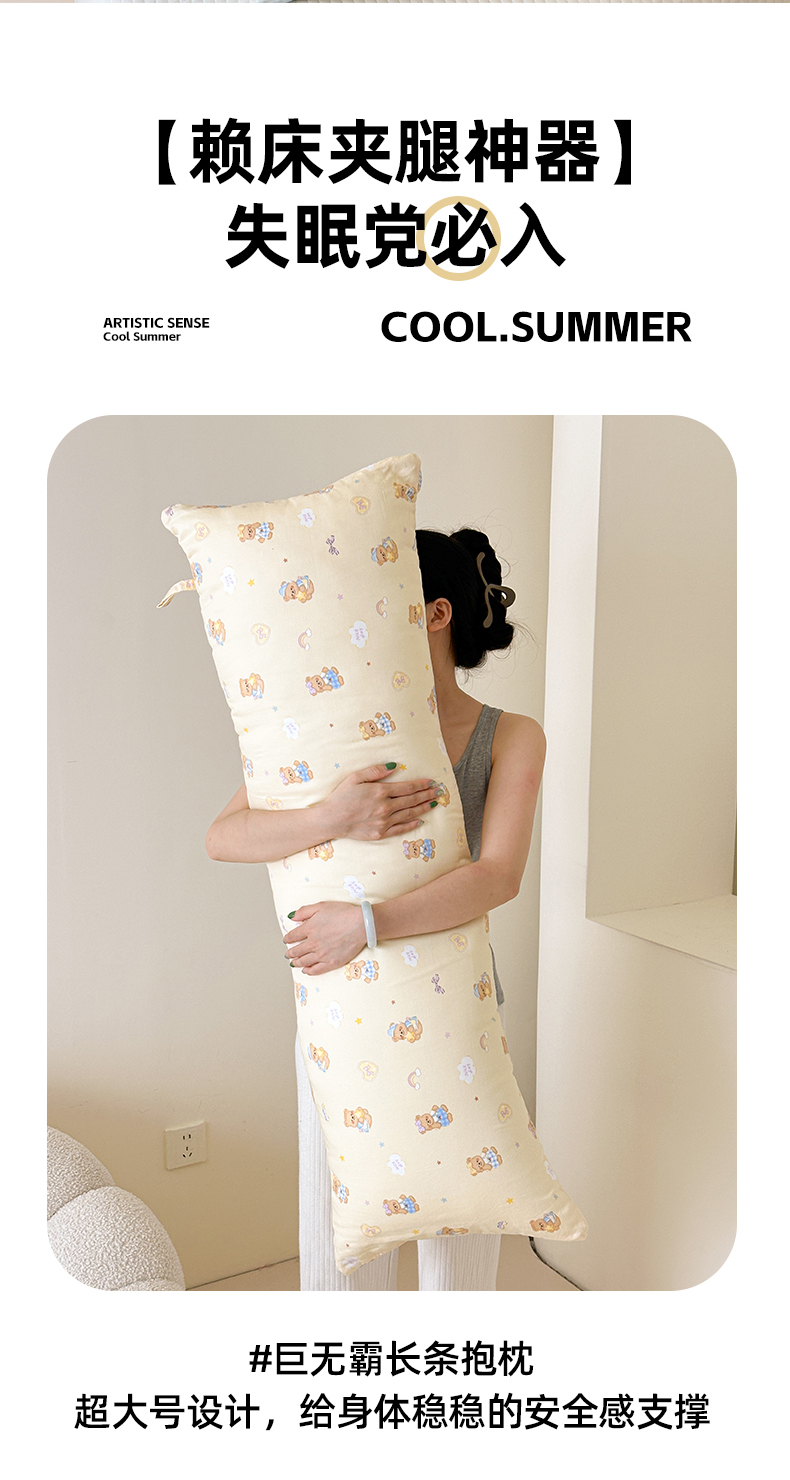 北鸣有鱼枕芯馆 2025新款漫画家系列A类全棉双层纱巨无霸抱枕 漫画家系列-面包熊抱枕芯+枕套
