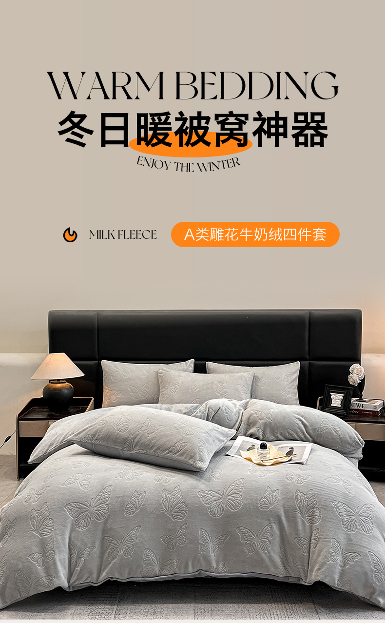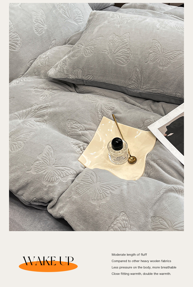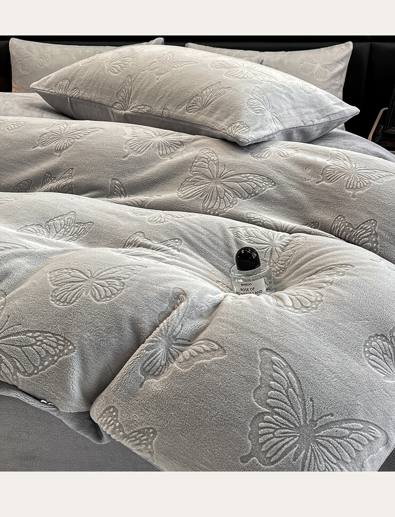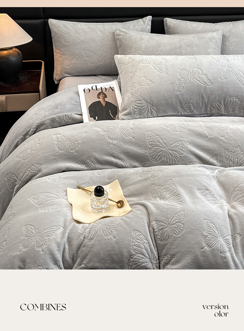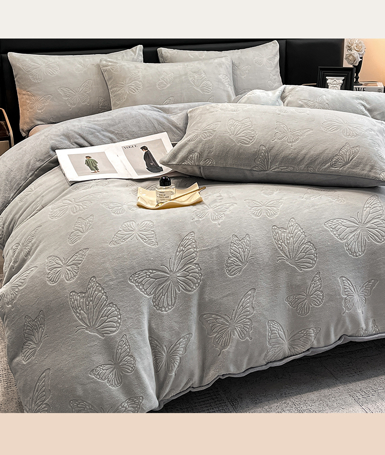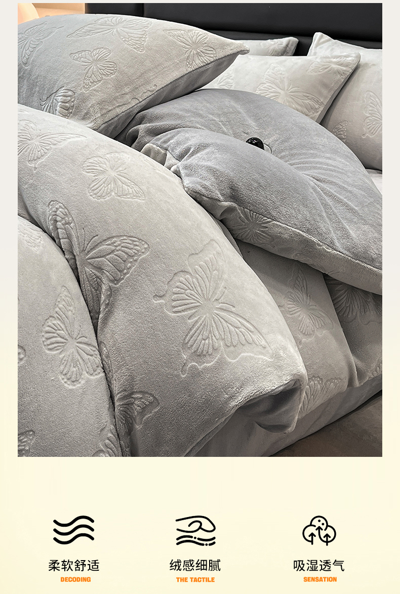 商品名称:星座家纺 2025新款牛奶绒雕花四件套 蝴蝶翩翩-灰