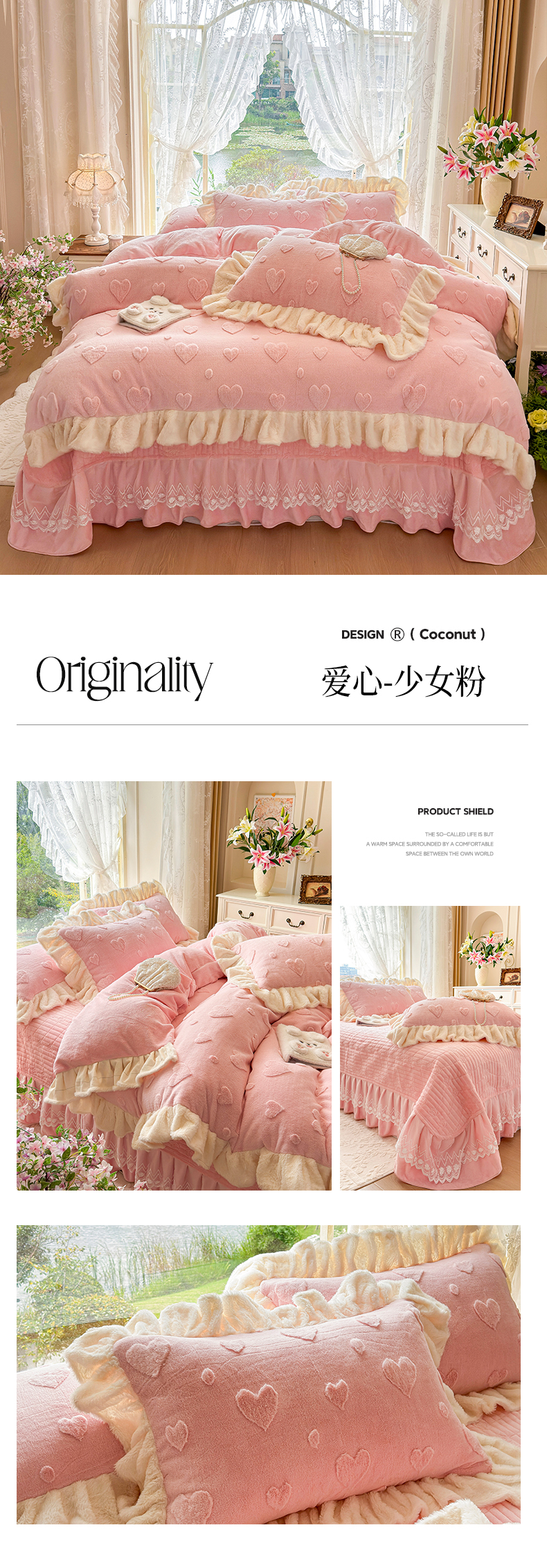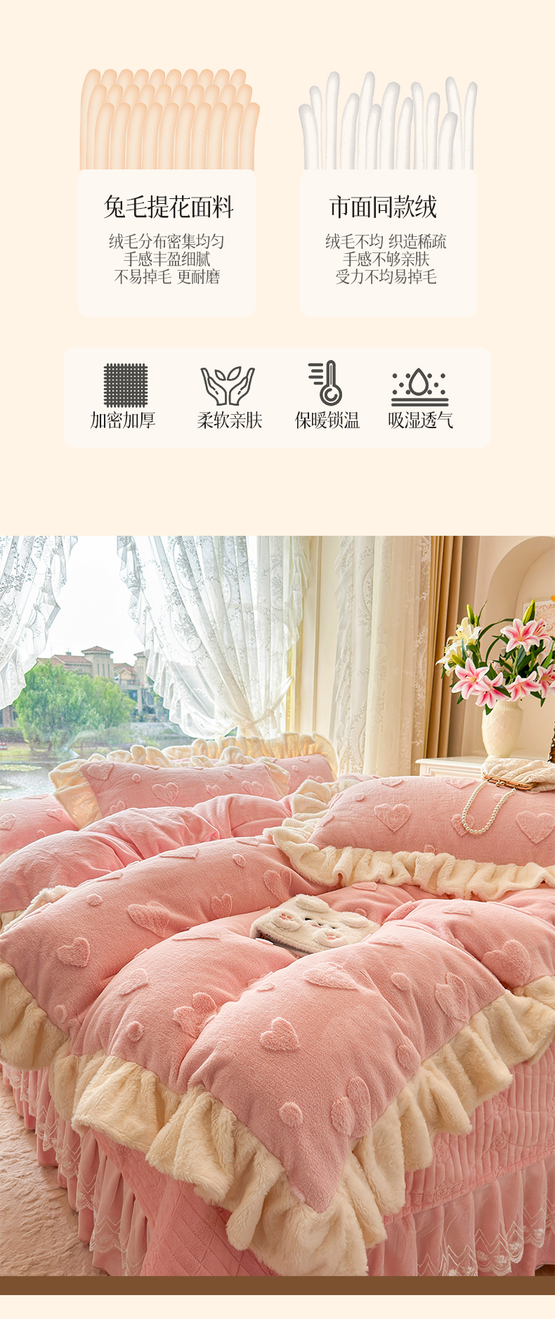 (总)宜凡家纺 2025新款兔绒提花牛奶绒夹棉床裙四件套,爱心 少女粉,爱心 粉紫,爱心 驼色,蝶舞 大红,蝶舞 米色,蝶舞 浅紫,蝶舞 玉色,简爱 苍青,简爱 豆沙紫,简爱 玉色,樱桃 苍青,樱桃 豆沙紫,樱桃 奶油白