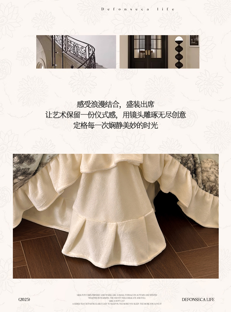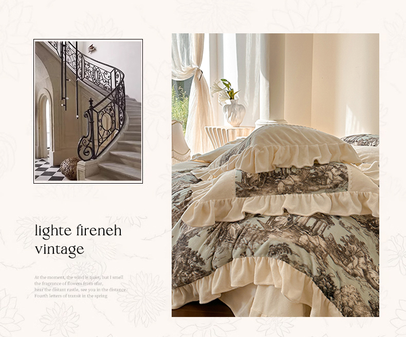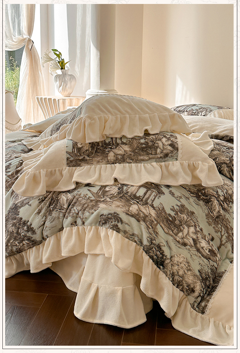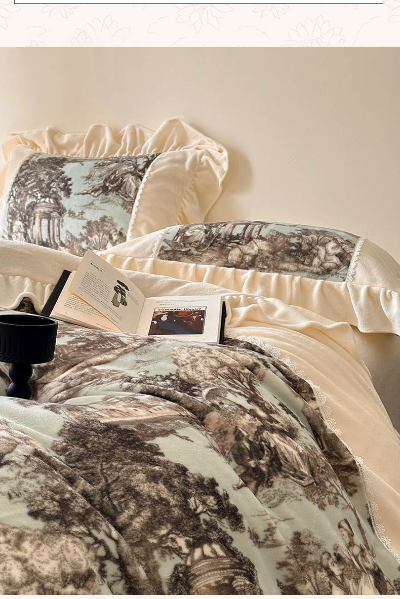 (总)一左一右 2025秋冬新款法式风复古数码印花高克重花边牛奶绒四件套-凯西亚(提供买家秀)