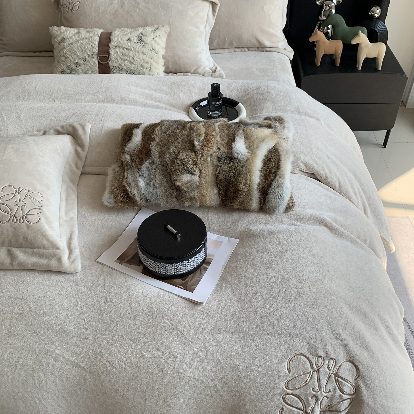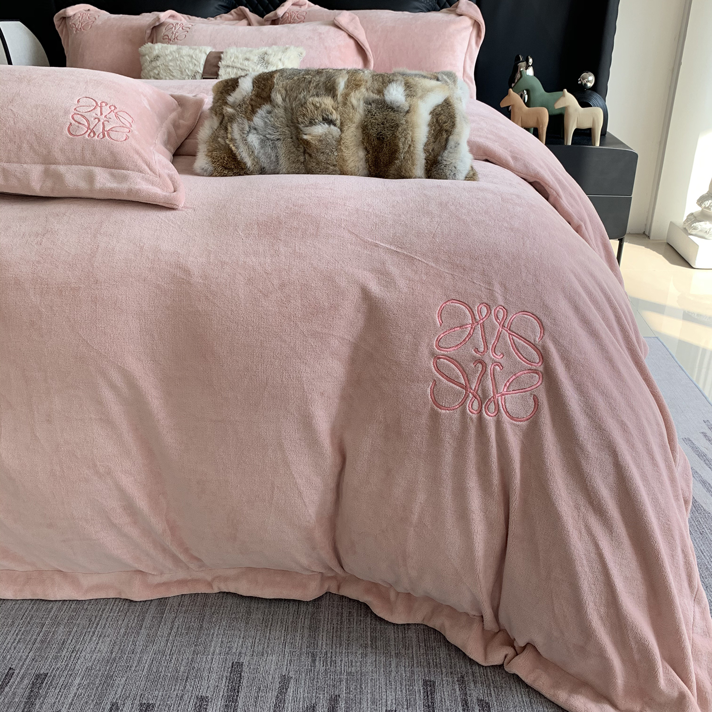 莱豫家纺 2025秋冬新品加厚牛奶绒刺绣款四件套宽边工艺全消光牛奶绒 罗意威梦幻紫