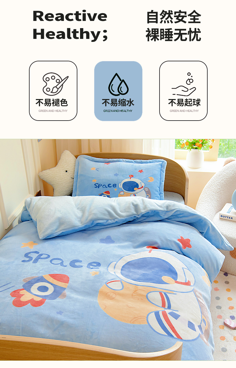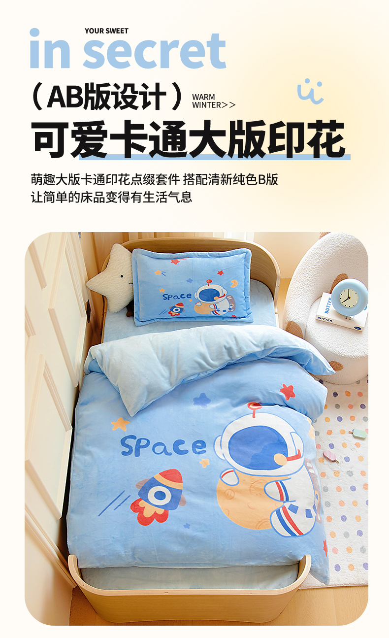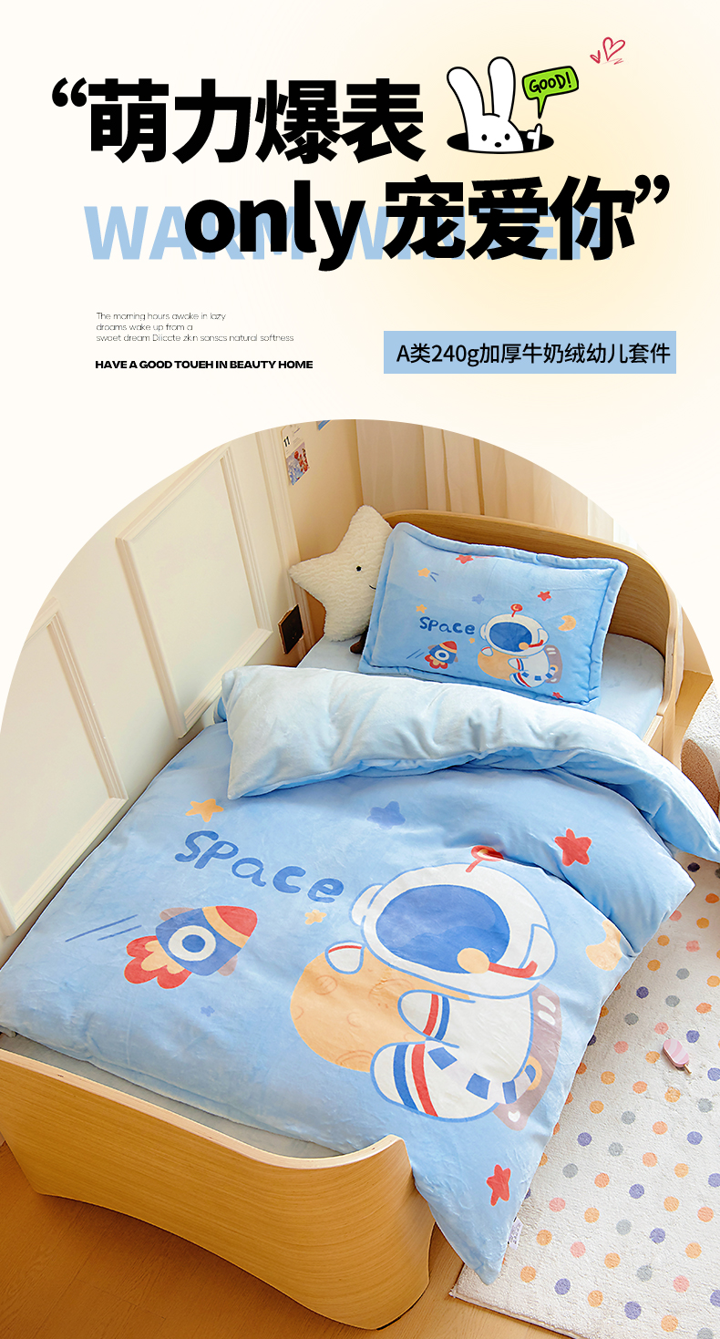 当前位置: 91家纺网 > 商品网购 > 婴童用品 > 婴童床品套件 > 梵赫 2025新款加厚240克牛奶绒数码原创大版卡通被套+被芯组合 探索宇宙