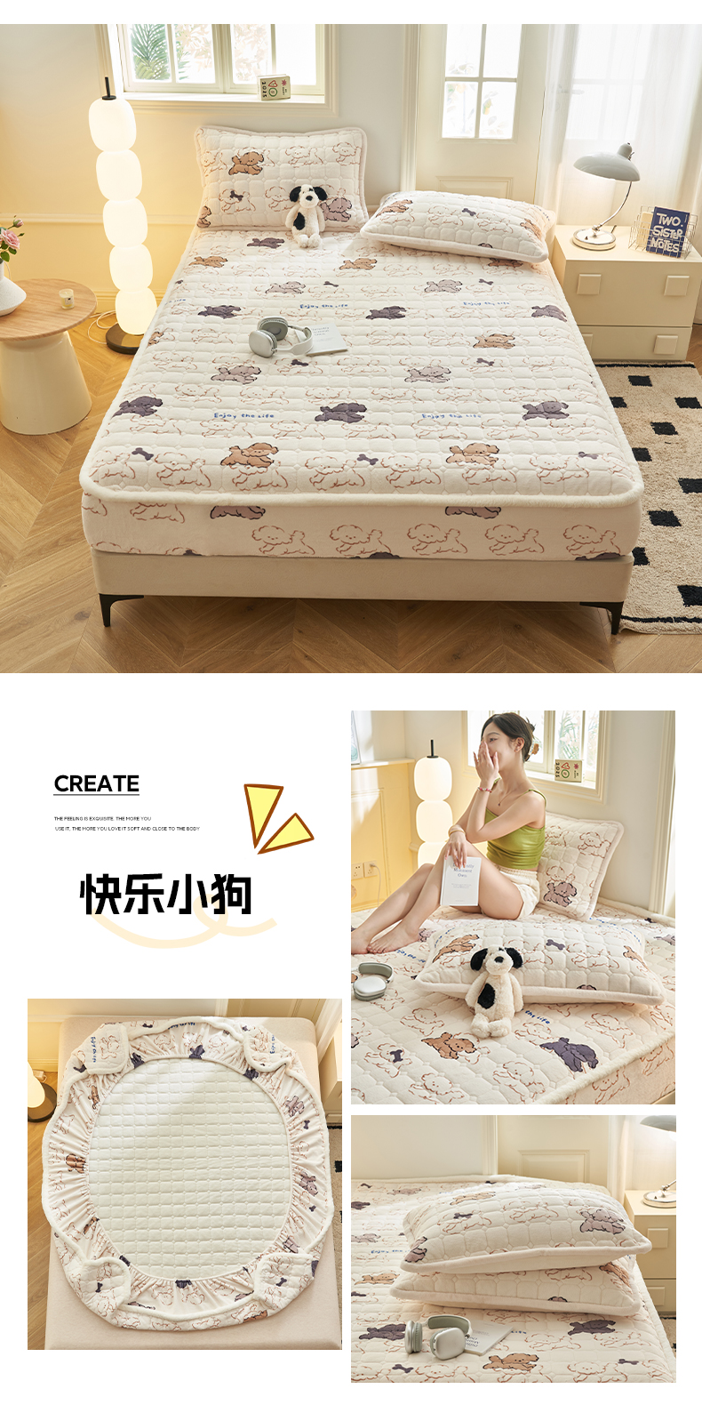 (总)晨曦家纺 2025新款加厚加绒牛奶绒卡通夹棉三层单床笠,调皮猫狗,动物乐园,可爱女孩,可爱熊猫,快乐小狗,萌萌熊仔,苹果乐园,兔女孩,兔兔花园,鲜花小兔,熊熊乐园,英伦小熊