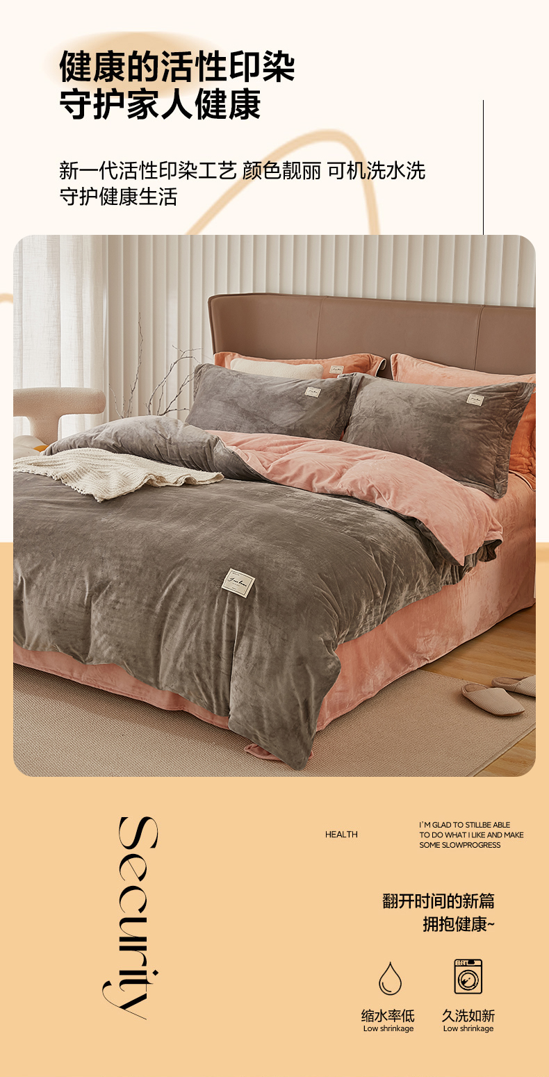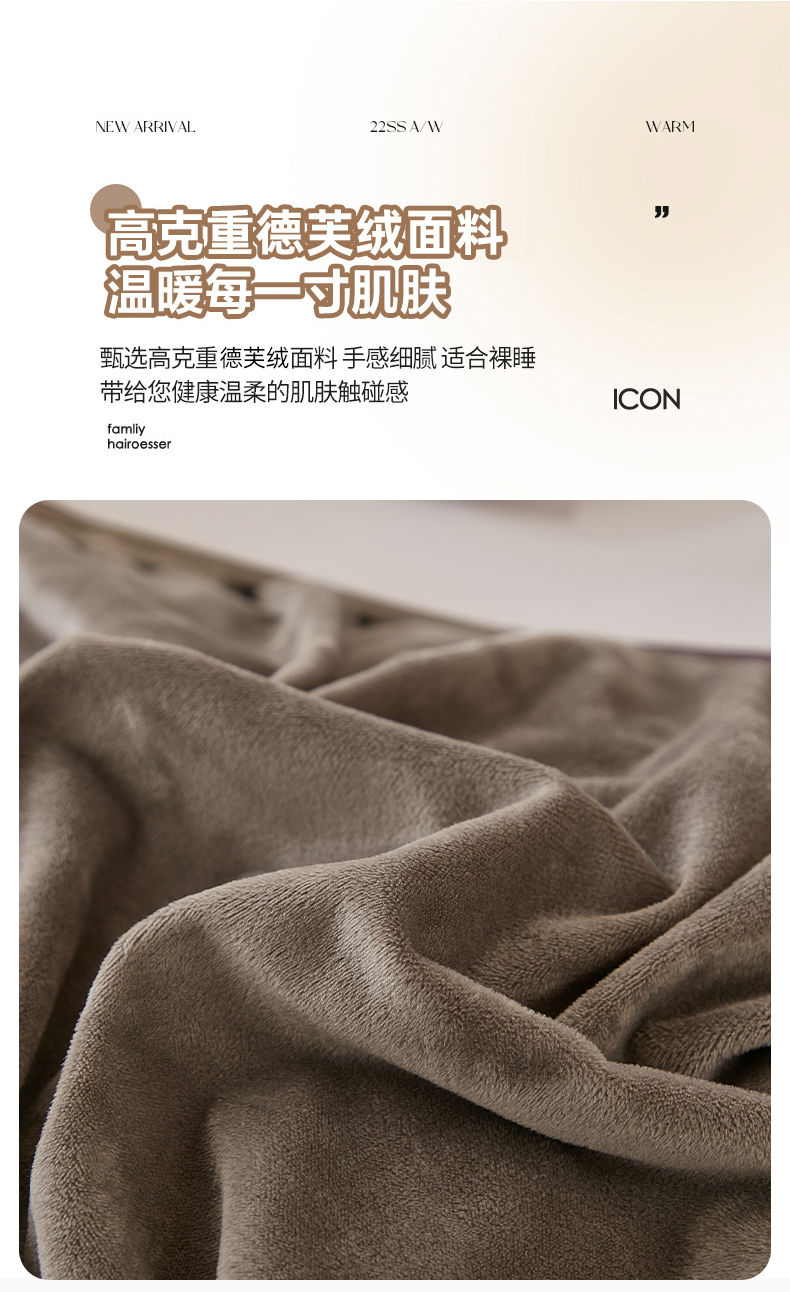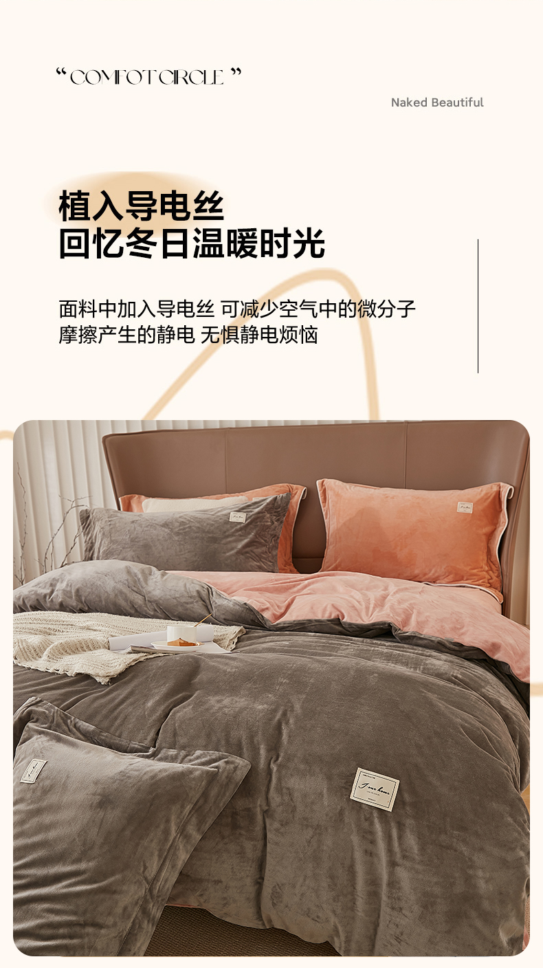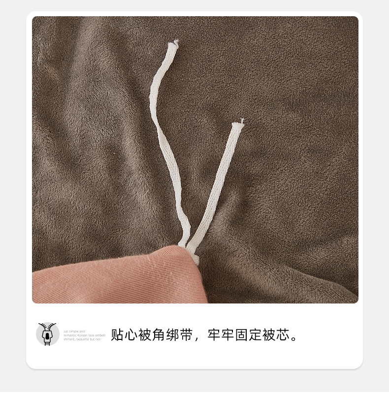 商品名称:悦然毛巾被 2025新款高克重德芙绒双拼四件套 咖灰豆沙