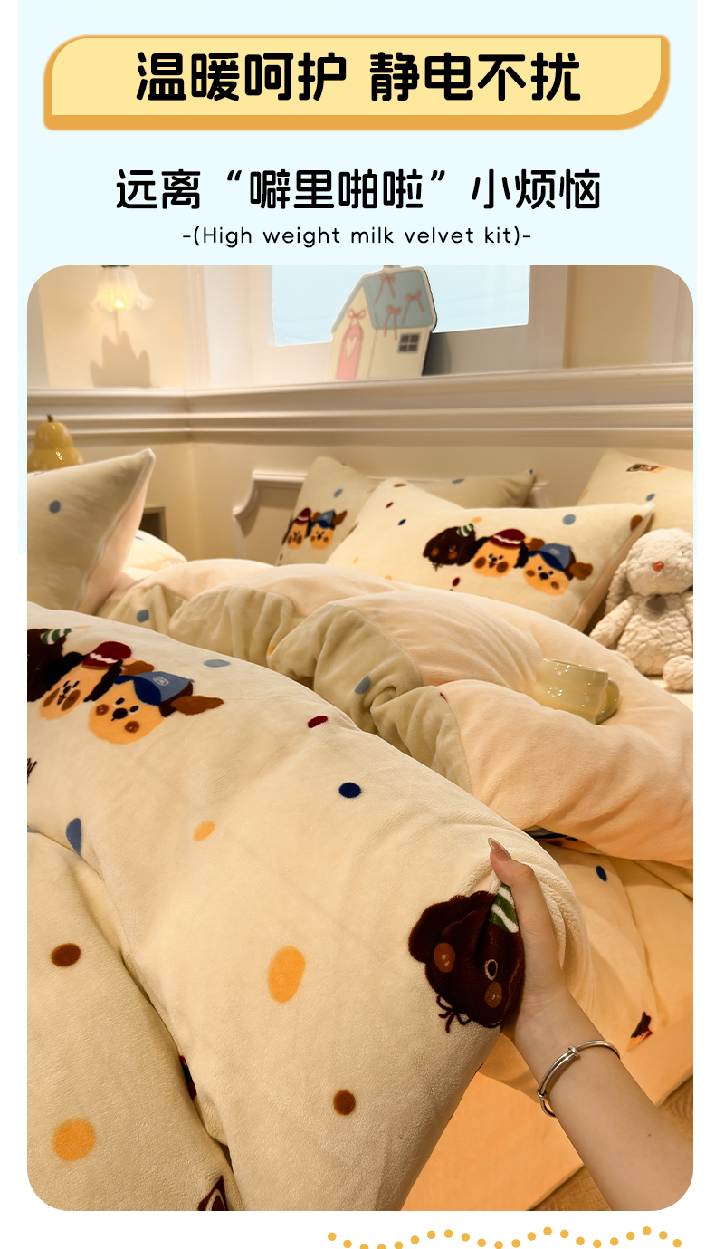 当前位置: 91家纺网 > 商品网购 > 床品套件 > 四件套 > 牛奶绒四件套 > yyds网供 2025新款牛奶绒四件套ins风加厚床品卡通印花三件套双面法兰绒秋冬保暖不静电 风格二 旺旺乐狗波点