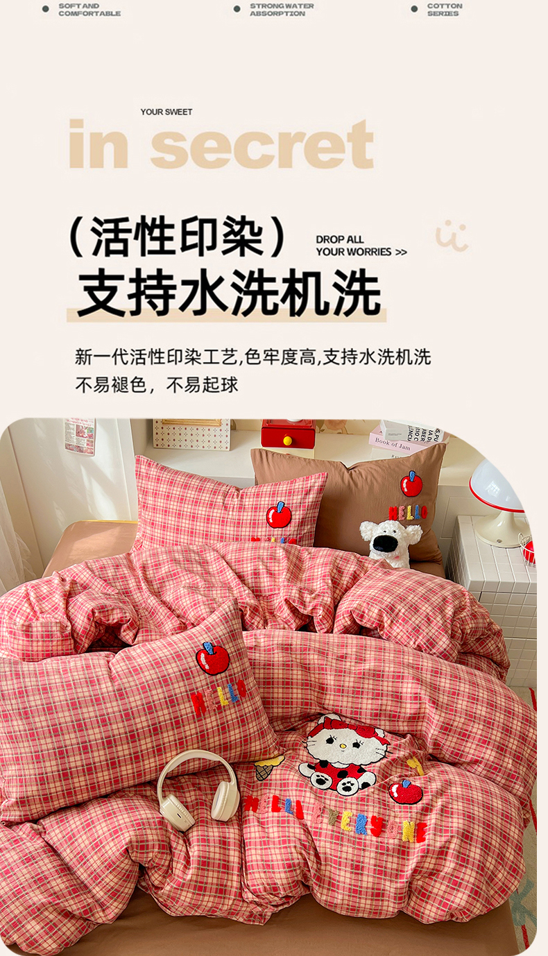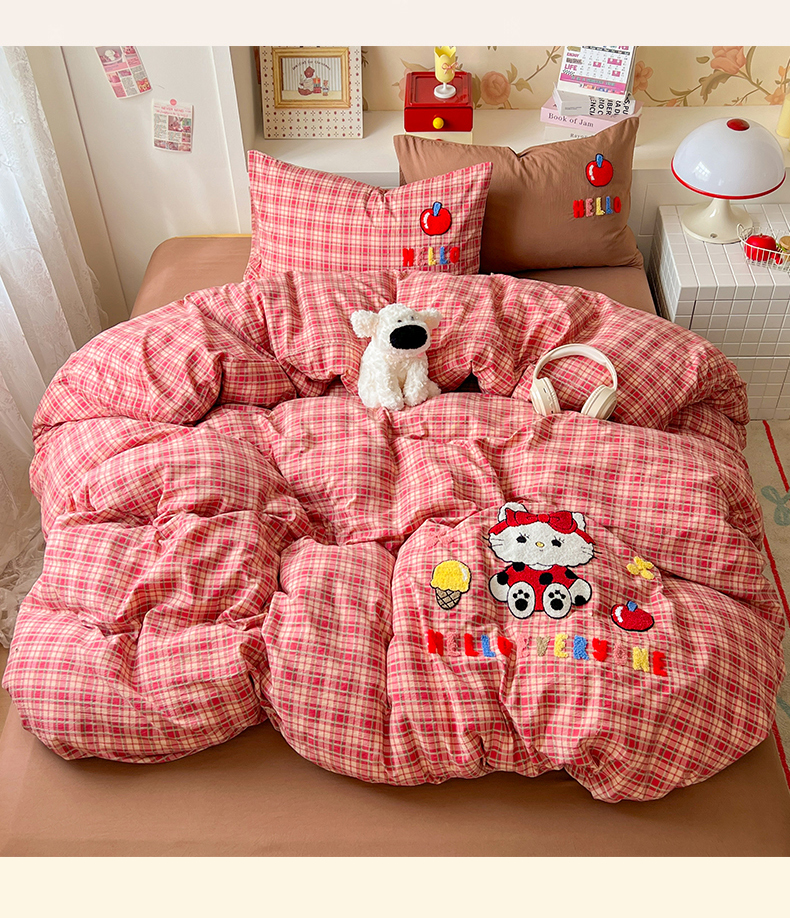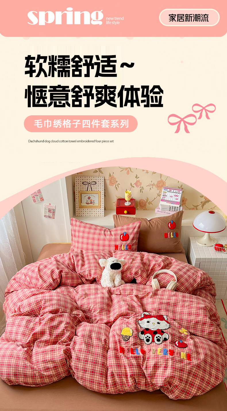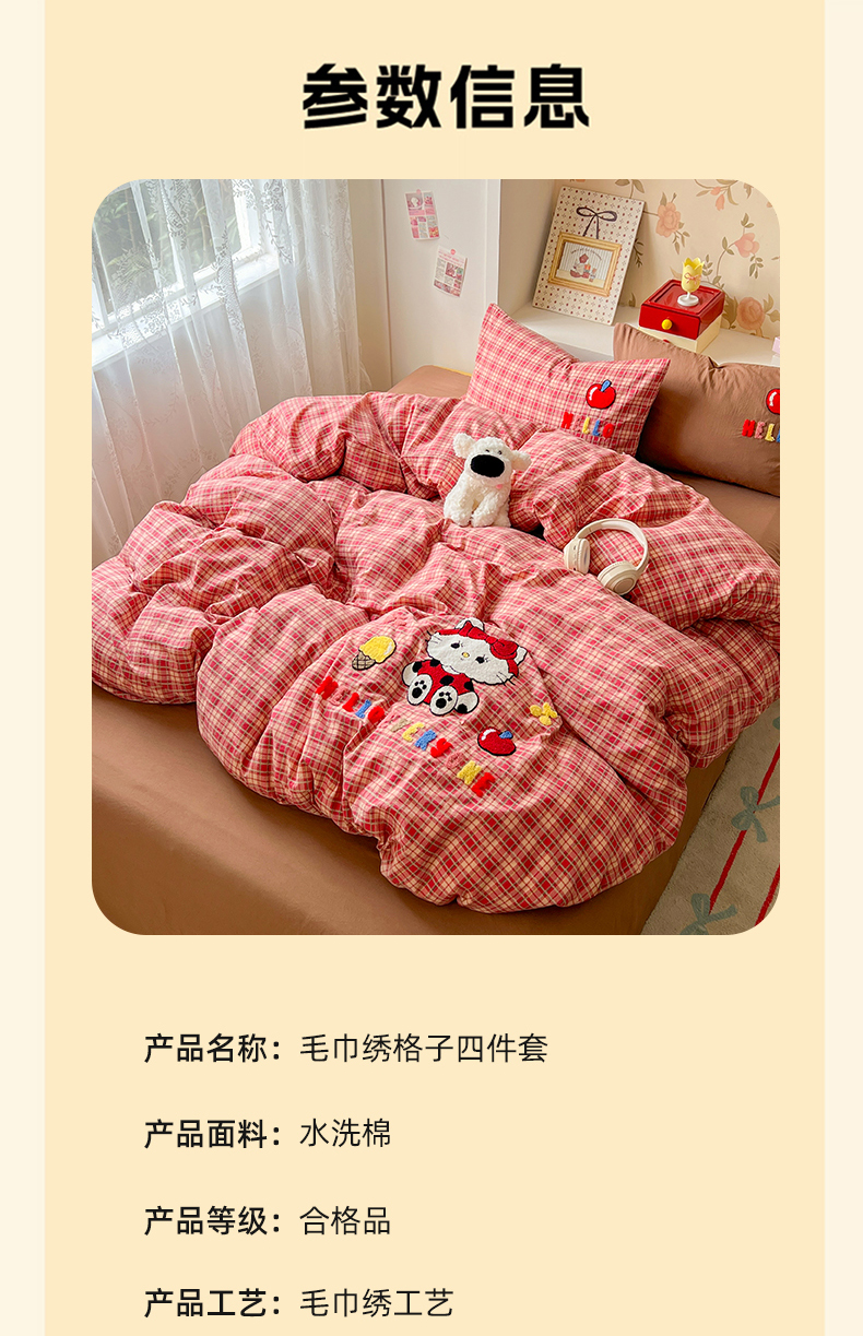 当前位置: 91家纺网 > 商品网购 > 床品套件 > 四件套 > 水洗棉四件套 > 凯洛奇 2025新款复古风格子皱皱纱水洗棉毛巾绣四件套 布丁猫-红格