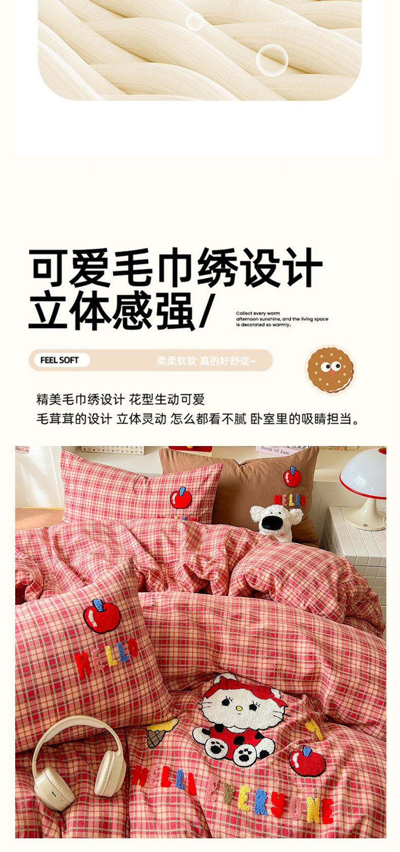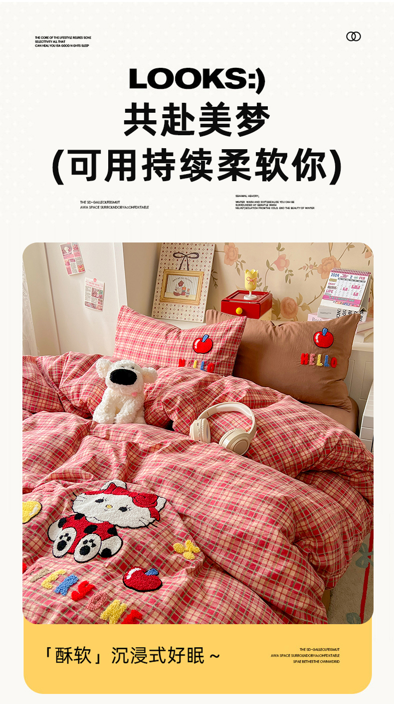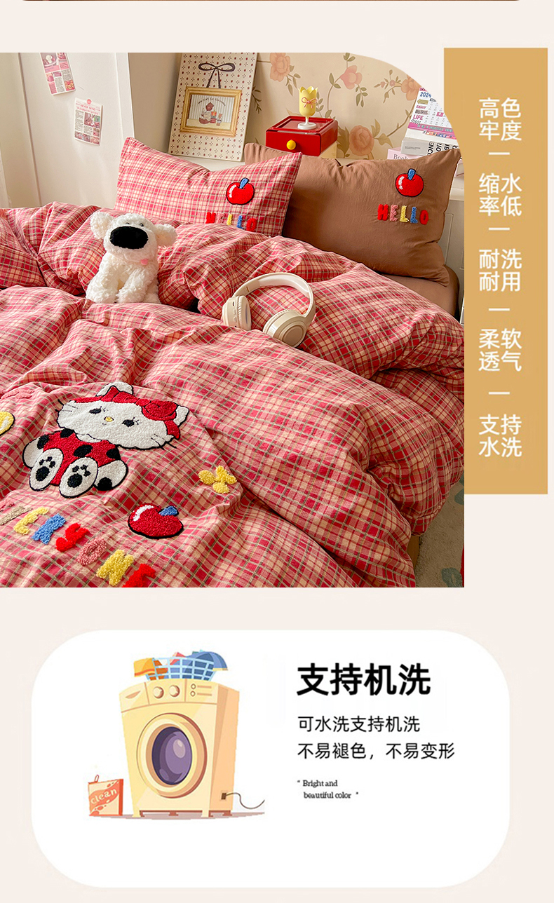 当前位置: 91家纺网 > 商品网购 > 床品套件 > 四件套 > 水洗棉四件套 > 凯洛奇 2025新款复古风格子皱皱纱水洗棉毛巾绣四件套 布丁猫-红格